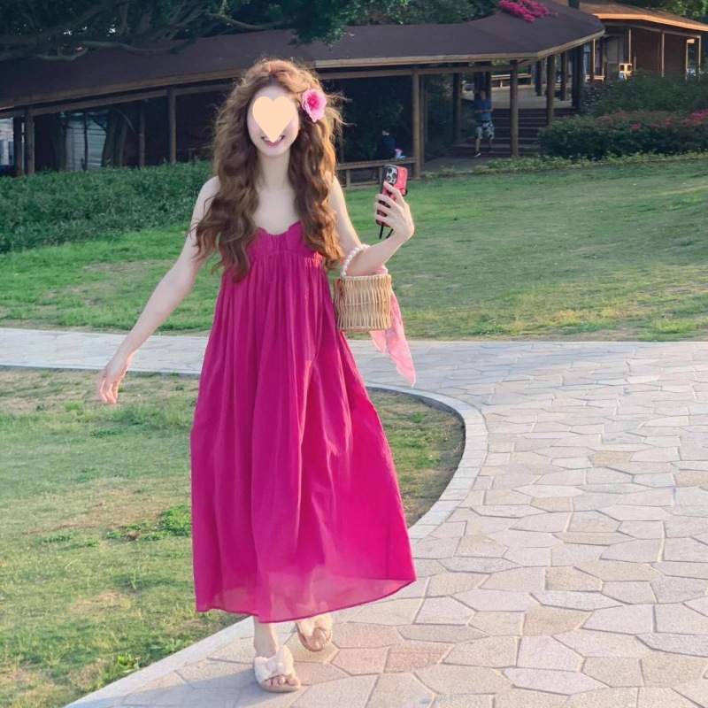 도파민 착용 여름 요정 치마 휴일 스타일 프랑스 달콤한 해변 분위기 슬링 원피스 스타일스토어 가기