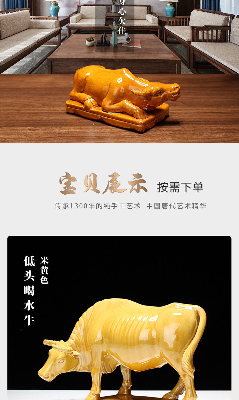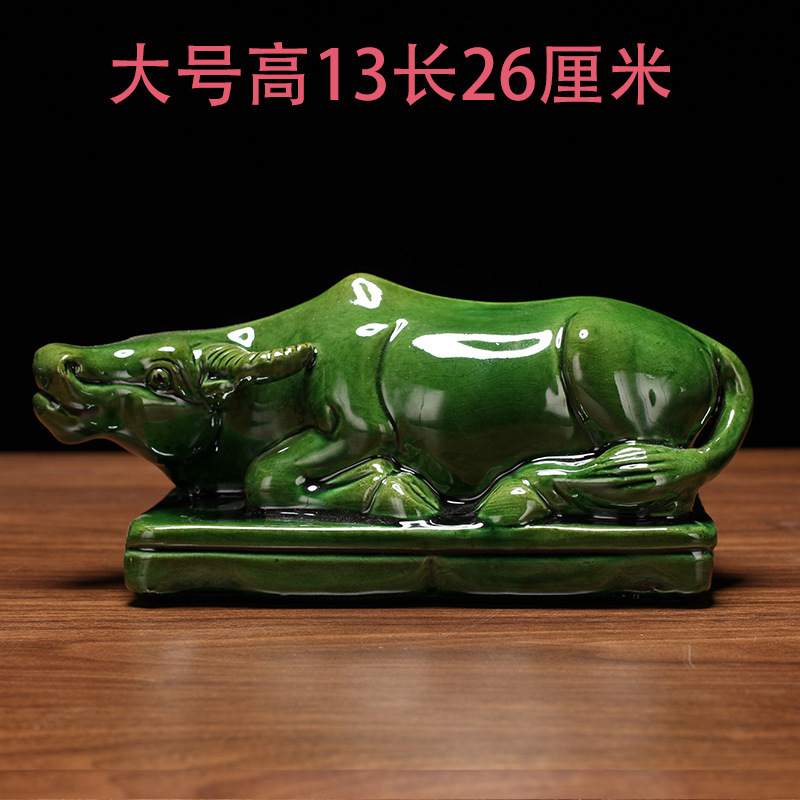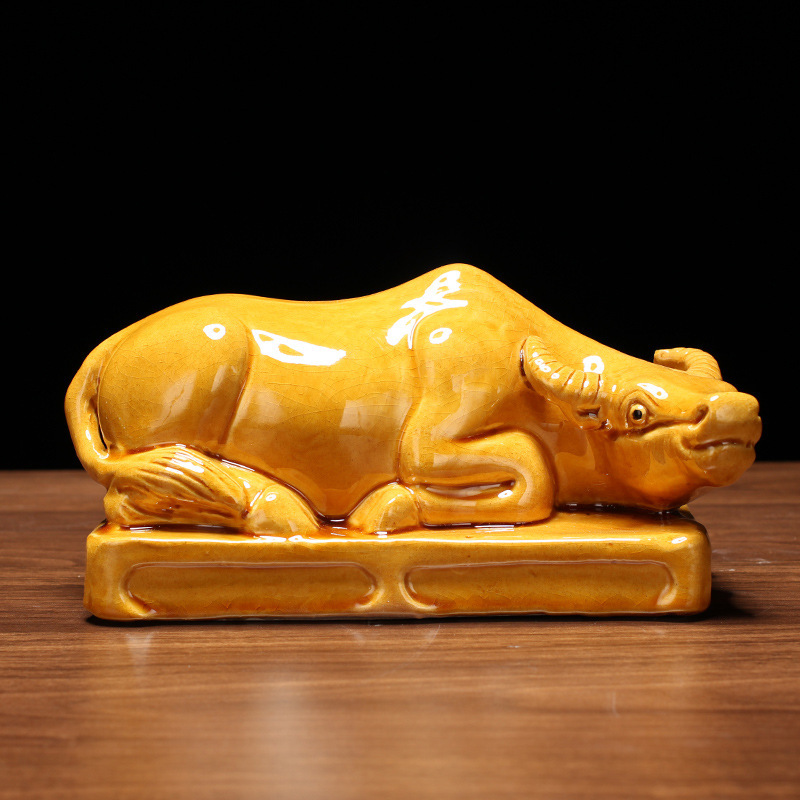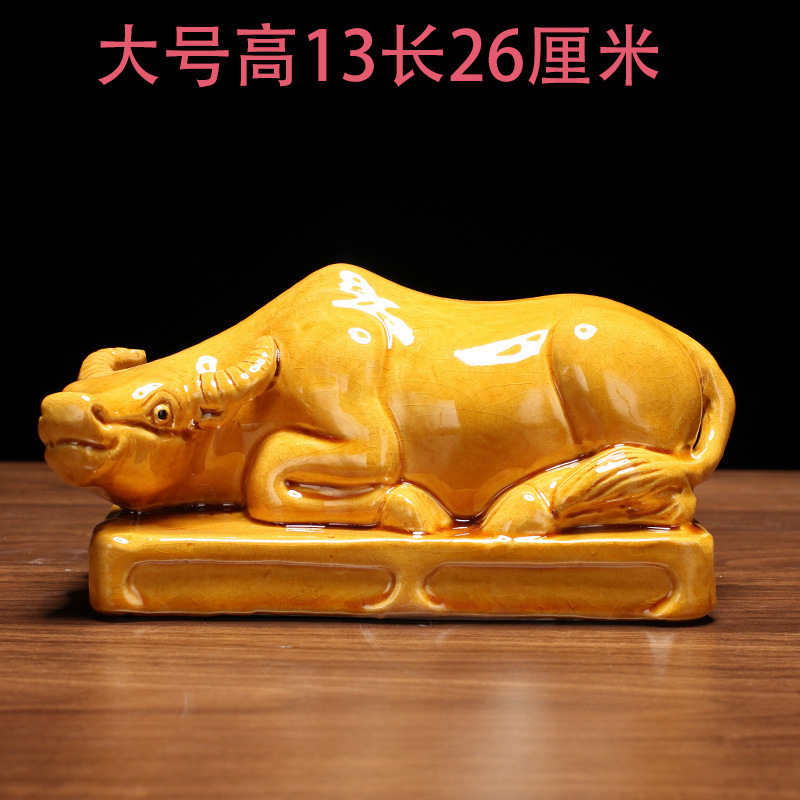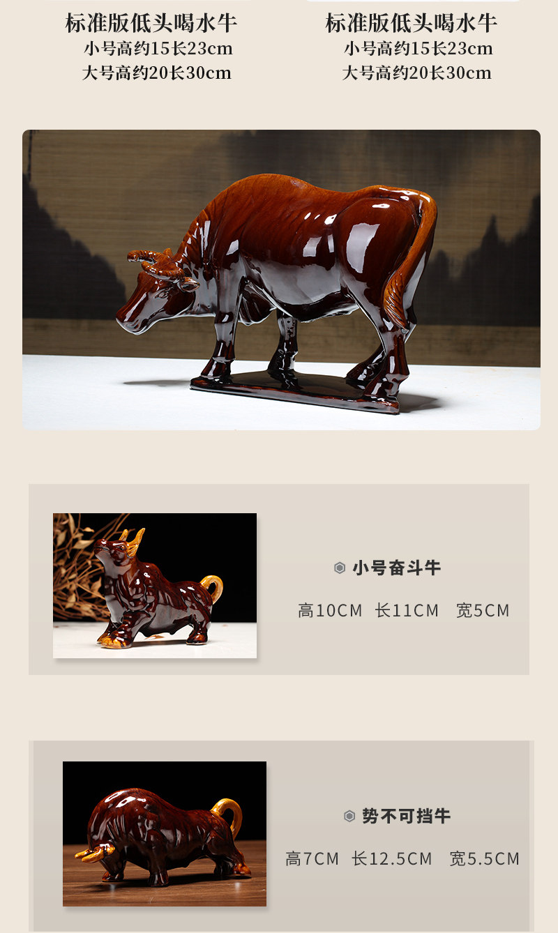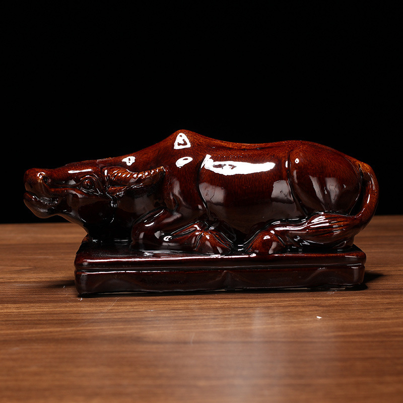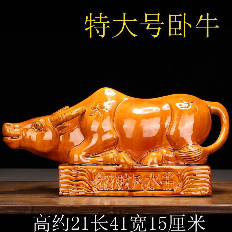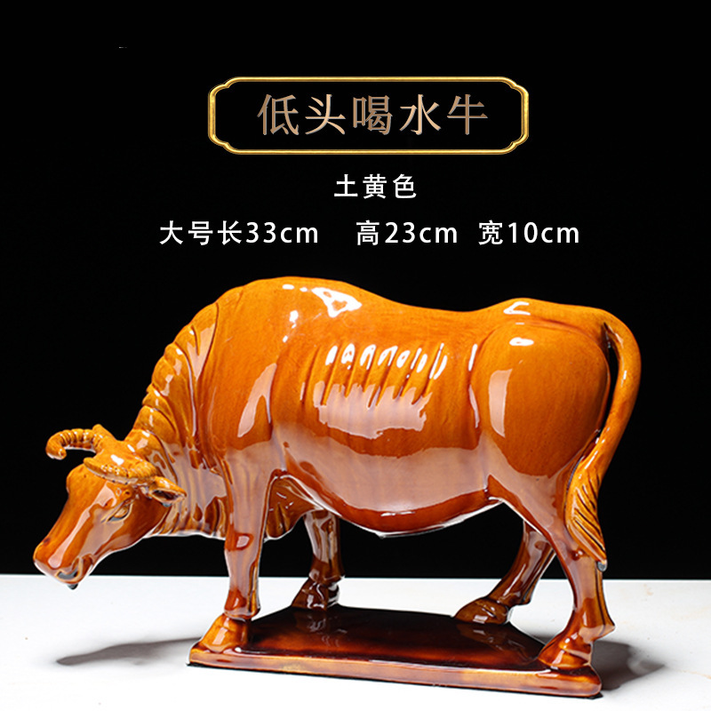 세라믹 풍수 누워있는 소가 머리를 숙여 물을 마시고 소 화장실 주방 화재 천문 장식품 조디악 홈 중국 스타일 수제스토어 가기