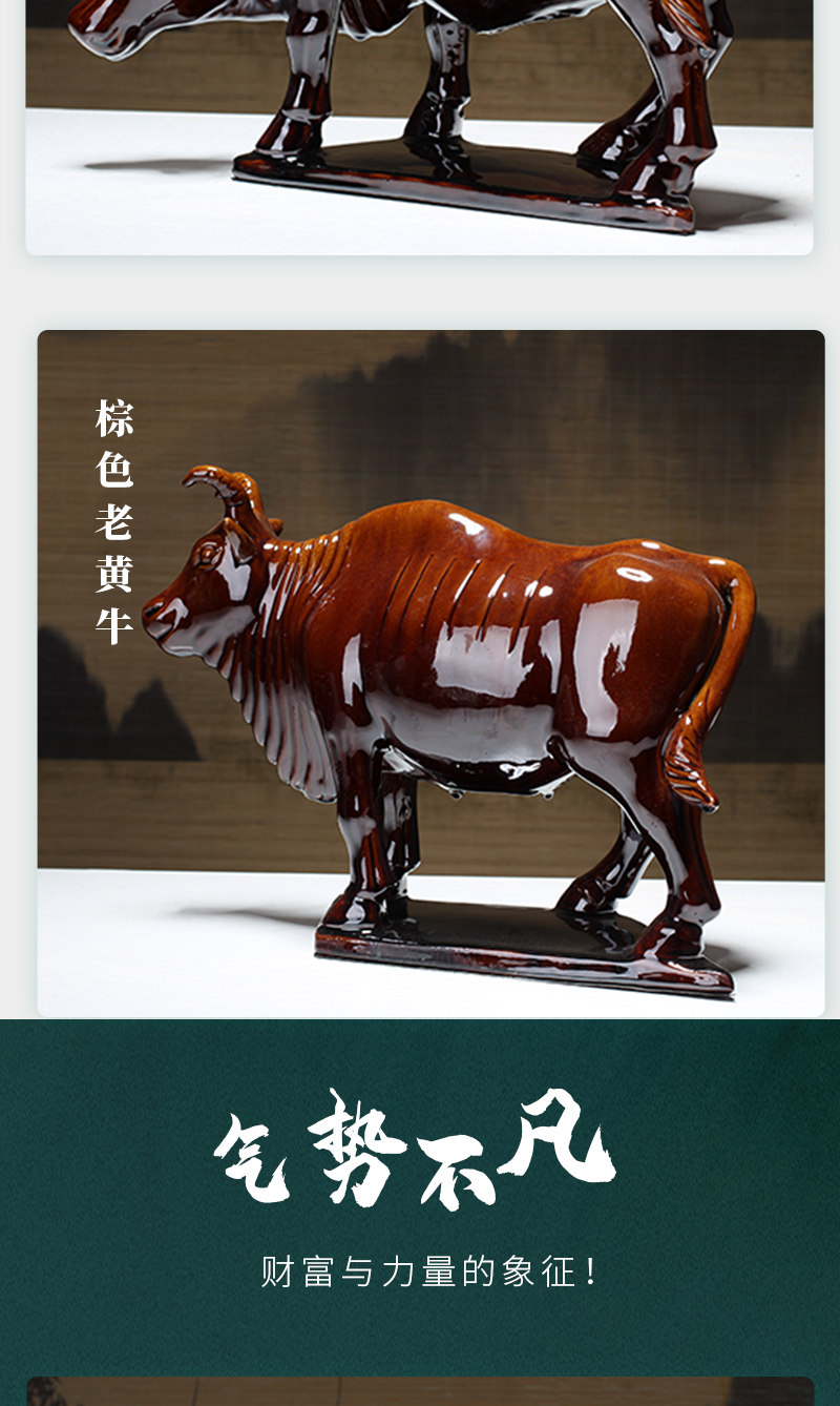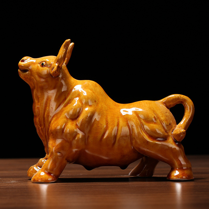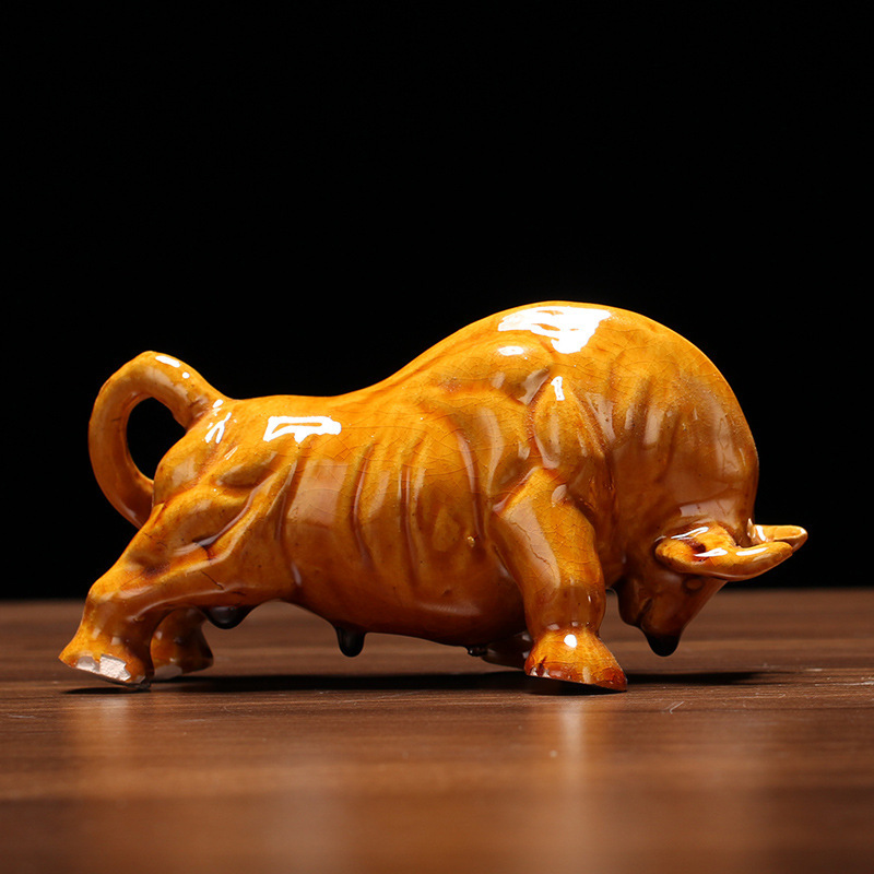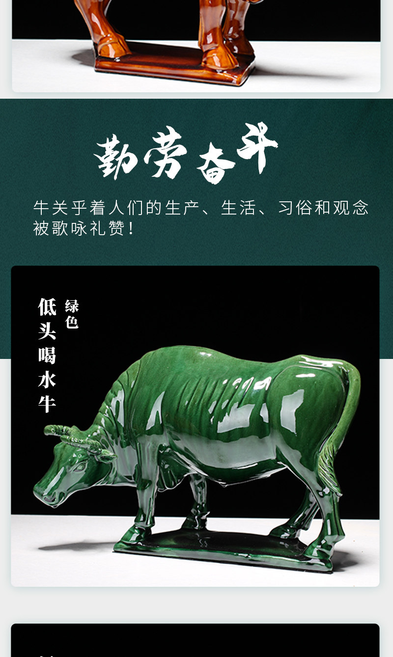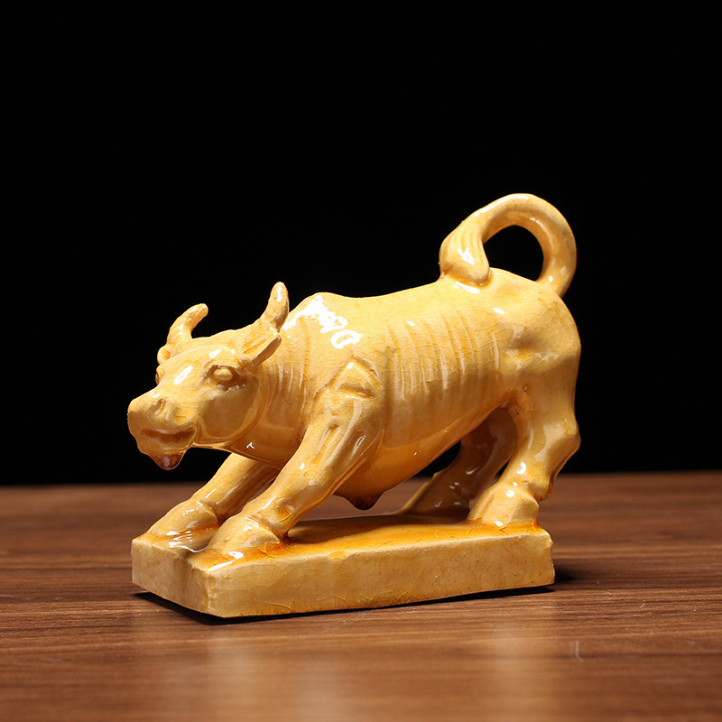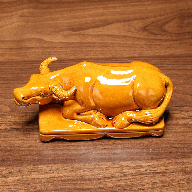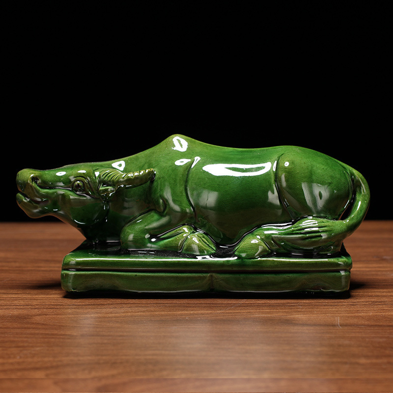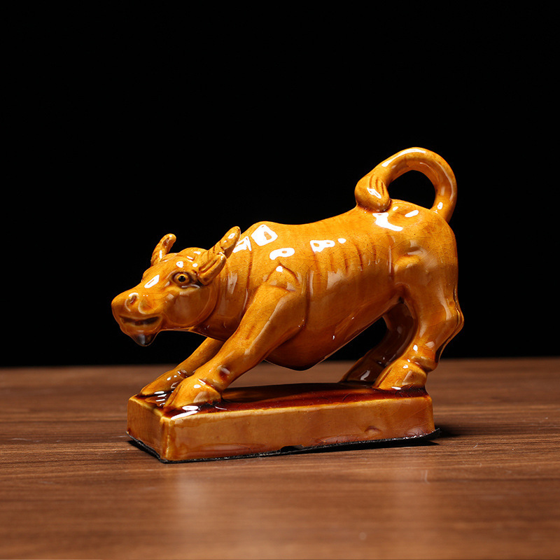 세라믹 풍수 누워있는 소가 머리를 숙여 물을 마시고 소 화장실 주방 화재 천문 장식품 조디악 홈 중국 스타일 수제스토어 가기