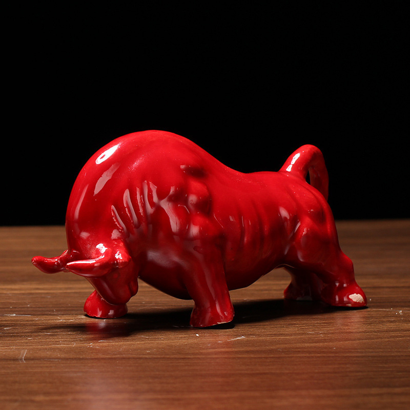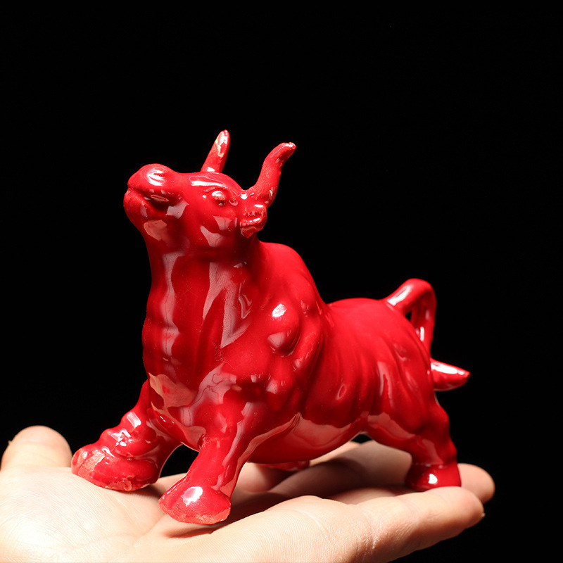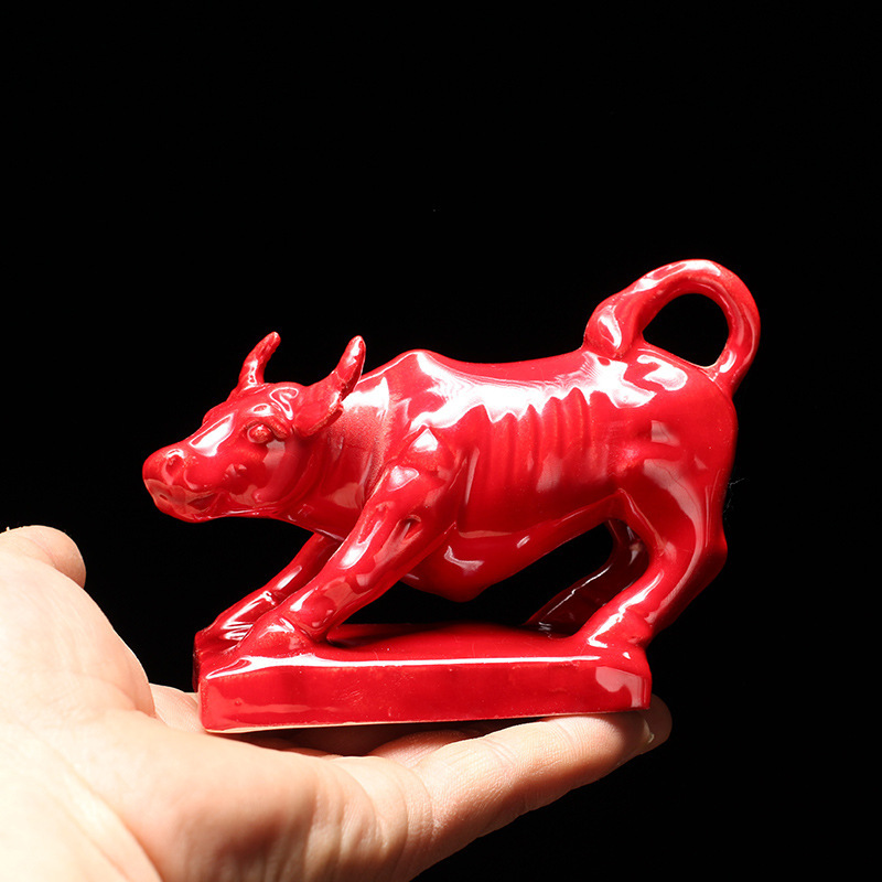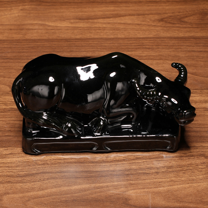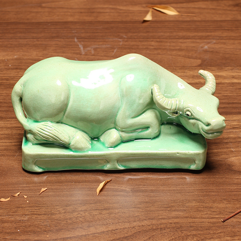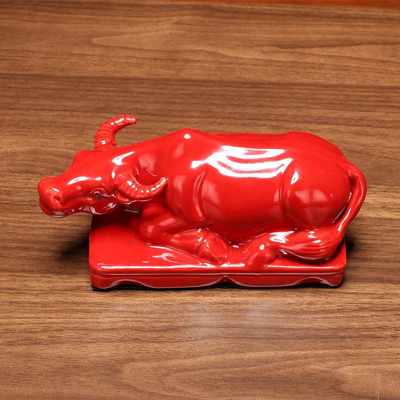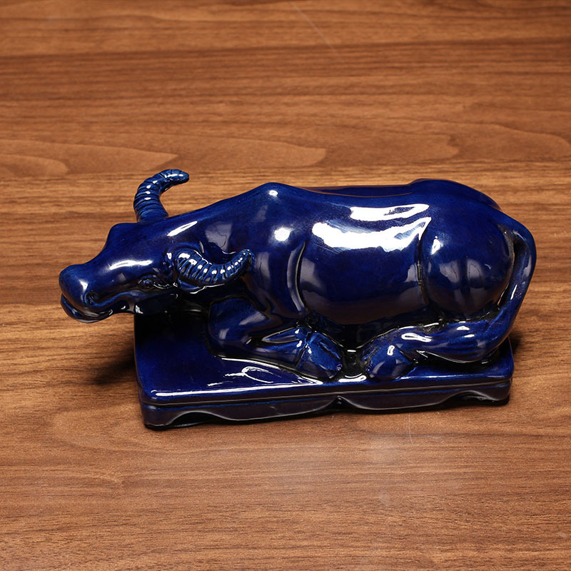 세라믹 풍수 누워있는 소가 머리를 숙여 물을 마시고 소 화장실 주방 화재 천문 장식품 조디악 홈 중국 스타일 수제