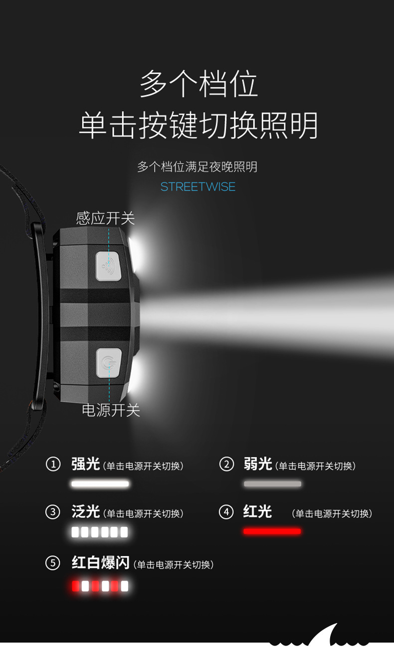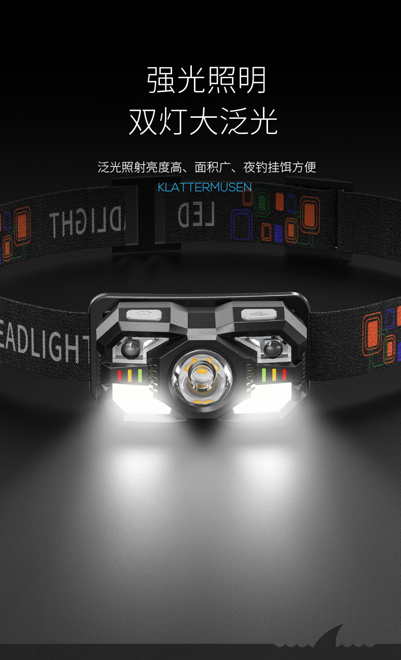 야외 유도 야간 낚시 헤드 라이트 빨간색과 흰색 이중 조명 미니 헤드 라이트 휴대용 미니 투광 조명 ABS 헤드 라이트