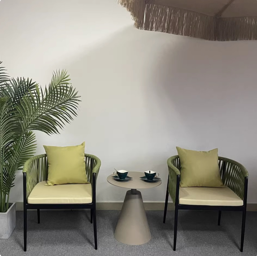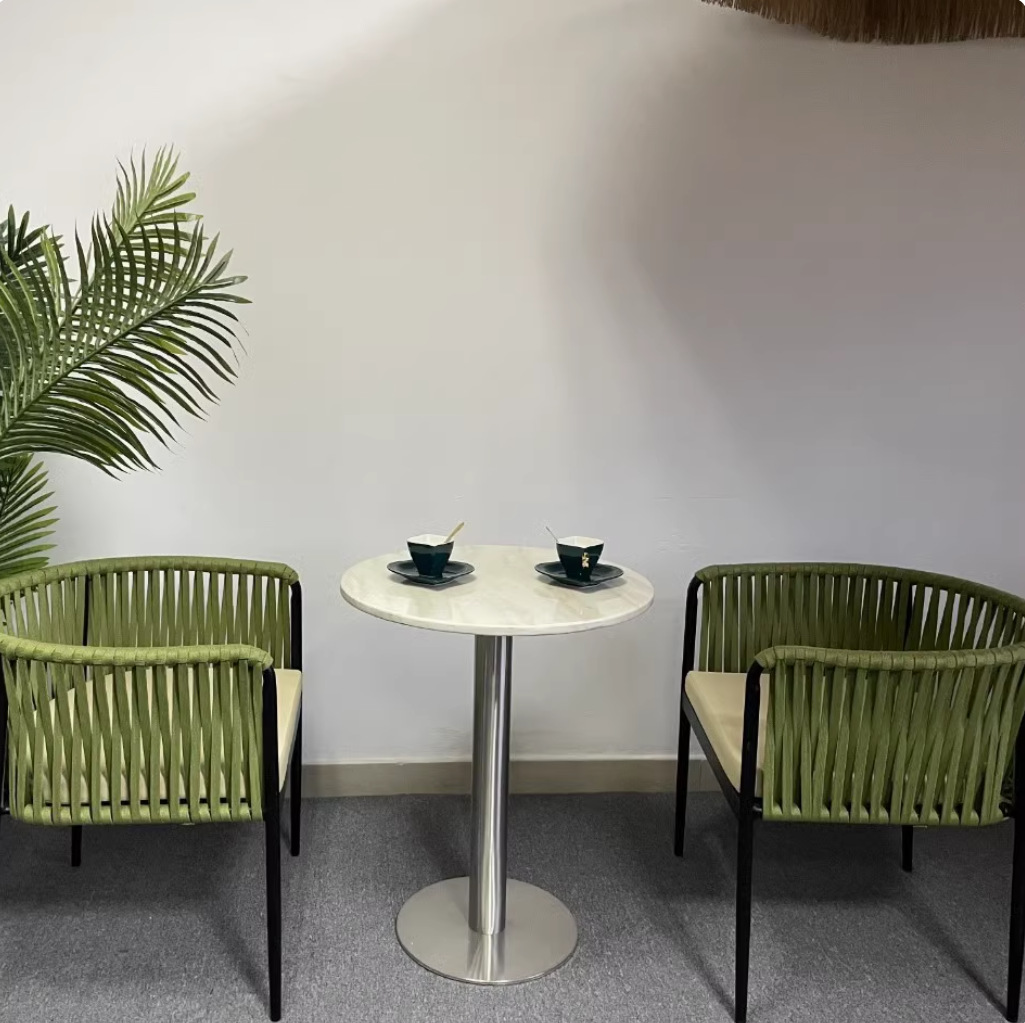 야외 안뜰 등나무 의자 커피 테이블 발코니 간단한 레저 야외 바 테이블 및 의자 카페 야외 등나무 식사 테이블 및 의자스토어 가기