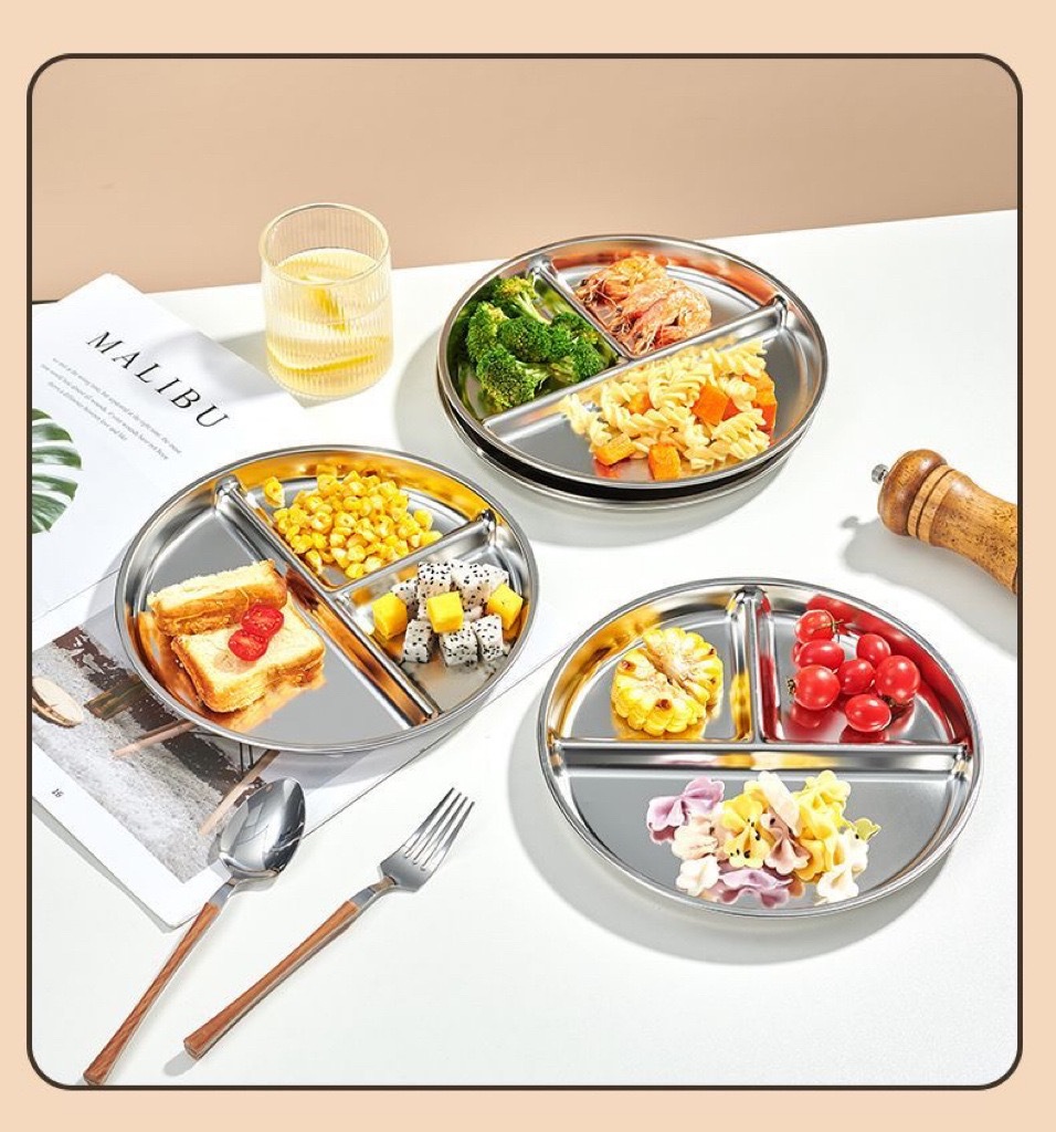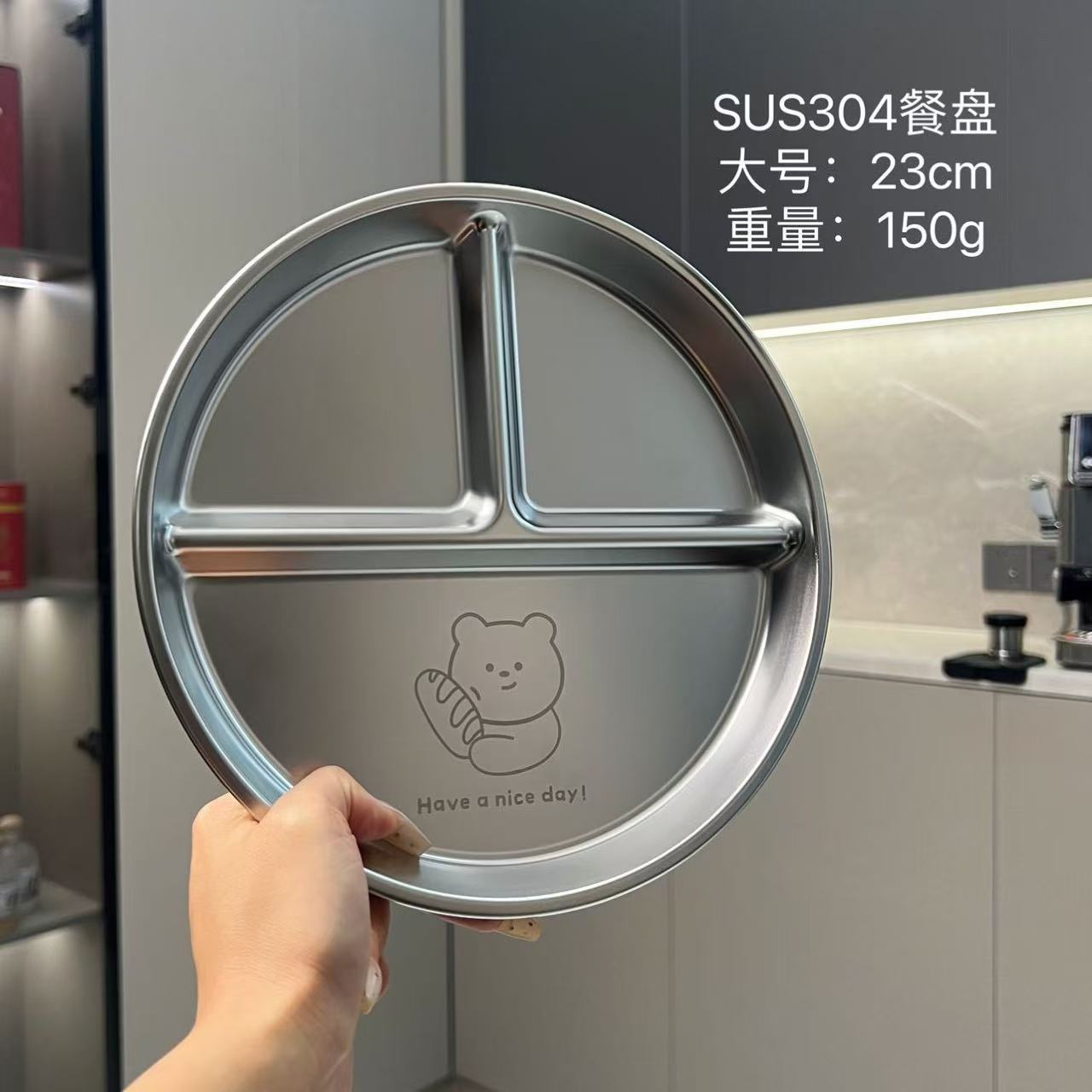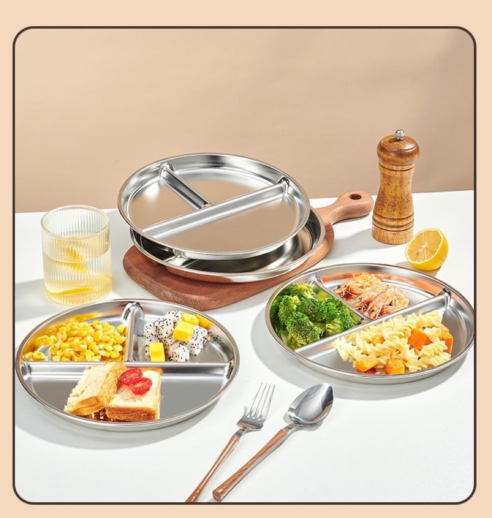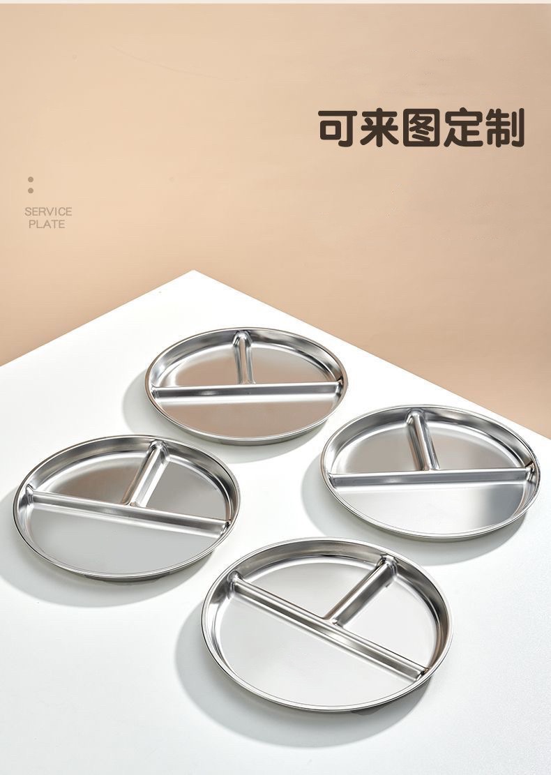 304 스테인레스 스틸 디너 플레이트 아기 어린이 디너 플레이트는 학생들을위한 뚱뚱한 감소 디너 플레이트 두껍게 식판