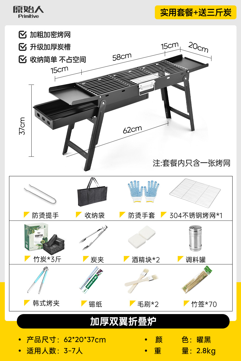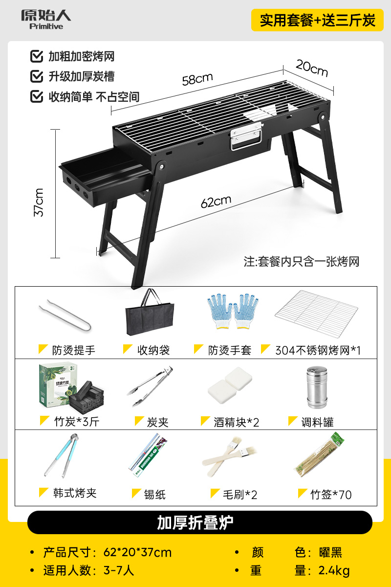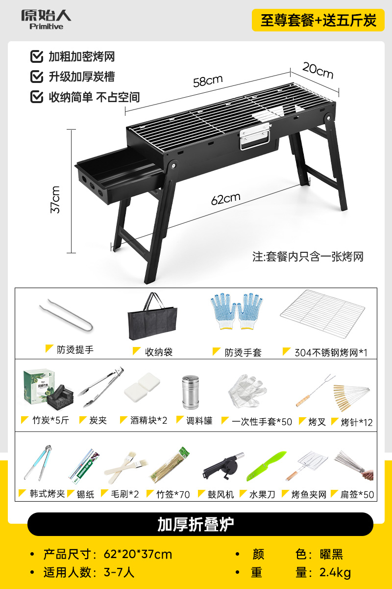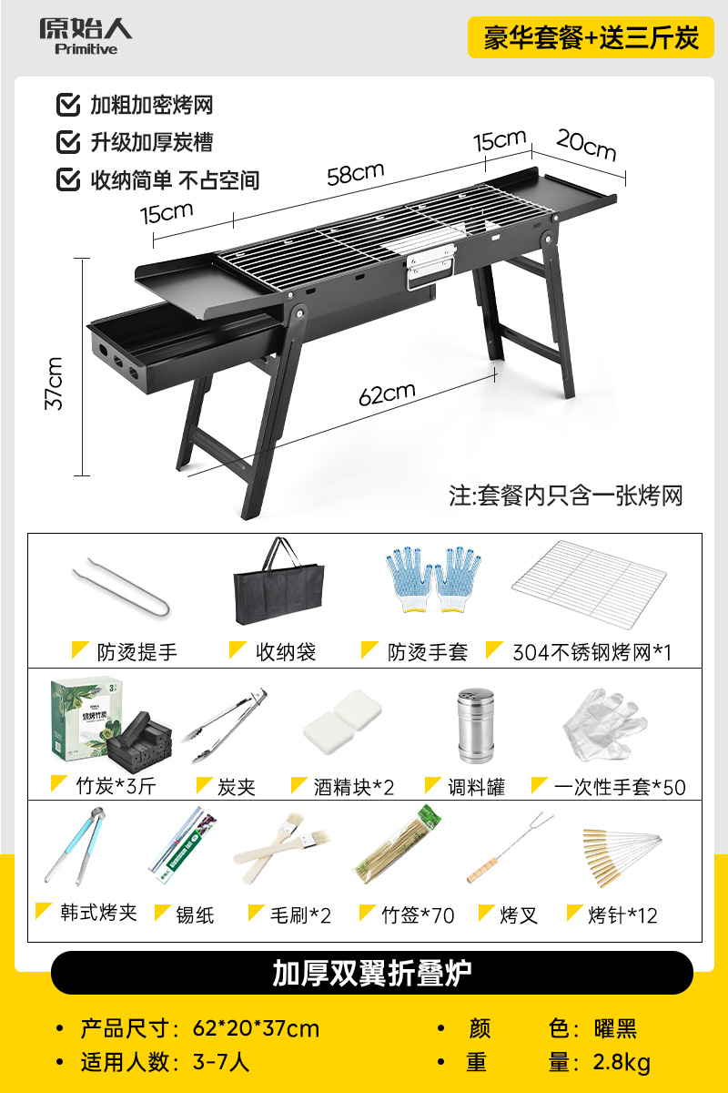 • 오븐 - 손잡이 포함 [업그레이드된 식품 등급 304 그릴 그리드] 무료 13종 세트 + 숯 1.5kg개