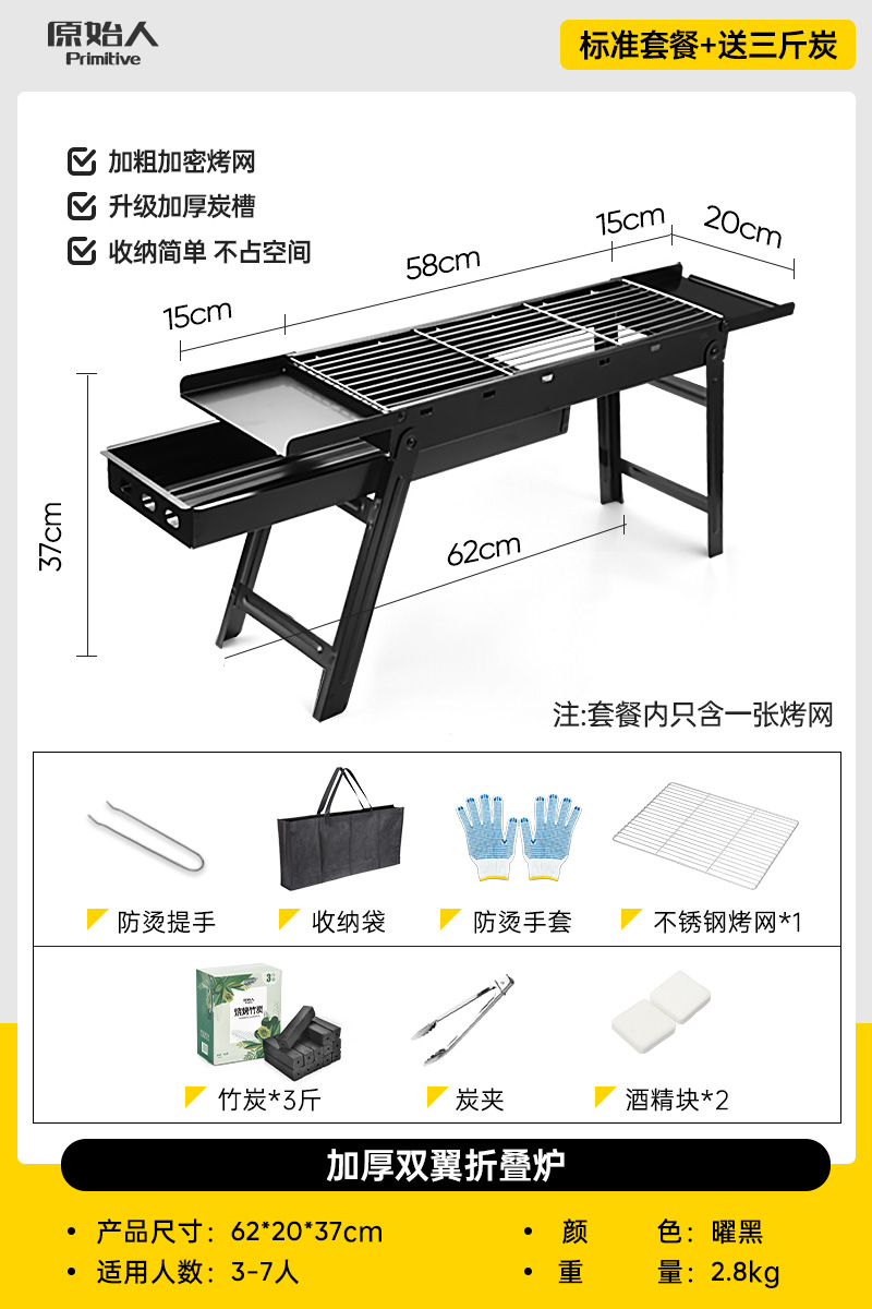 • 오븐 - 손잡이 포함 [업그레이드된 식품 등급 304 그릴 그리드] 무료 10개 세트 + 숯 1.5kg개