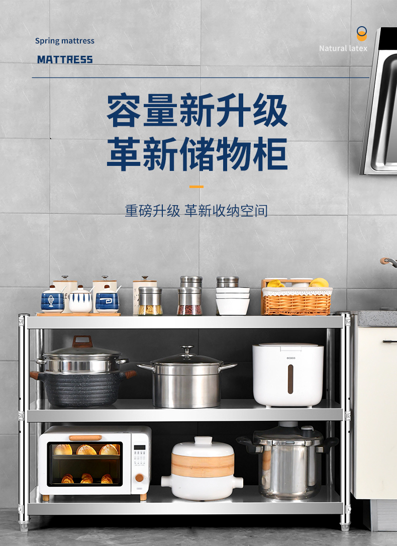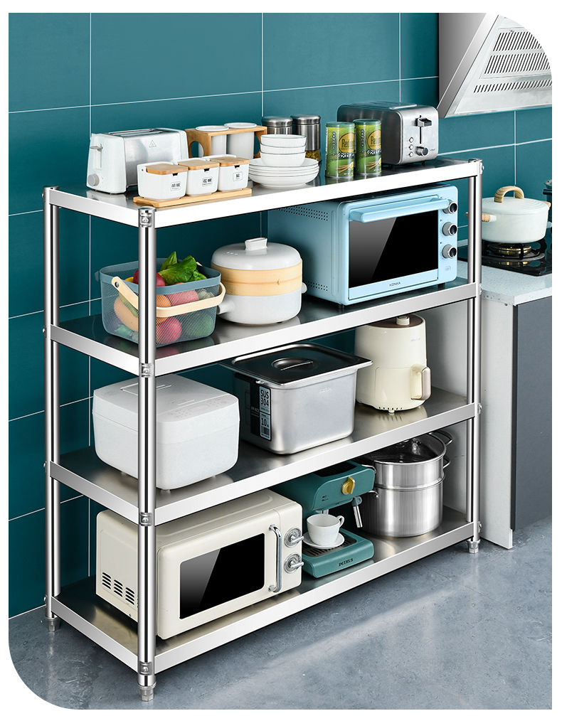 스테인레스 스틸 주방 보관 랙 다층 바닥 다기능 선반 보관 랙 캐비닛 스토브 가정용 저장화물