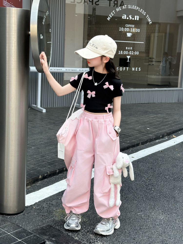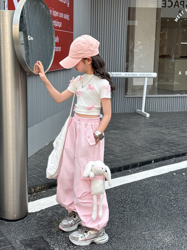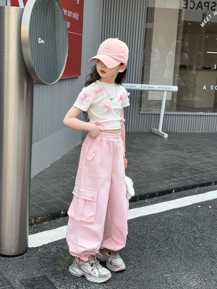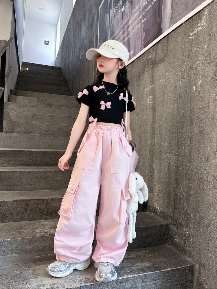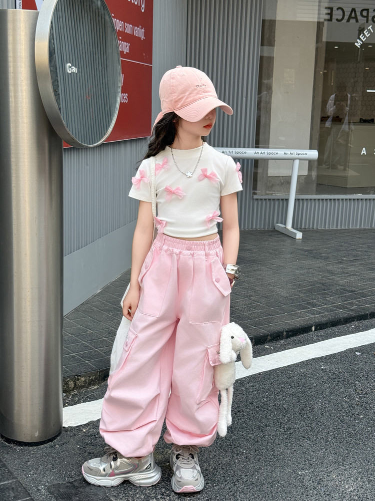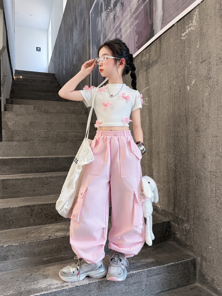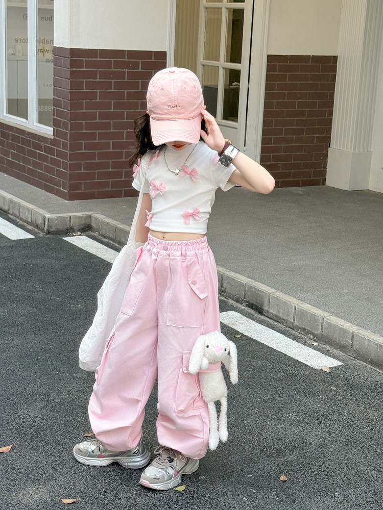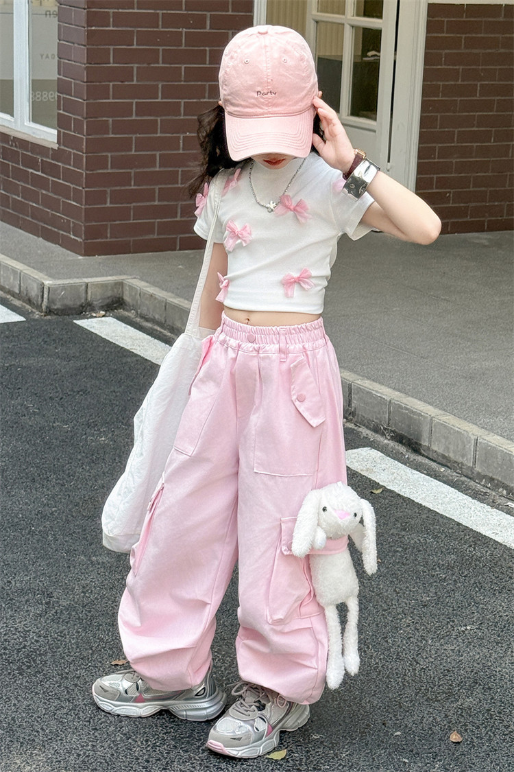 국경 간 여자 반팔 세트 2025 년 여름 신소녀 한국형 도파민 어린이 코일 바지 투피스 세트