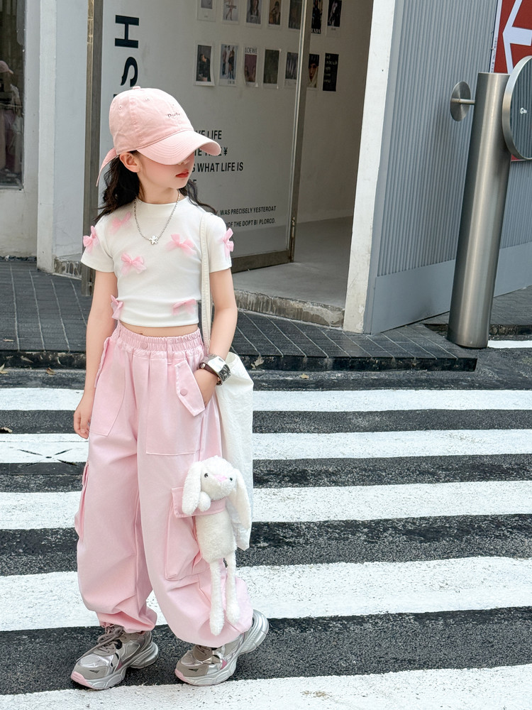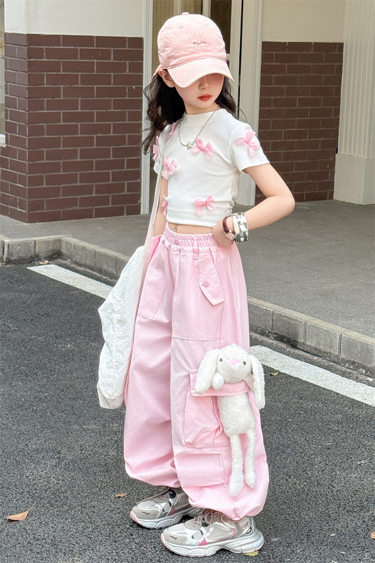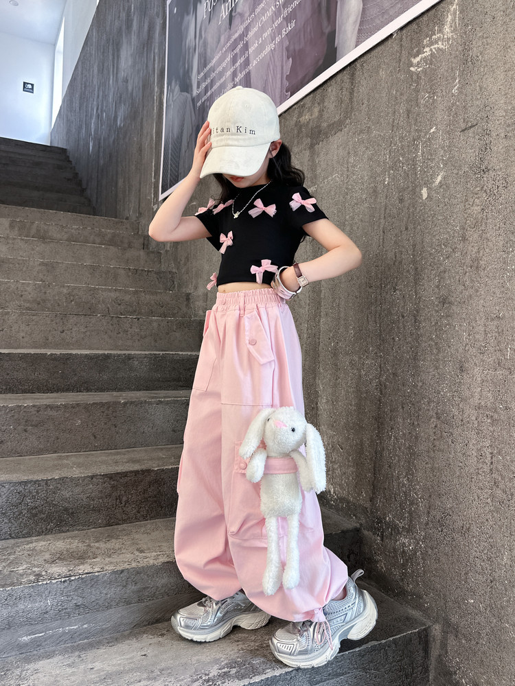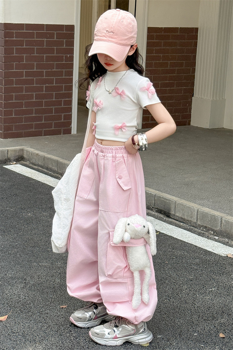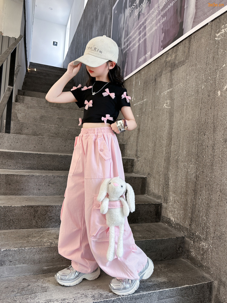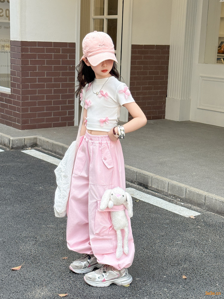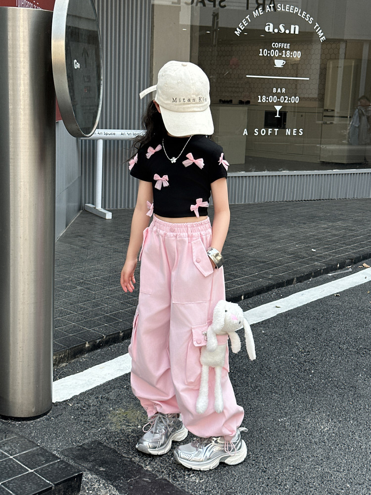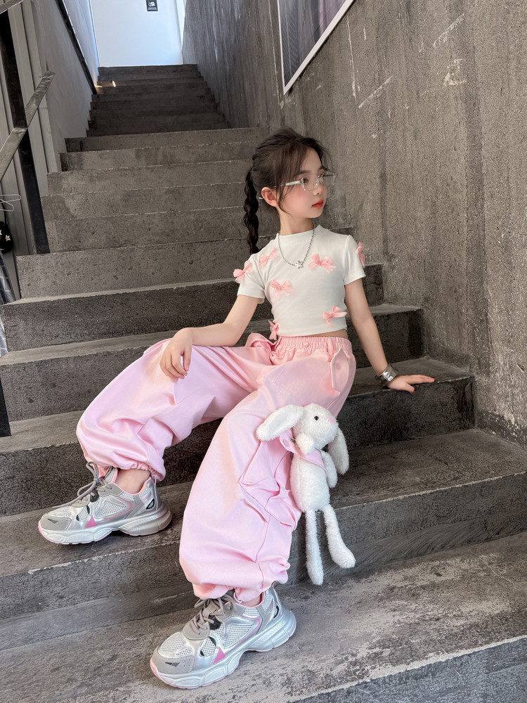 국경 간 여자 반팔 세트 2025 년 여름 신소녀 한국형 도파민 어린이 코일 바지 투피스 세트