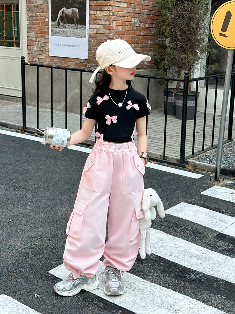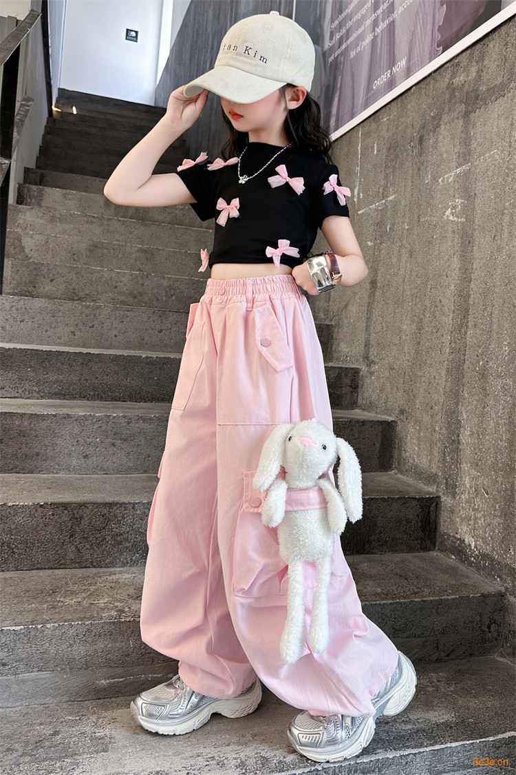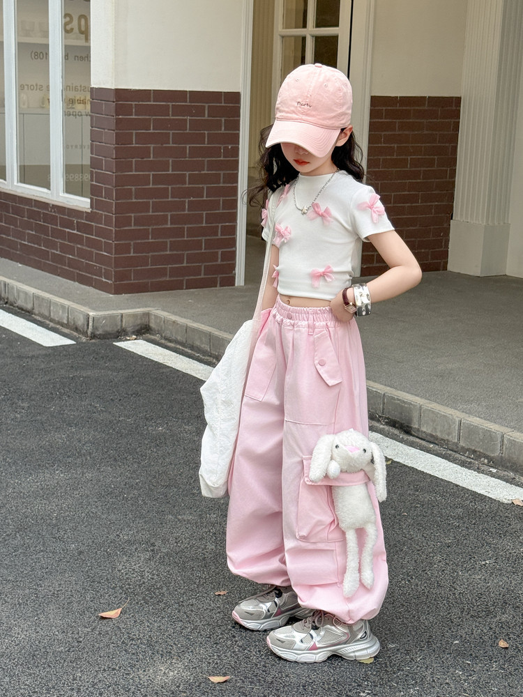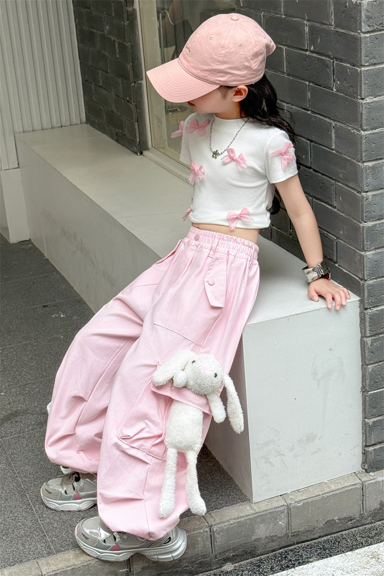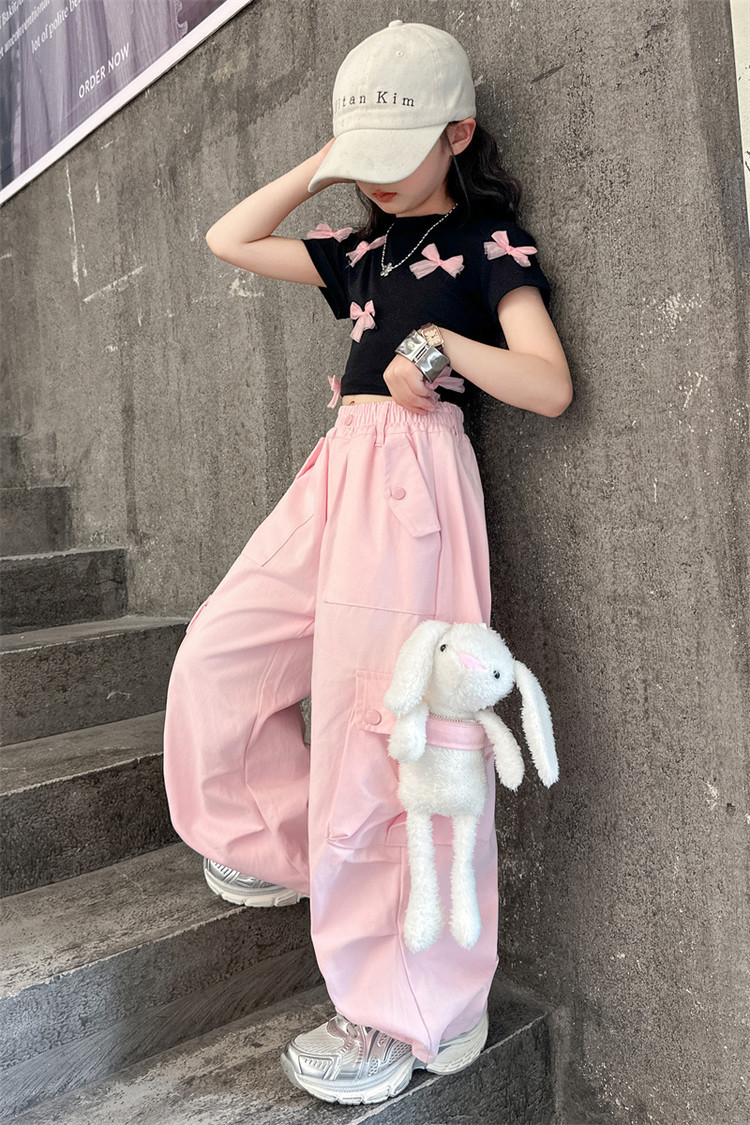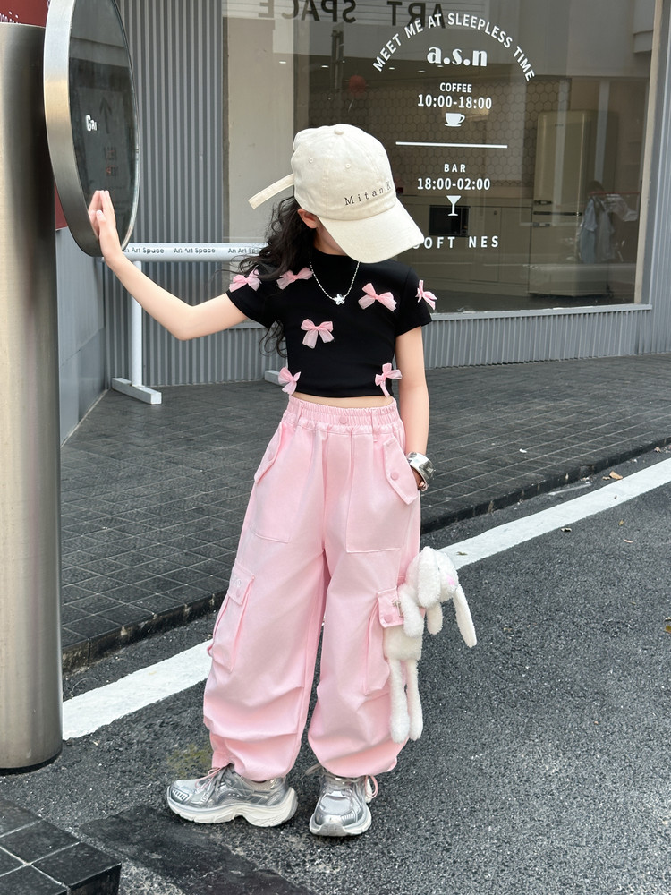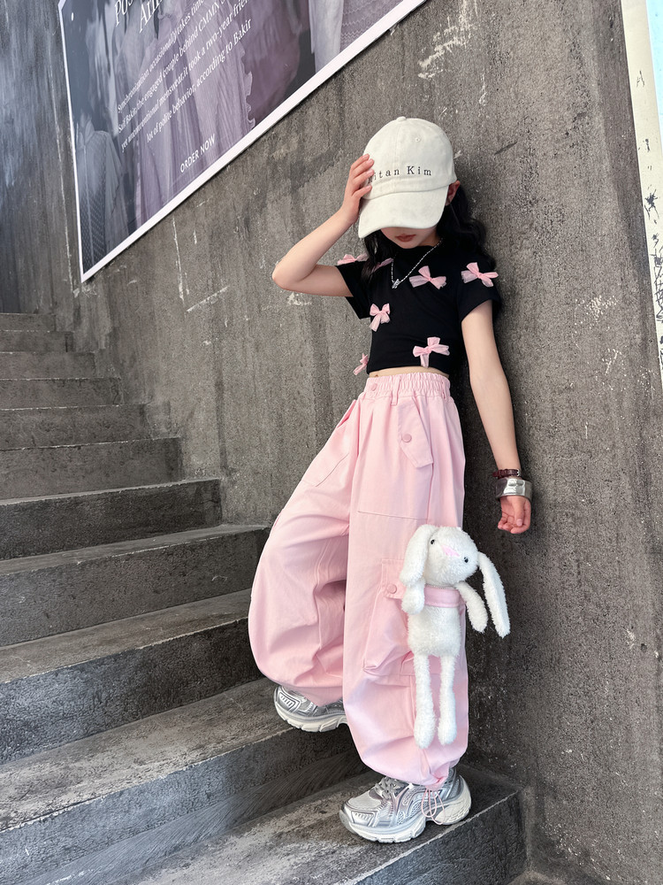 국경 간 여자 반팔 세트 2025 년 여름 신소녀 한국형 도파민 어린이 코일 바지 투피스 세트