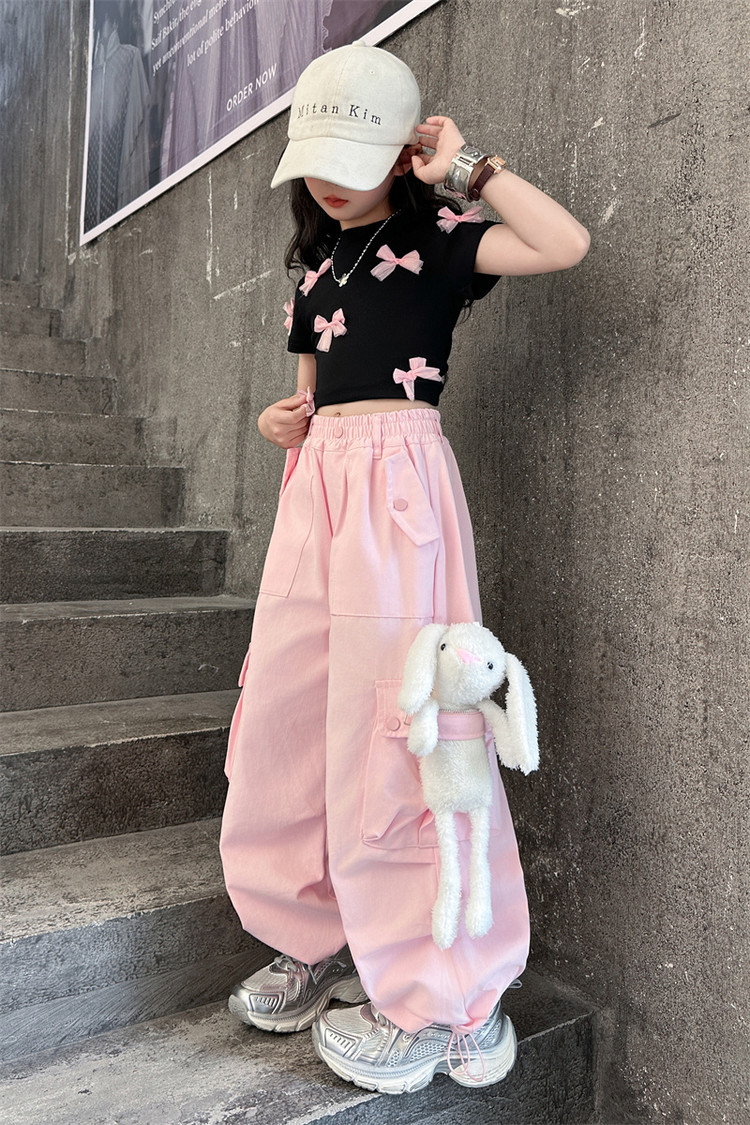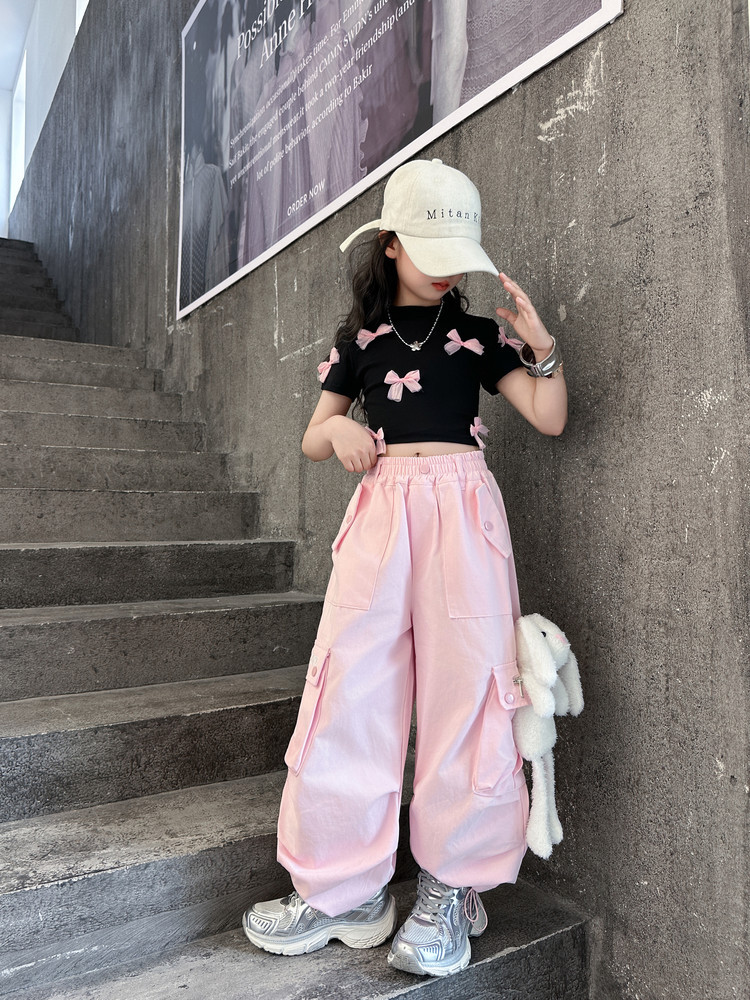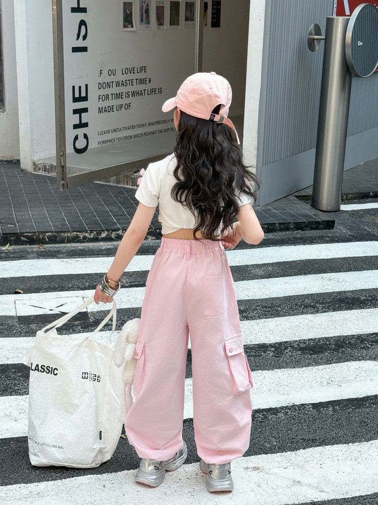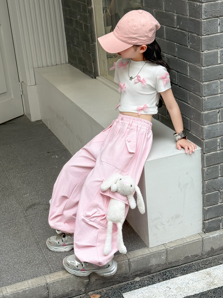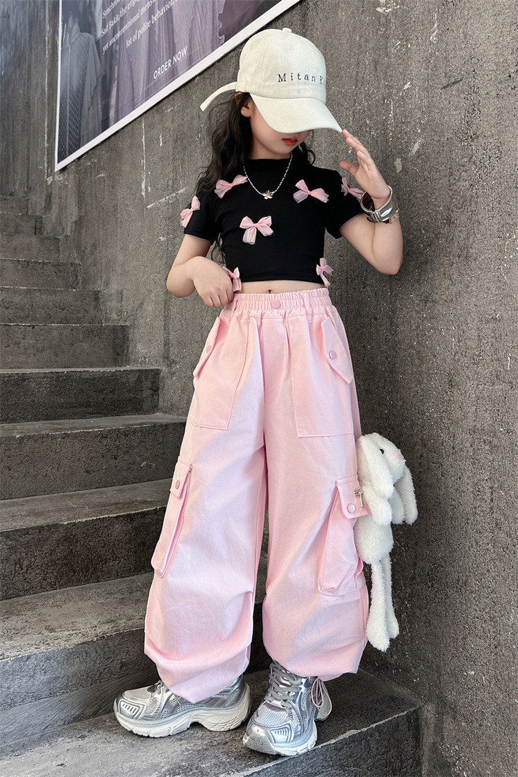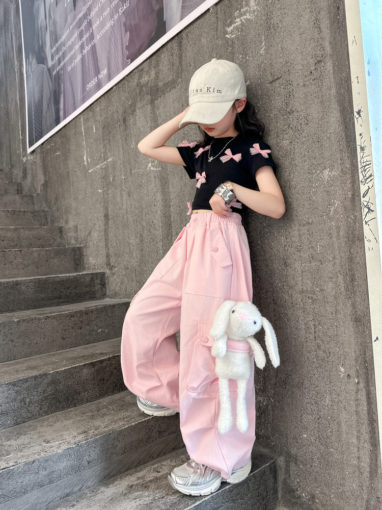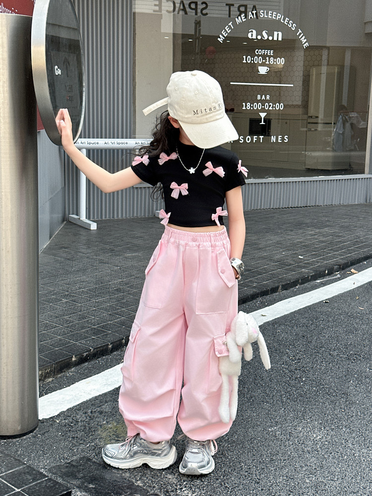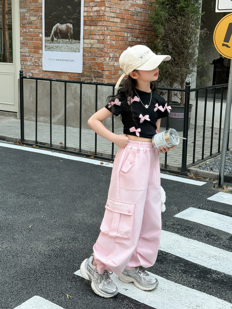 국경 간 여자 반팔 세트 2025 년 여름 신소녀 한국형 도파민 어린이 코일 바지 투피스 세트
