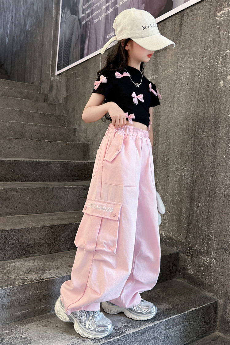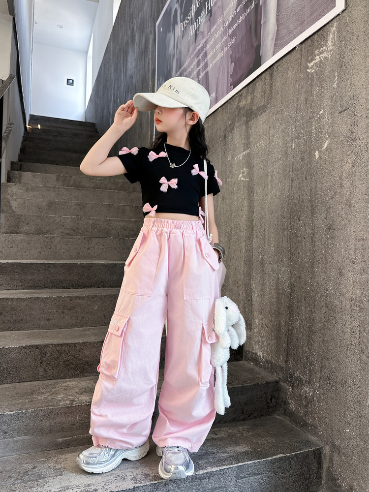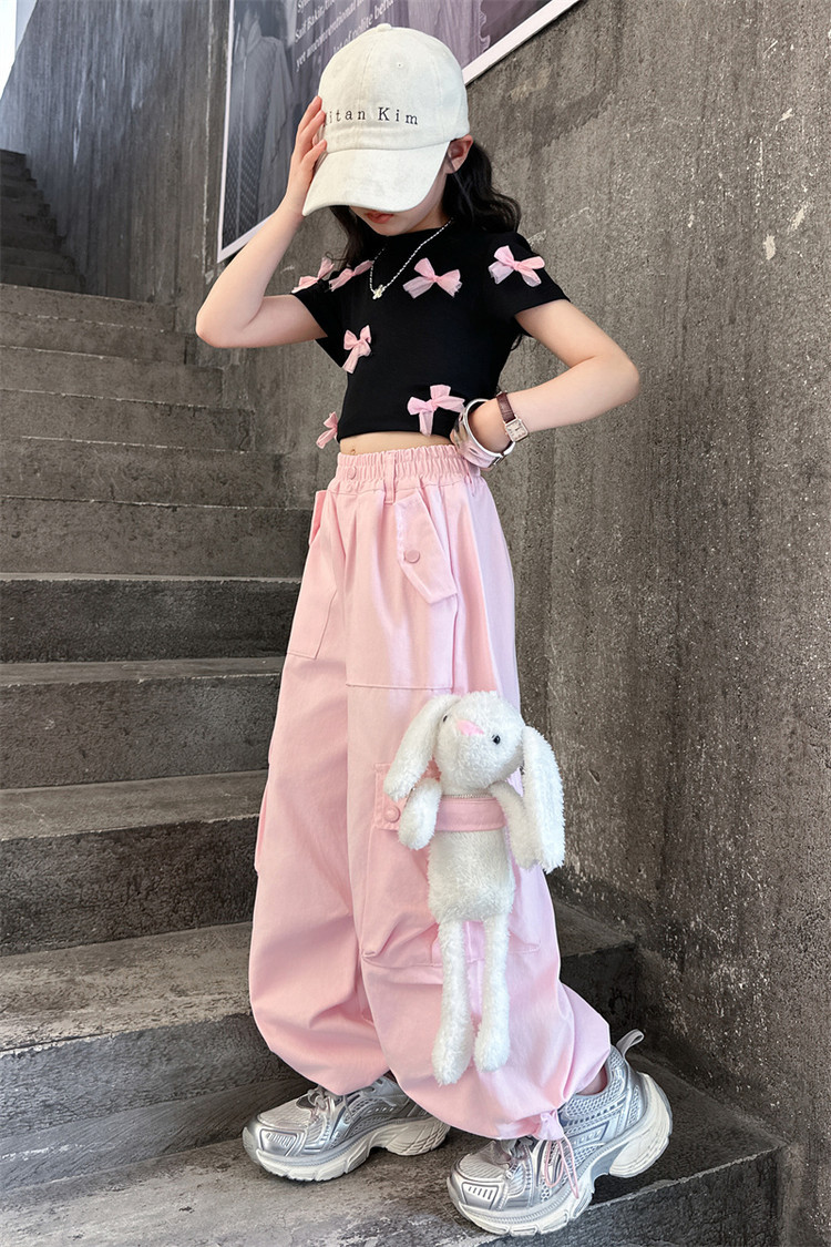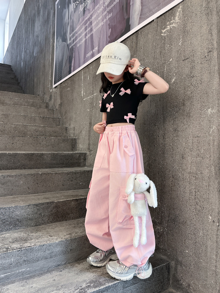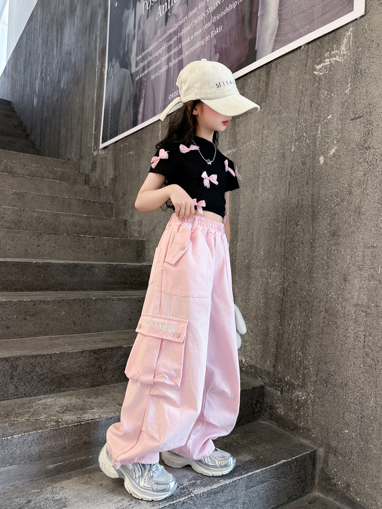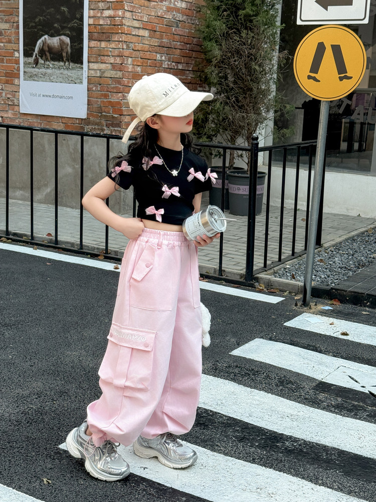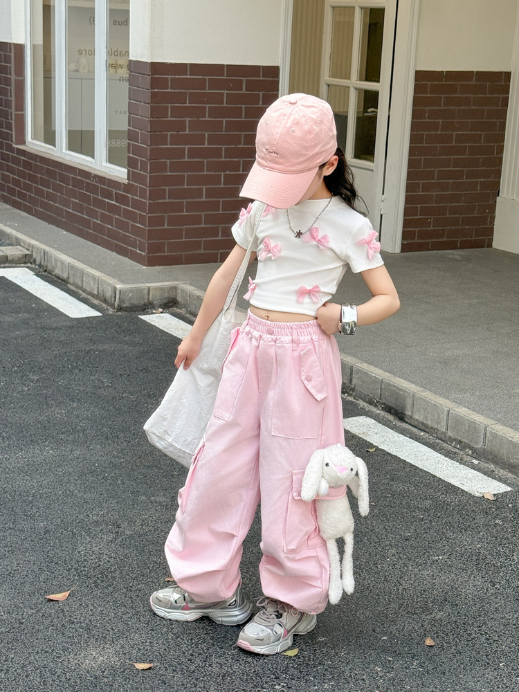 국경 간 여자 반팔 세트 2025 년 여름 신소녀 한국형 도파민 어린이 코일 바지 투피스 세트