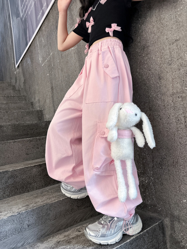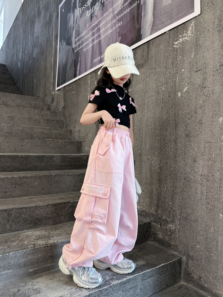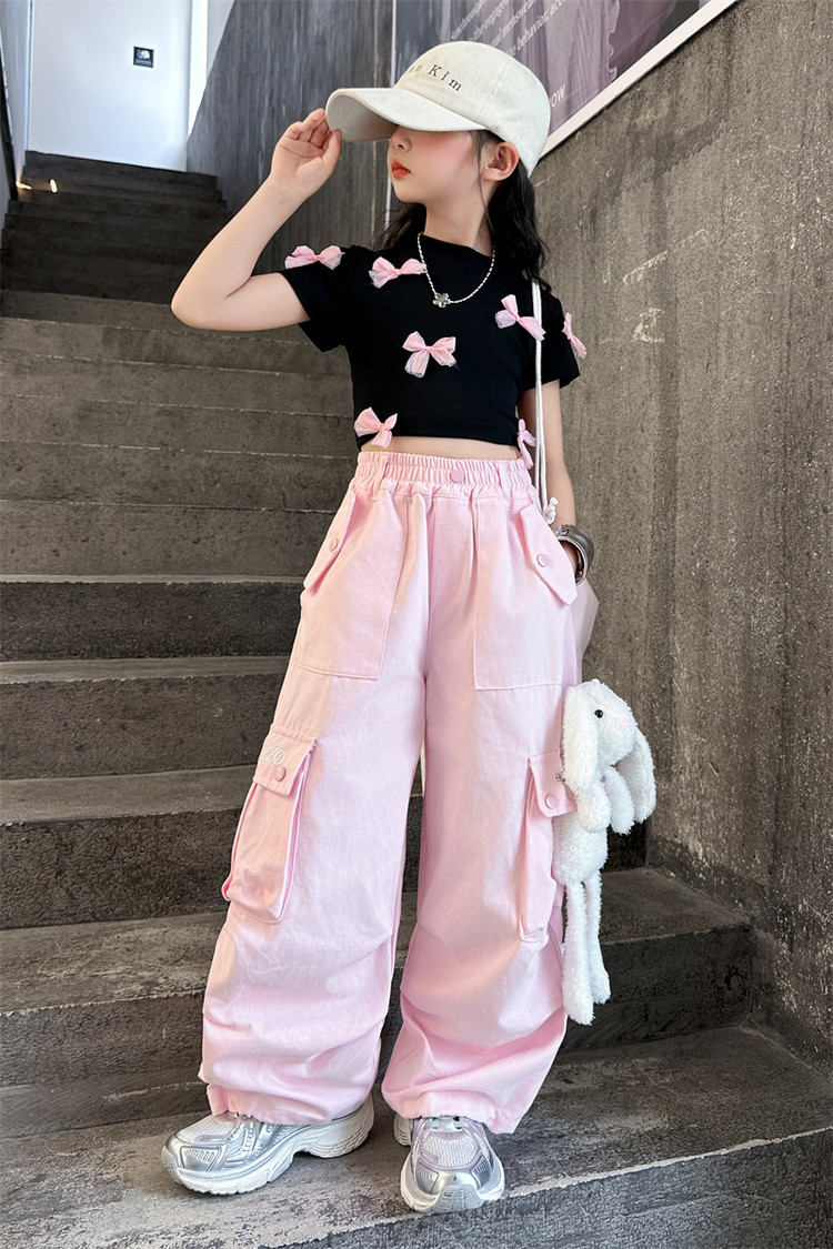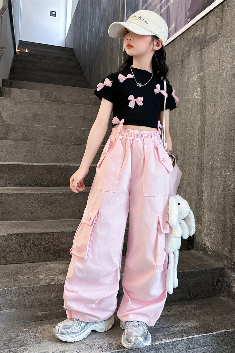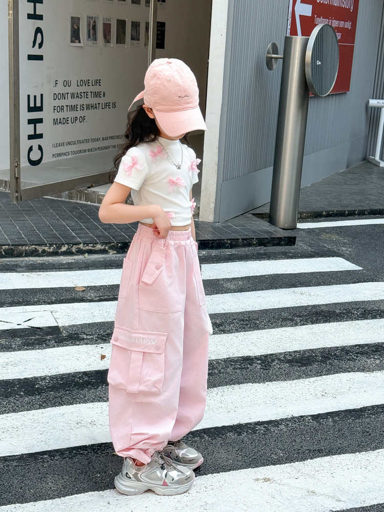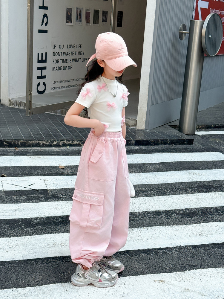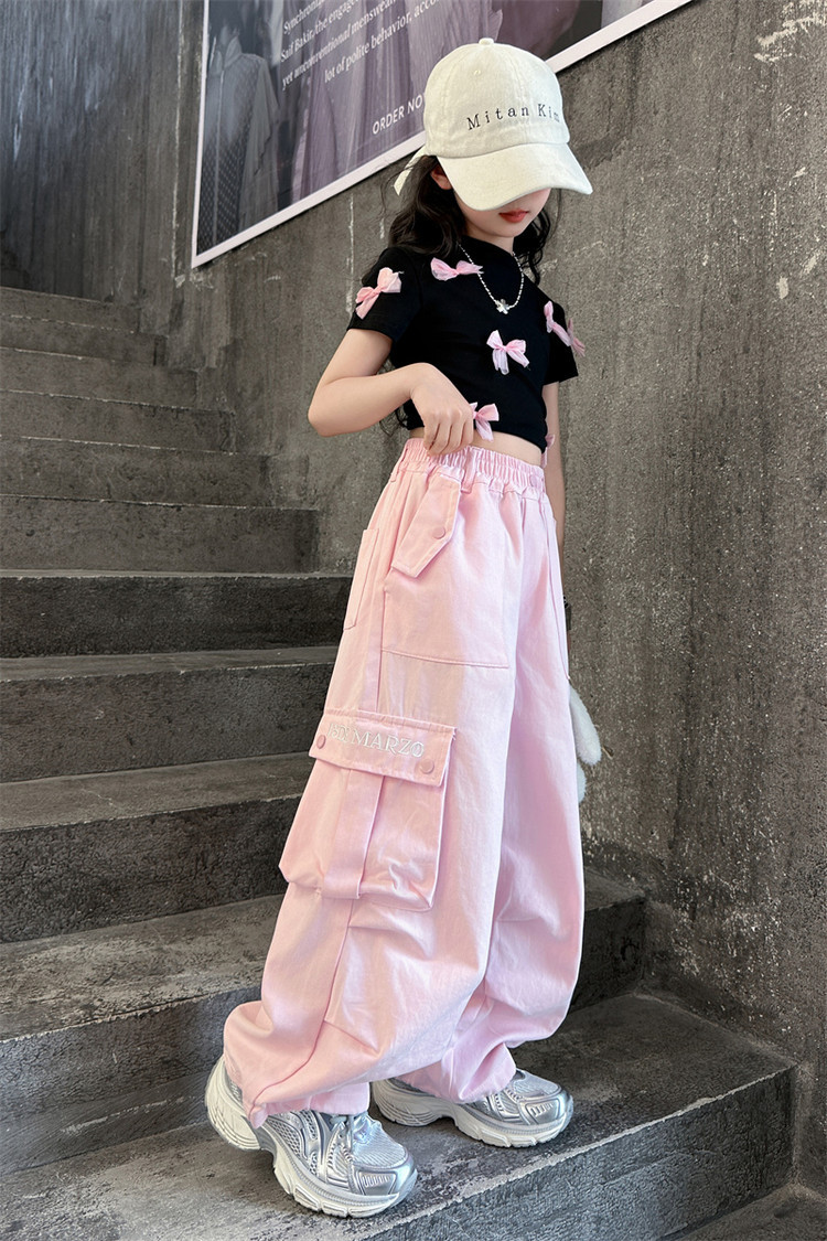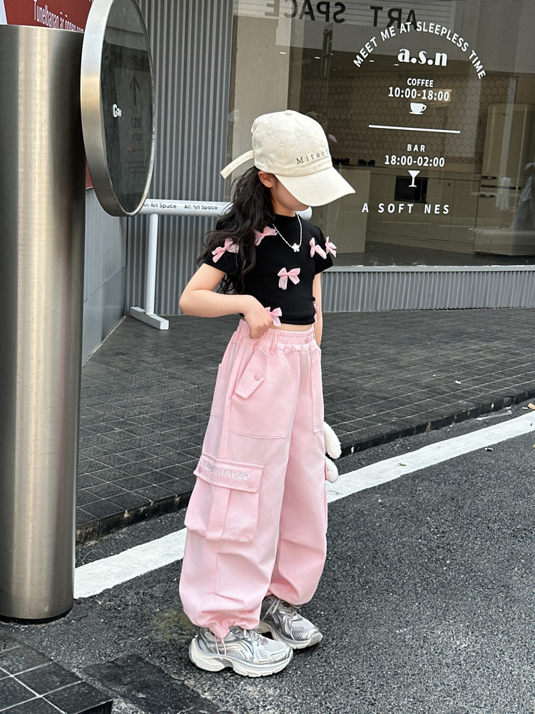 국경 간 여자 반팔 세트 2025 년 여름 신소녀 한국형 도파민 어린이 코일 바지 투피스 세트