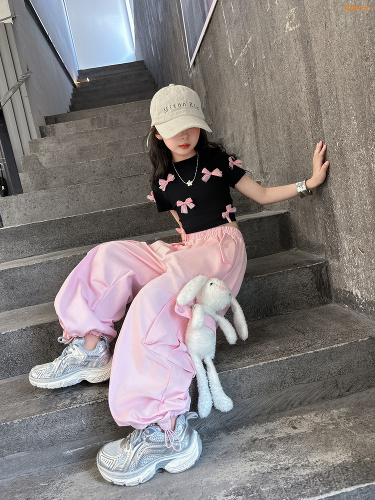 국경 간 여자 반팔 세트 2025 년 여름 신소녀 한국형 도파민 어린이 코일 바지 투피스 세트스토어 가기
