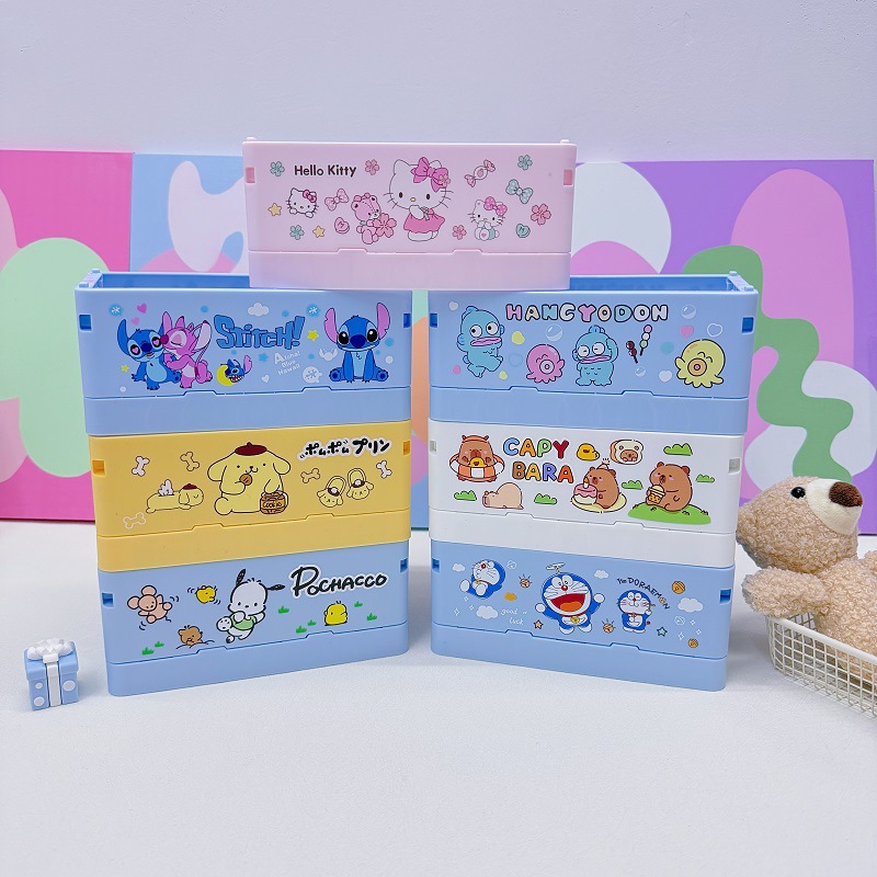 卡通三丽鸥桌面折叠收纳盒书桌塑料迷你储物盒文具收纳盒,产品尺寸:16.5X12X7cm.