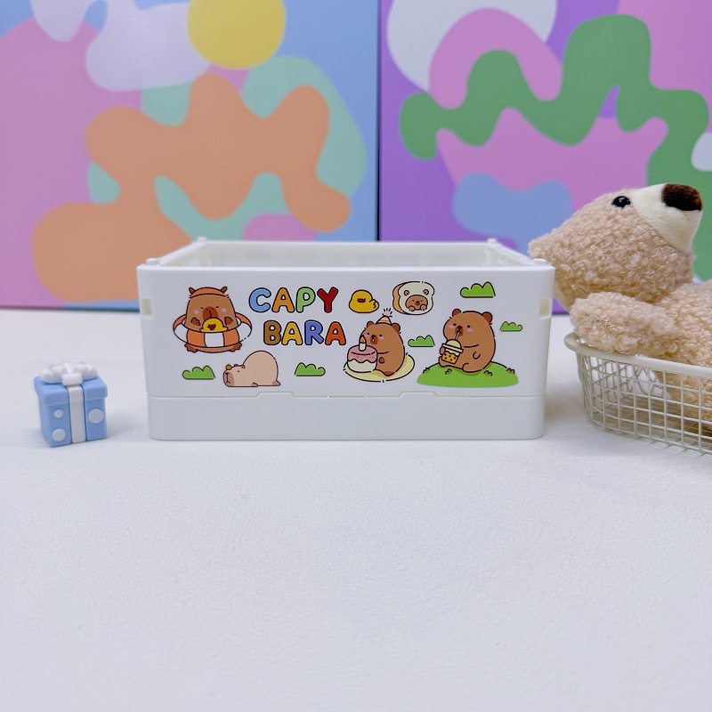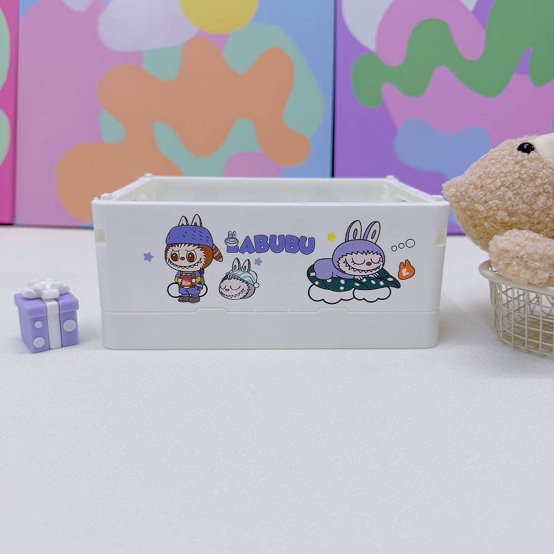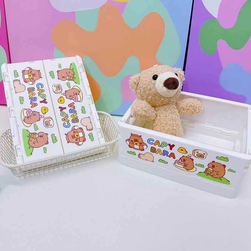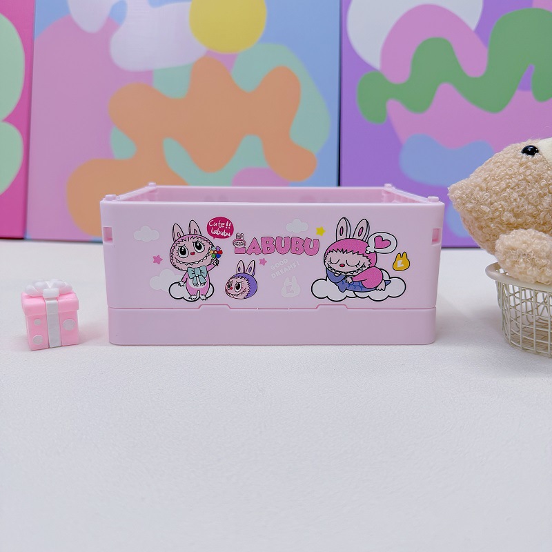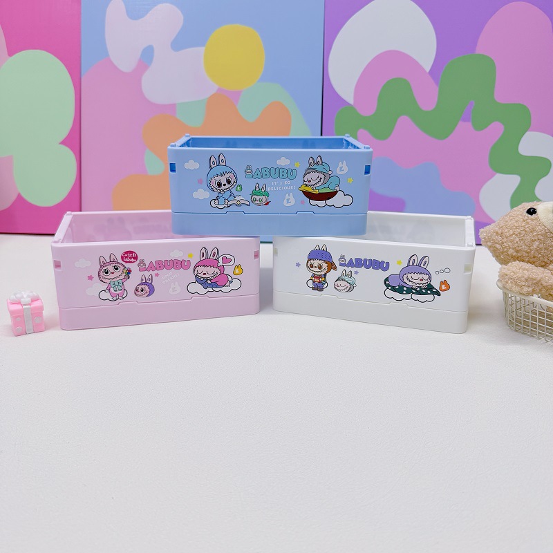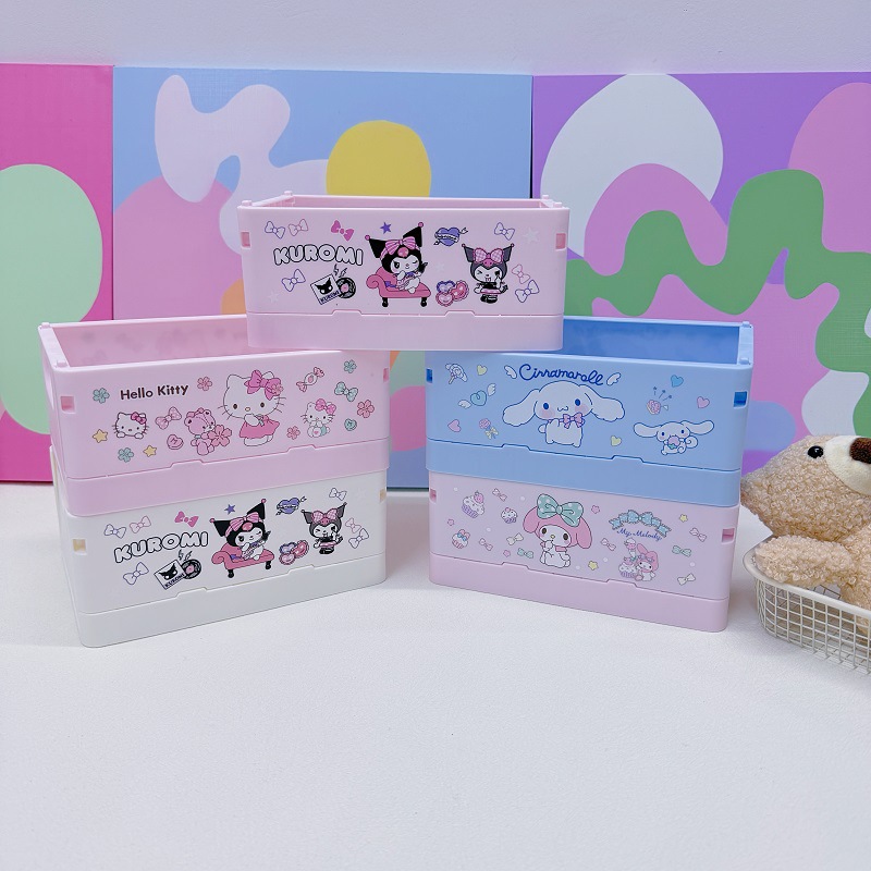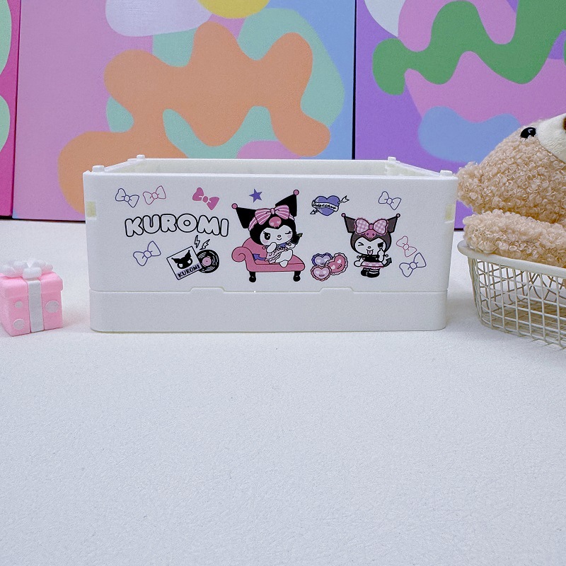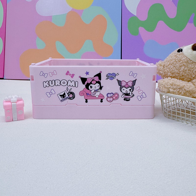 국경 간 데스크탑 접이식 보관 상자 쿠로미 스타일 책상 플라스틱 미니 보관 상자 편지지 보관 상자 소녀 하트스토어 가기