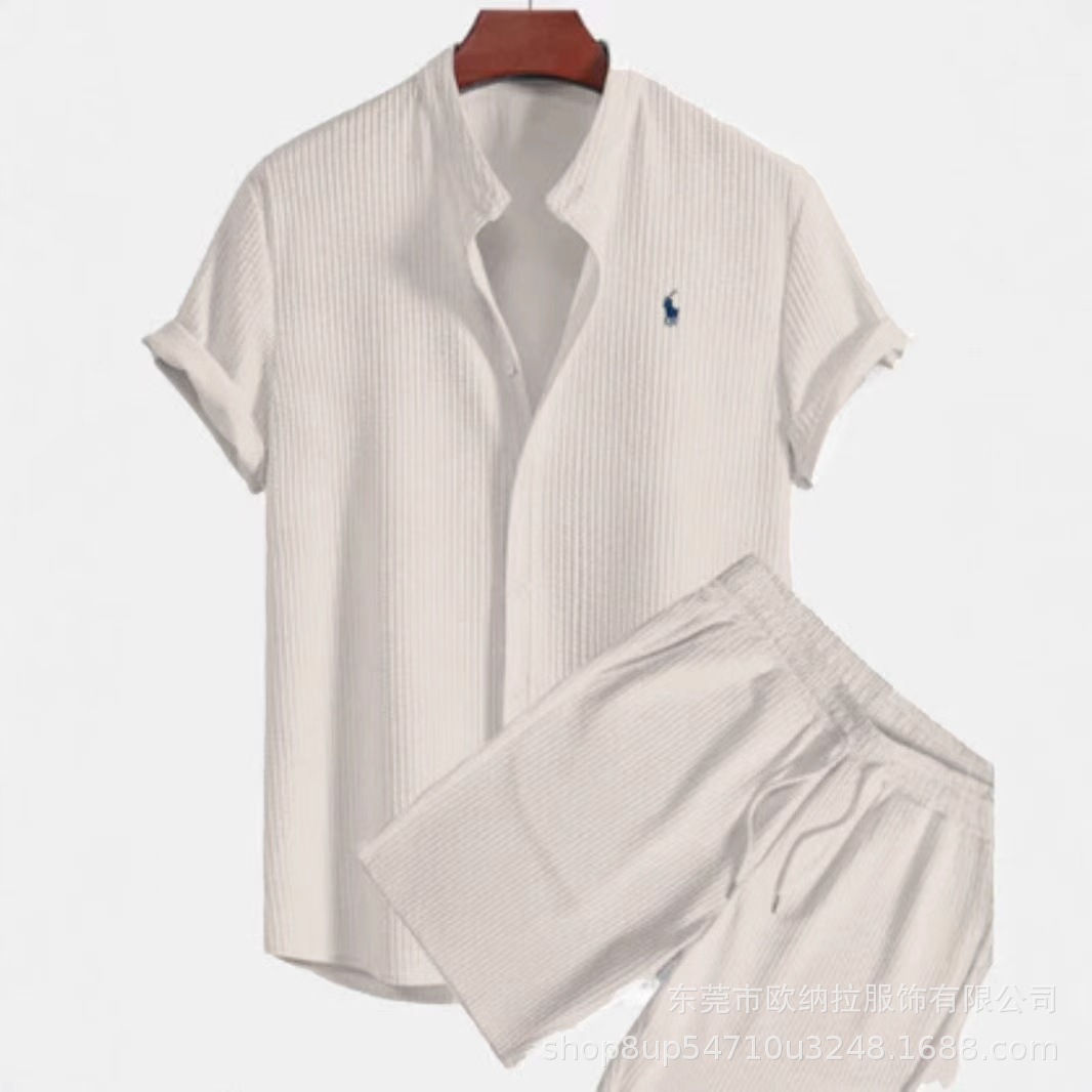 2025 유럽과 미국의 국경 간 여름 Amazon AliExpress 남성 셔츠 캐주얼 루즈 반팔 반바지 아이스 실크 슈트스토어 가기