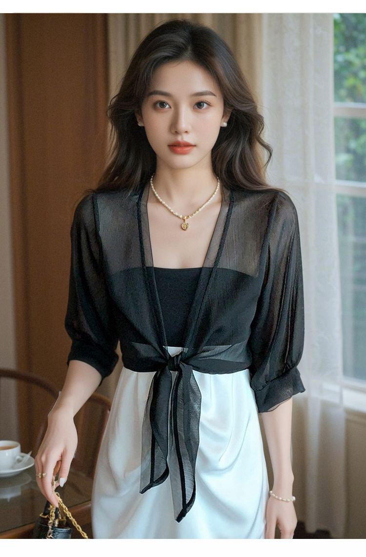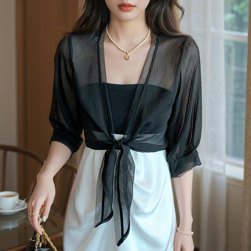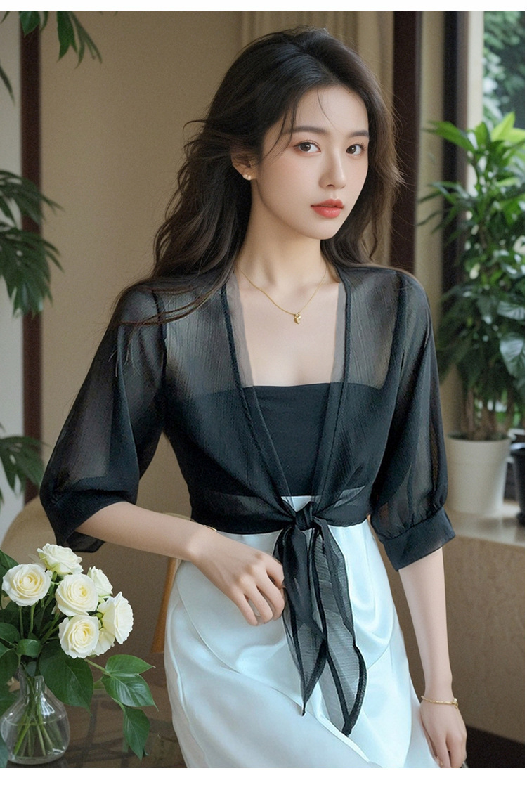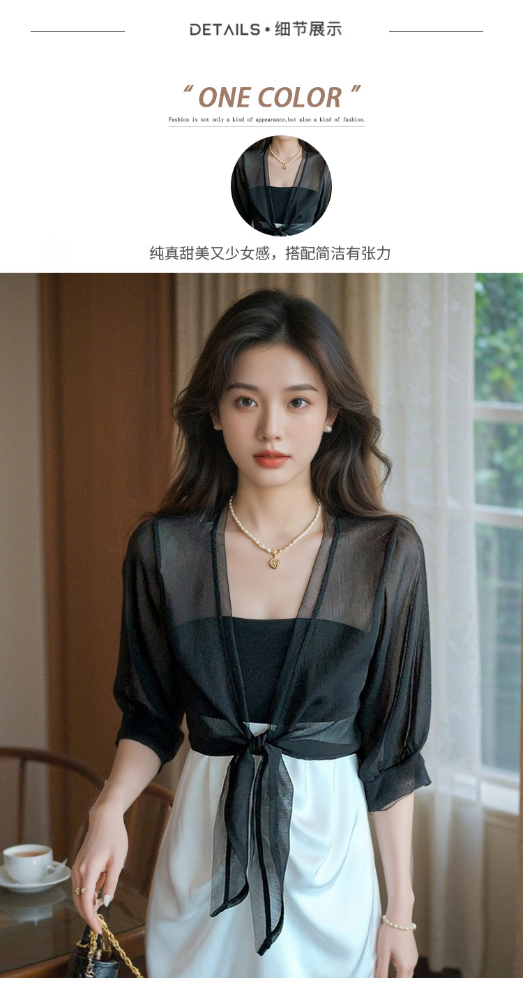 여성용 작은 숄 코트 2025 새로운 여름 스타일 작은 양복 조끼 다용도 쉬폰 자외선 차단 의류 초박형 짧은 아우터 가디건