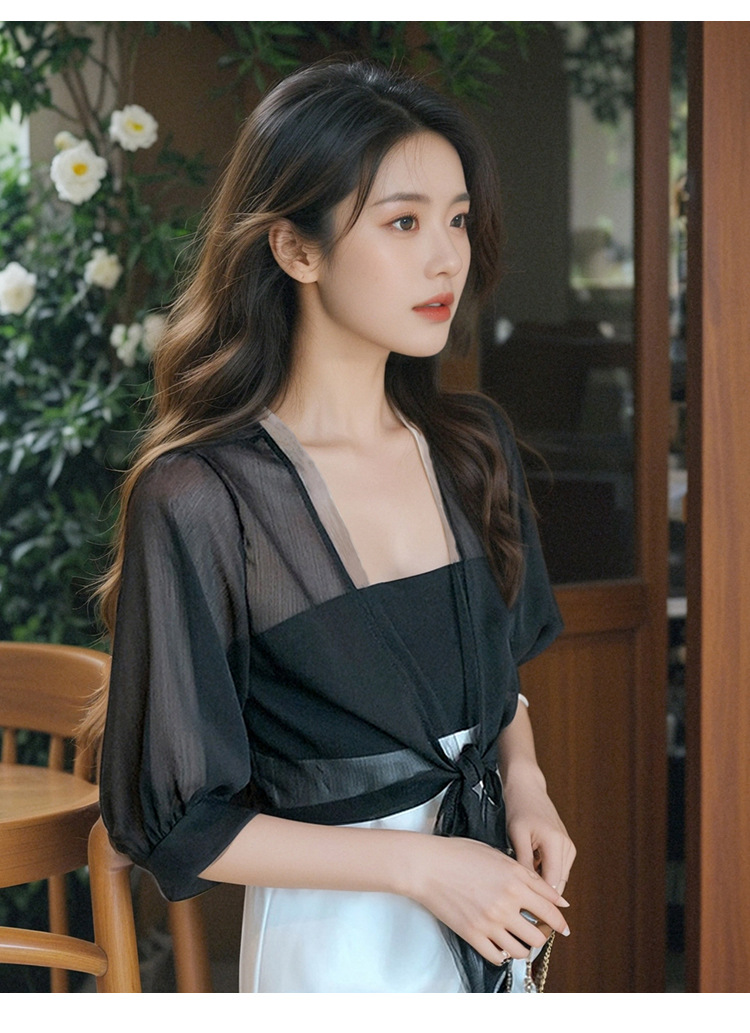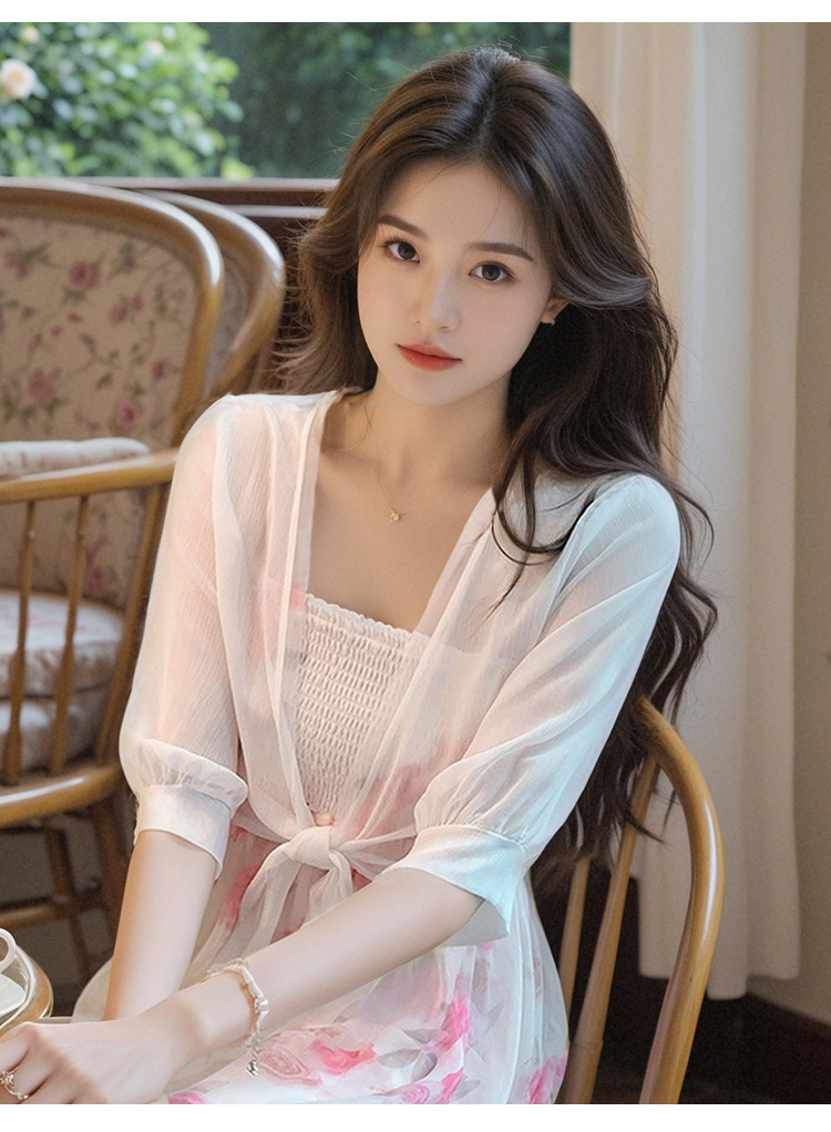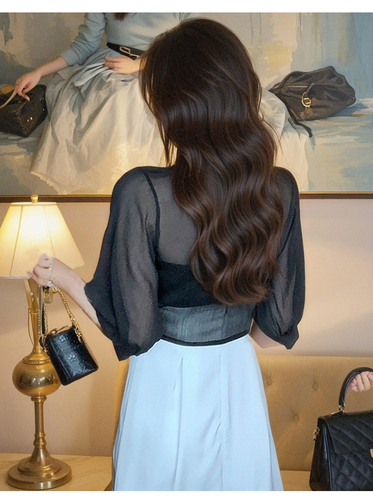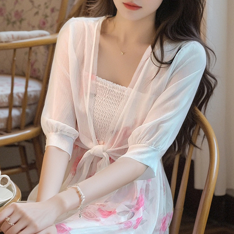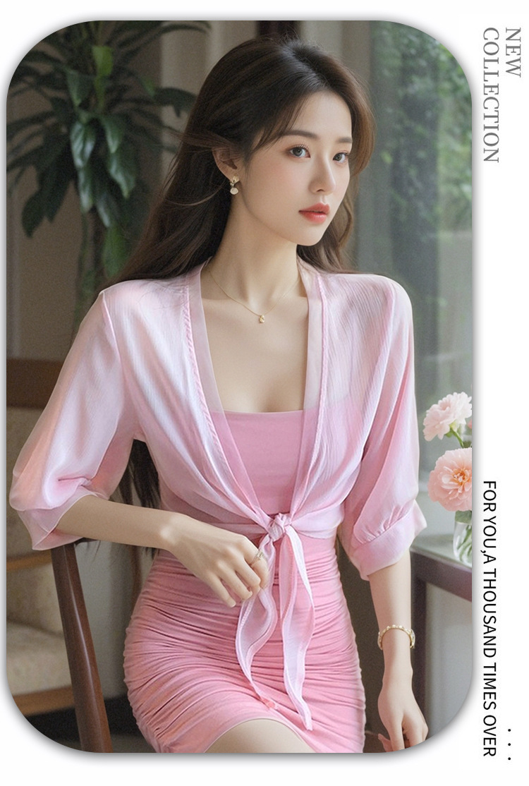 여성용 작은 숄 코트 2025 새로운 여름 스타일 작은 양복 조끼 다용도 쉬폰 자외선 차단 의류 초박형 짧은 아우터 가디건