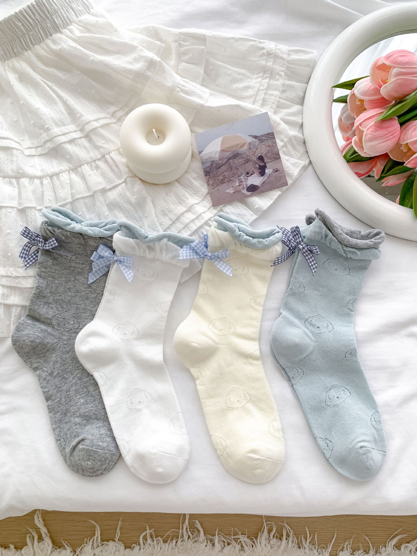 봄 여름 어린이를위한 힐 활 중간 튜브 스택 양말 얇은 어두운 패턴 강아지 한국 스타일 Ins 스타일 더블 레이스 양말스토어 가기