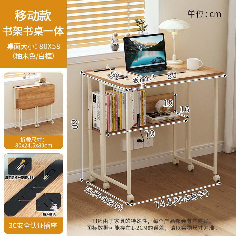 접이식 책상 책장 통합 연구 테이블 홈 모바일 테이블 침실 책상 컴퓨터 책상 간단한 접는 s ^스토어 가기