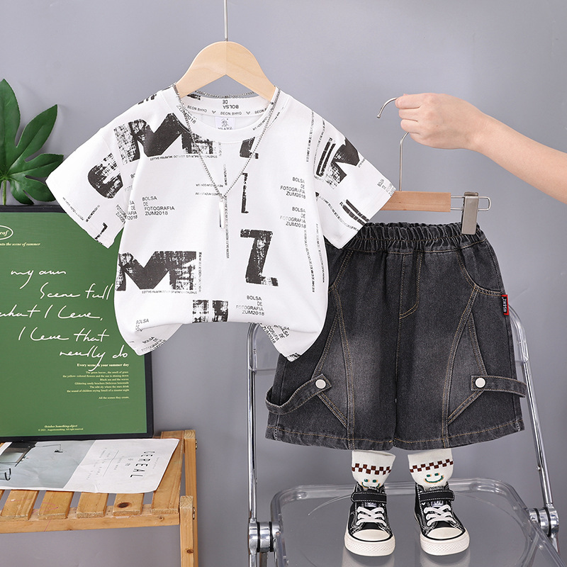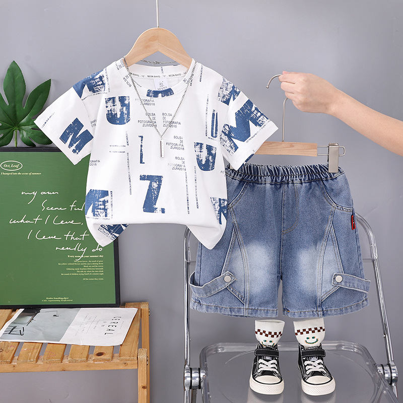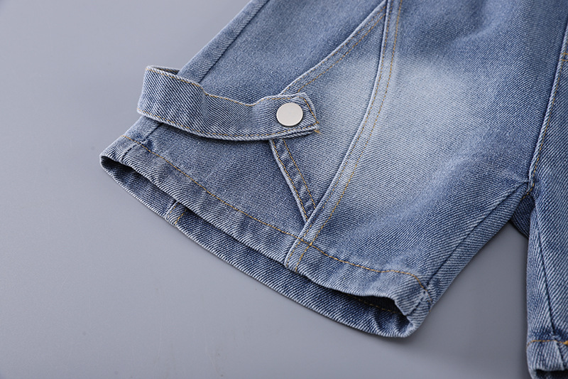 여름 얇은 반팔 루즈 데님 반바지 소년 한국 스타일 캐주얼 다목적 탄성 반바지 투피스 세트 대외 무역 트렌드