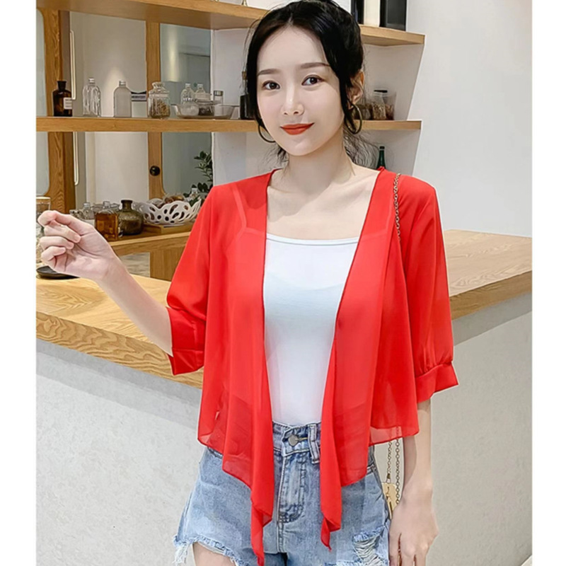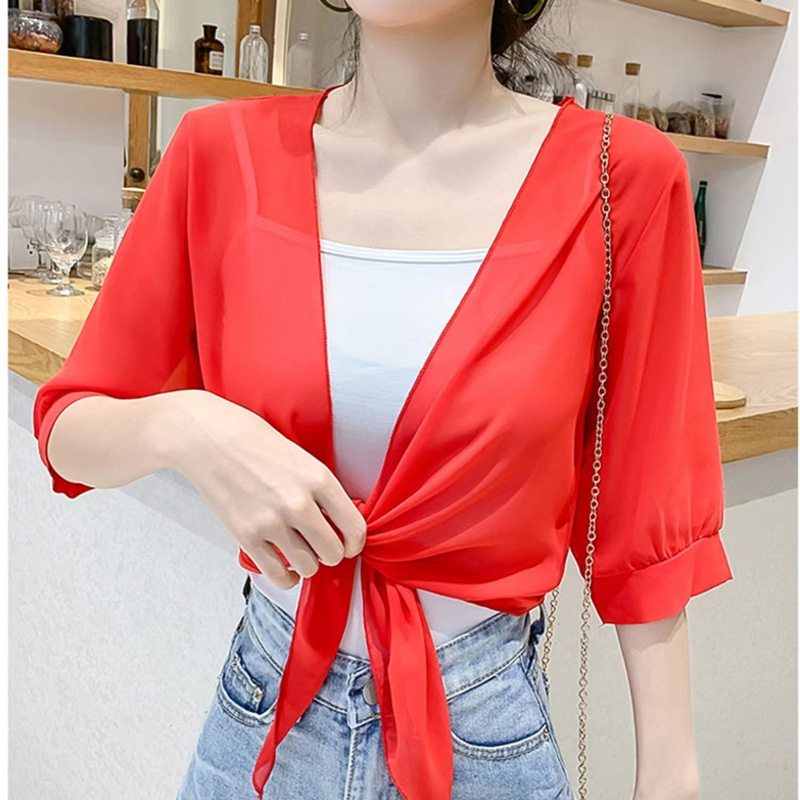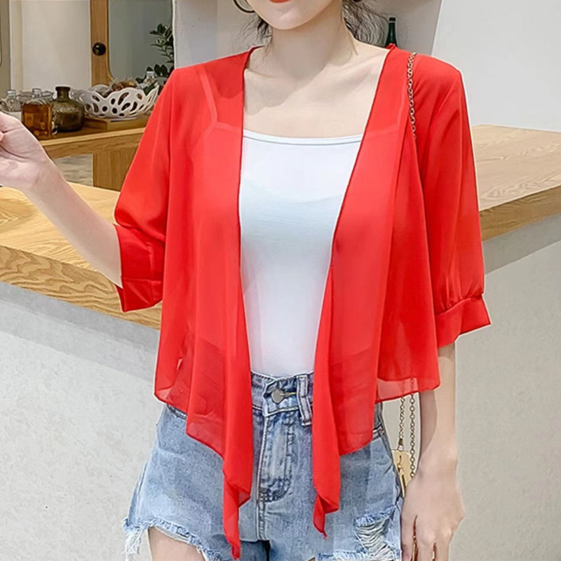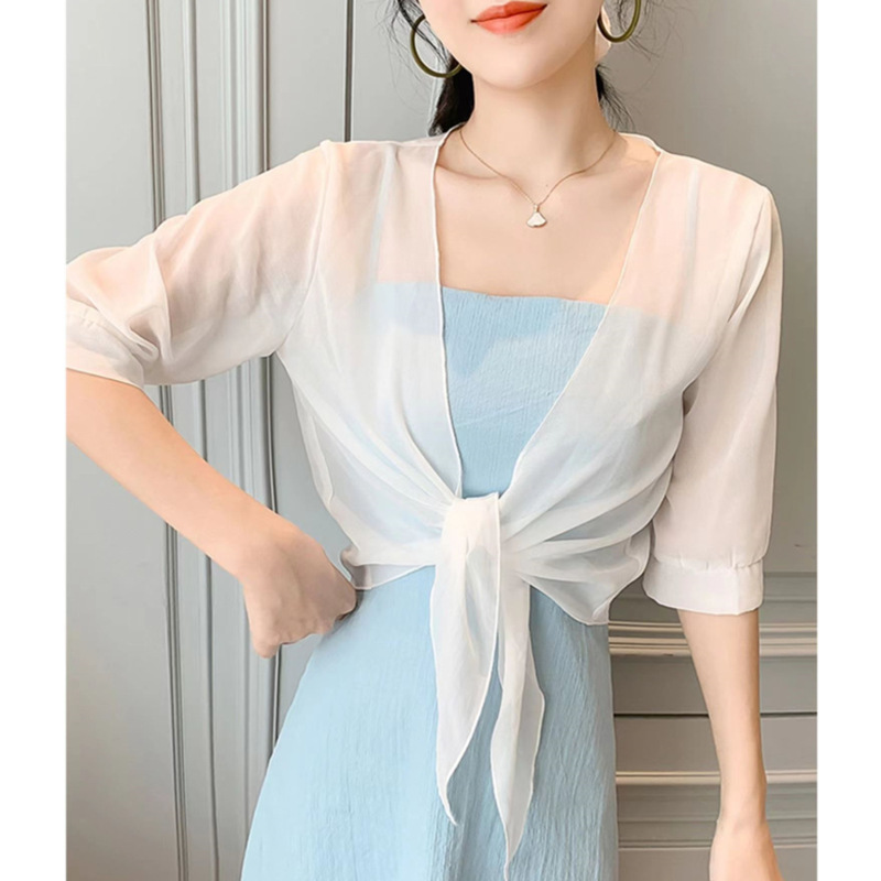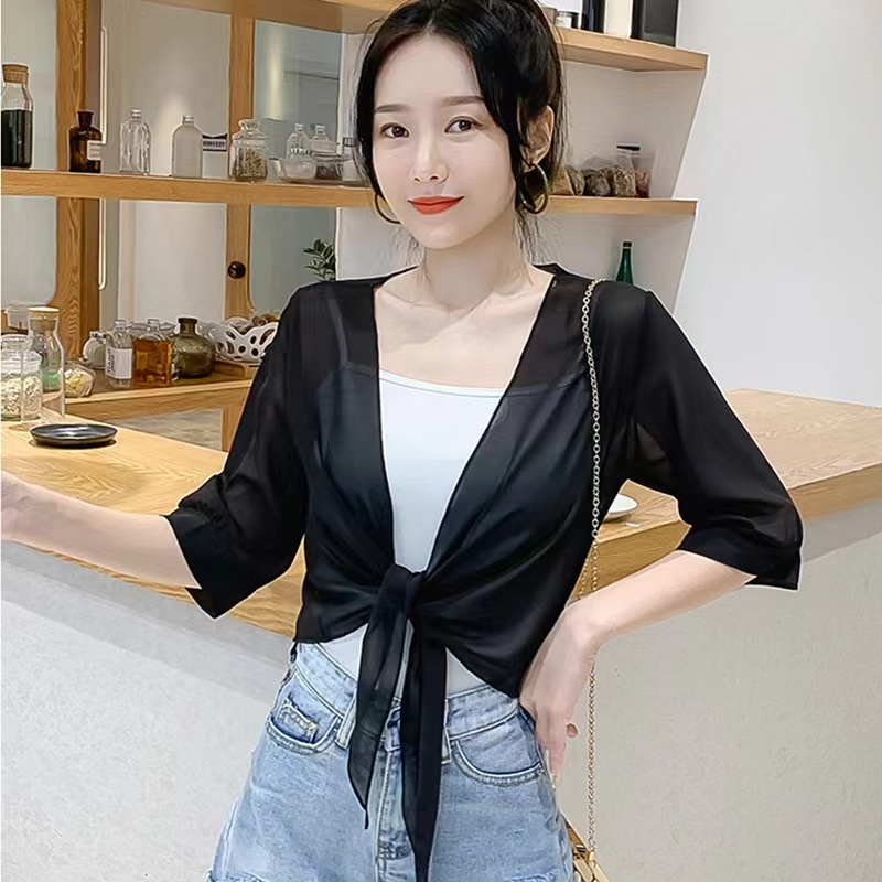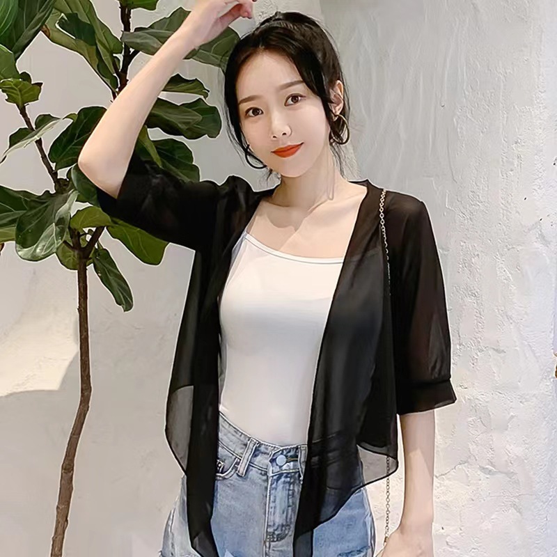 2515 # 여름 자외선 차단 의류, 작은 숄, 여름 아우터, 짧은 자외선 차단 가디건, 여성용 쉬폰 탑, 얇은 스타일스토어 가기