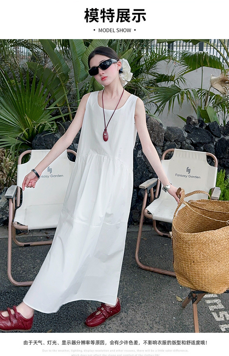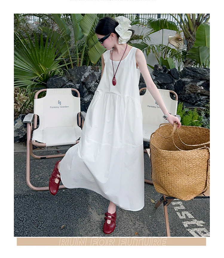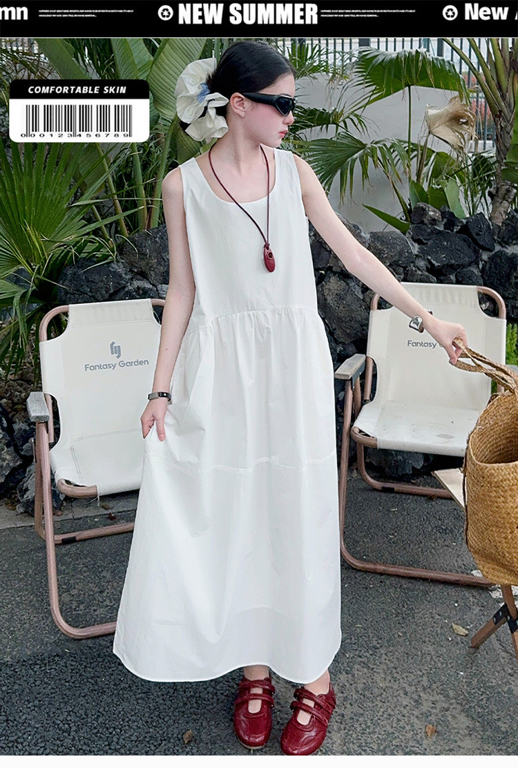 여자 흰 드레스 2025 여름 새로운 스타일 면 스커트 중대형 어린이 유행 면 꽃 스커트