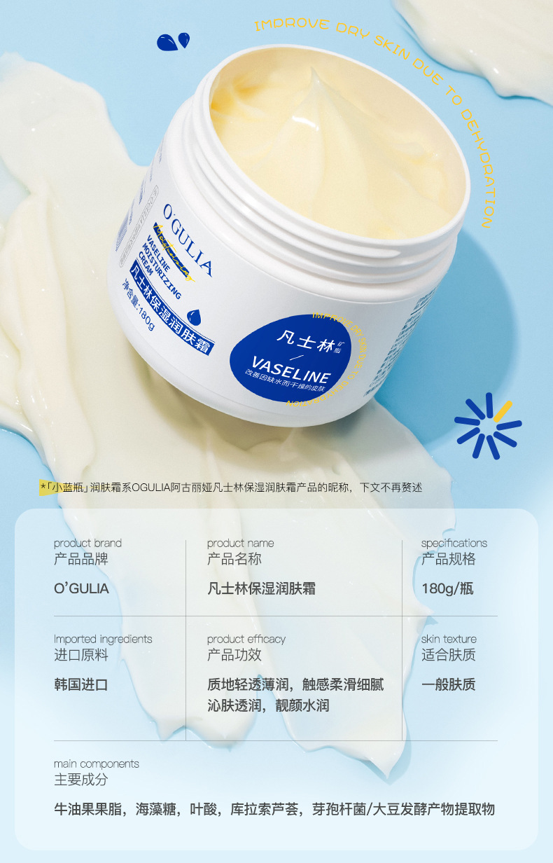 바세린 보습 페이스 크림 바디 로션 수분 공급 보습 안티 크랙 건조 끈적임 없음 스노우 크림 모이스처 라이저