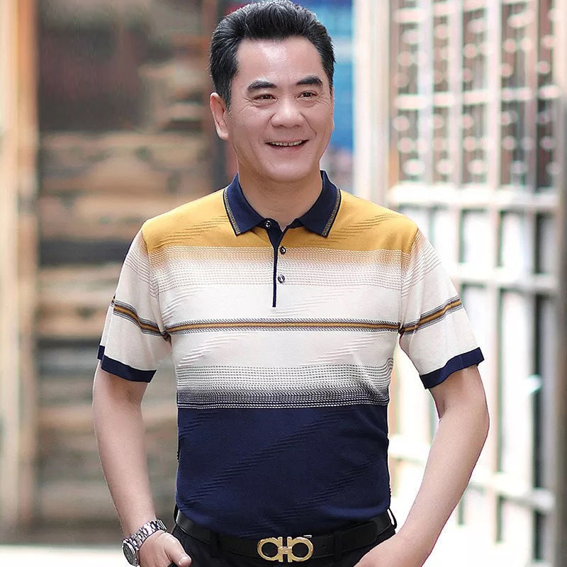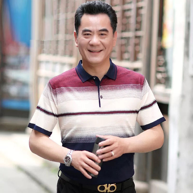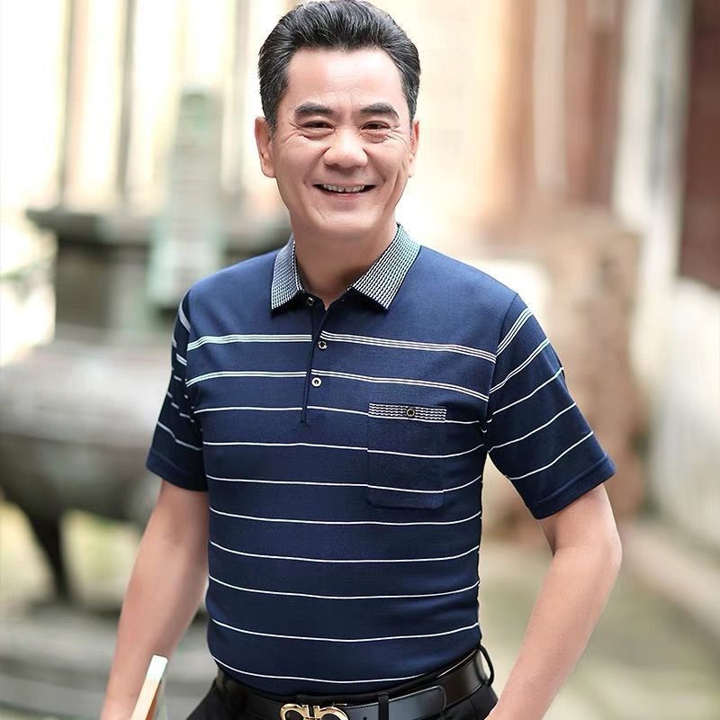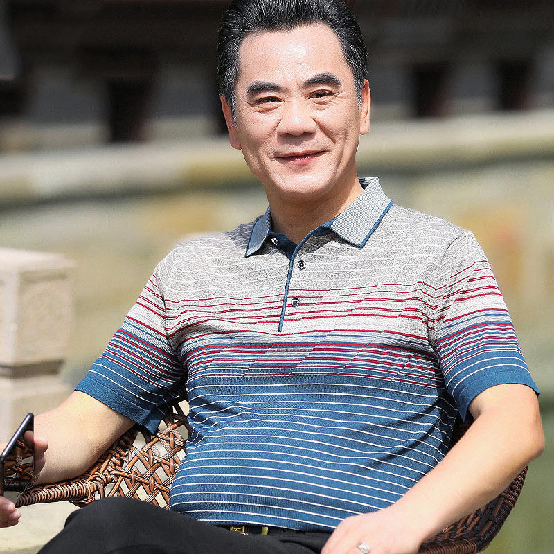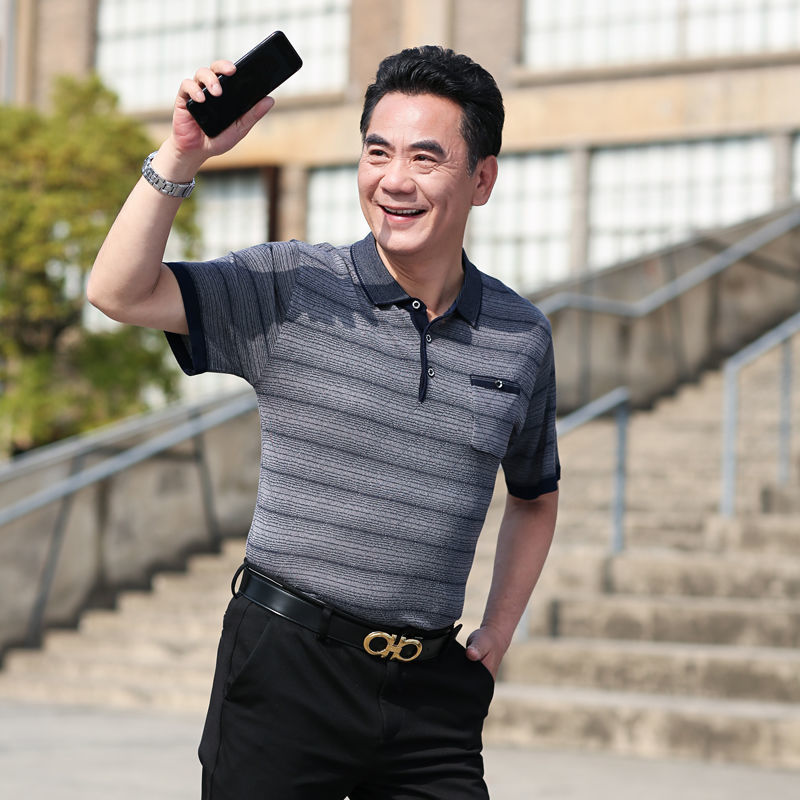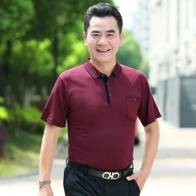 반팔티셔츠 40~50대 중장년 반팔바닥셔츠 아빠 여름옷 중년남성 얼음실크옷 할아버지