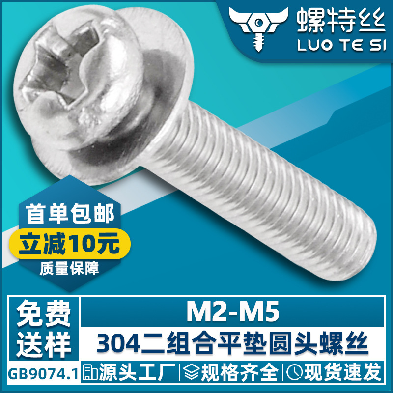 304 스테인레스 스틸 플랫 패드 조합 스크류 도매 크로스 라운드 헤드 패드 2 조합 스크류 M2/M3/M4/M5