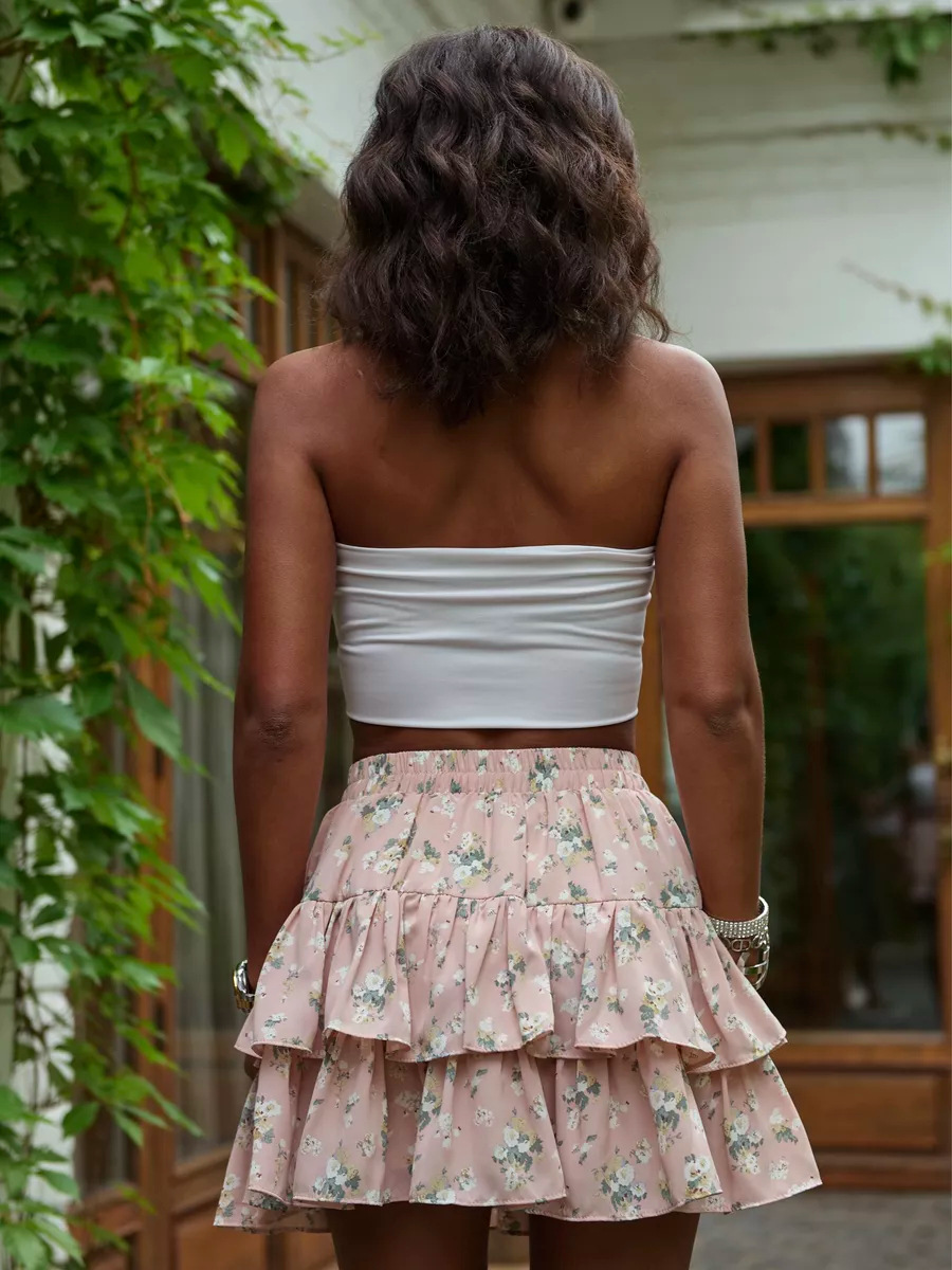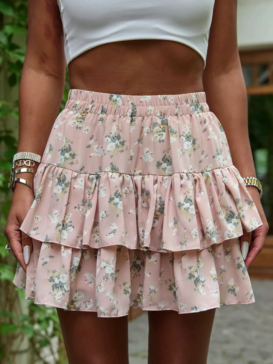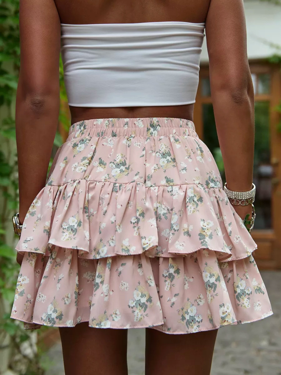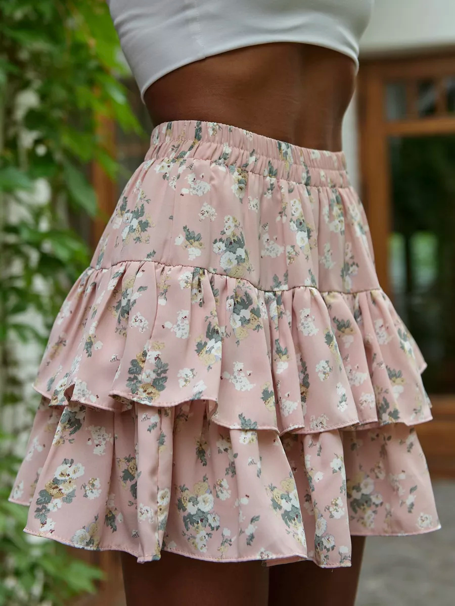 2025 유럽과 미국의 국경 여름 새로운 여성 의류 보헤미안 스포츠 휴가 꽃 캐주얼 다층 가장자리 미니 스커트스토어 가기