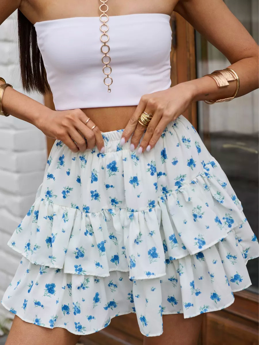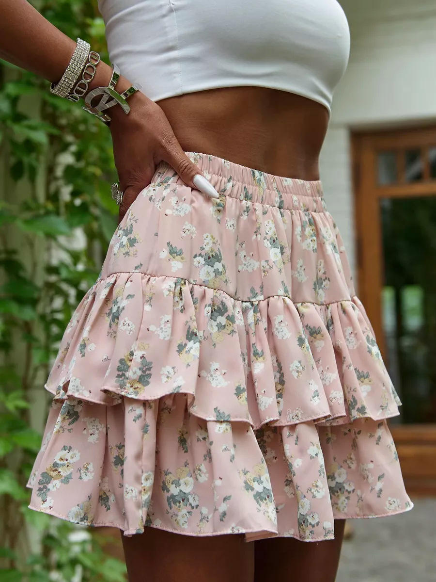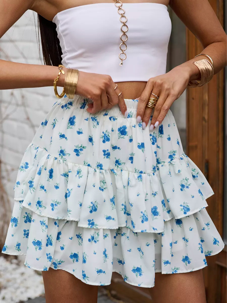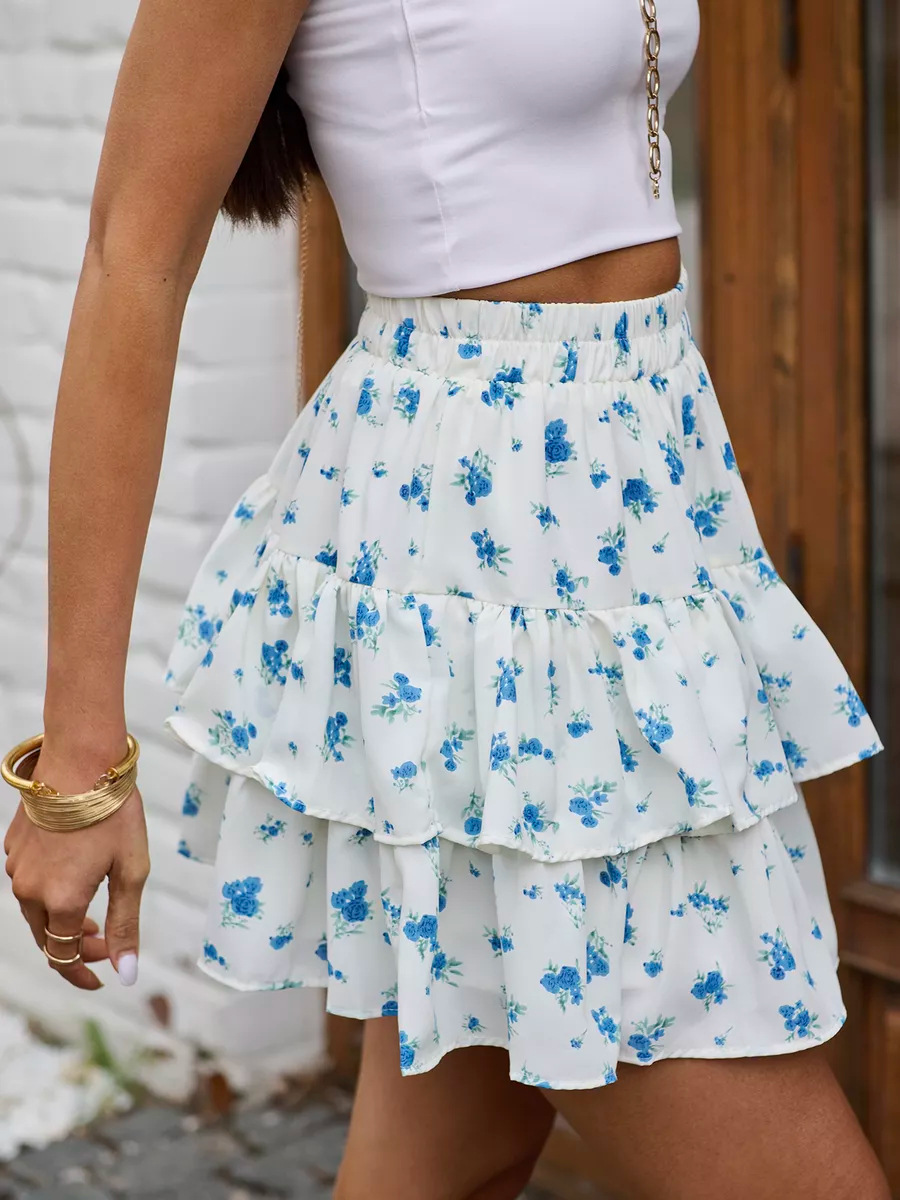 2025 유럽과 미국의 국경 여름 새로운 여성 의류 보헤미안 스포츠 휴가 꽃 캐주얼 다층 가장자리 미니 스커트스토어 가기