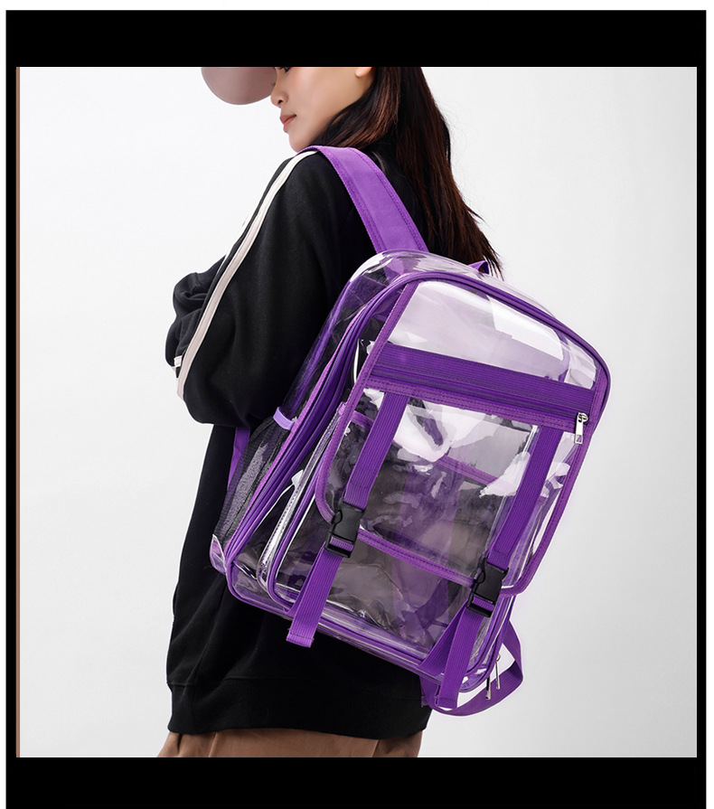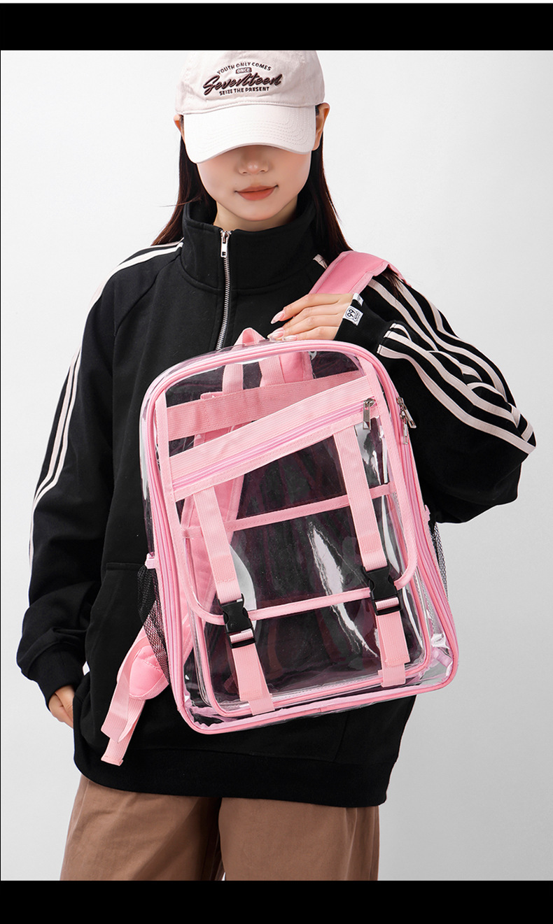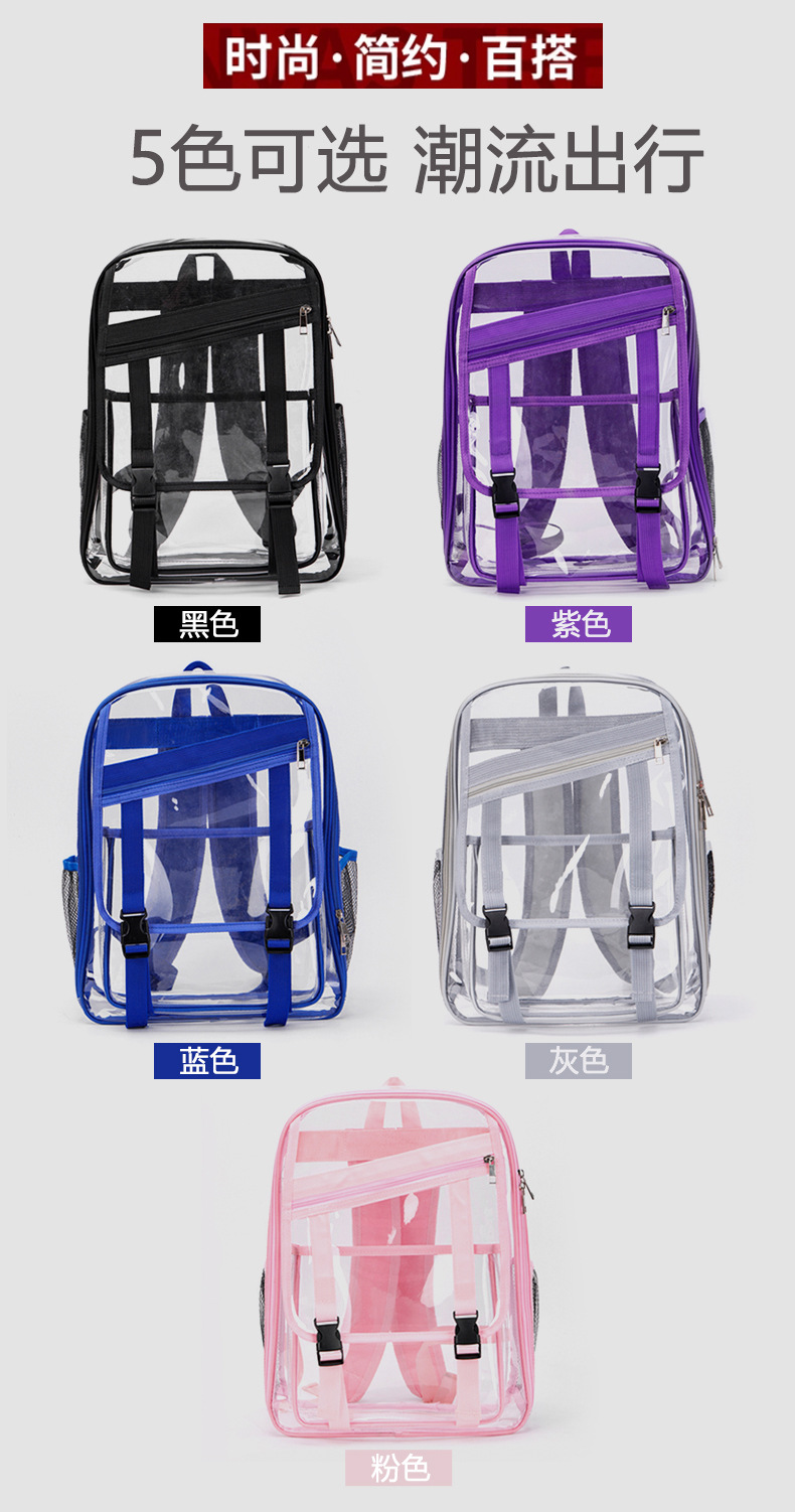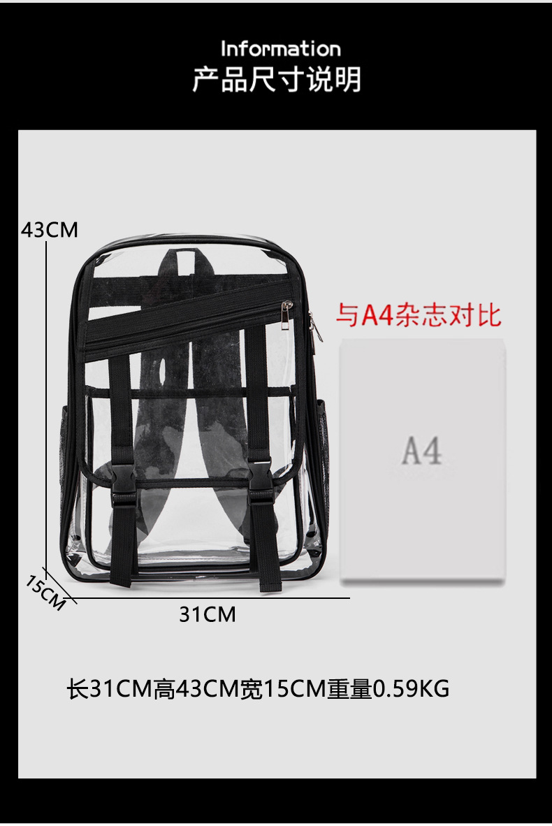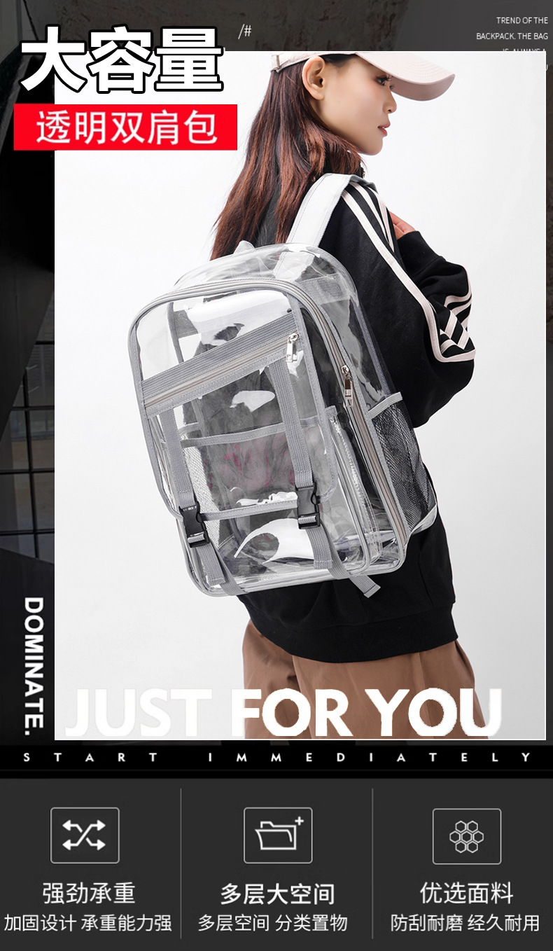 국경 간 재고 PVC 투명 배낭 유행 개인화 된 Ins 캐주얼 배낭 초등 및 중등 학교 학생을위한 완전 투명 방수 스쿨 백스토어 가기