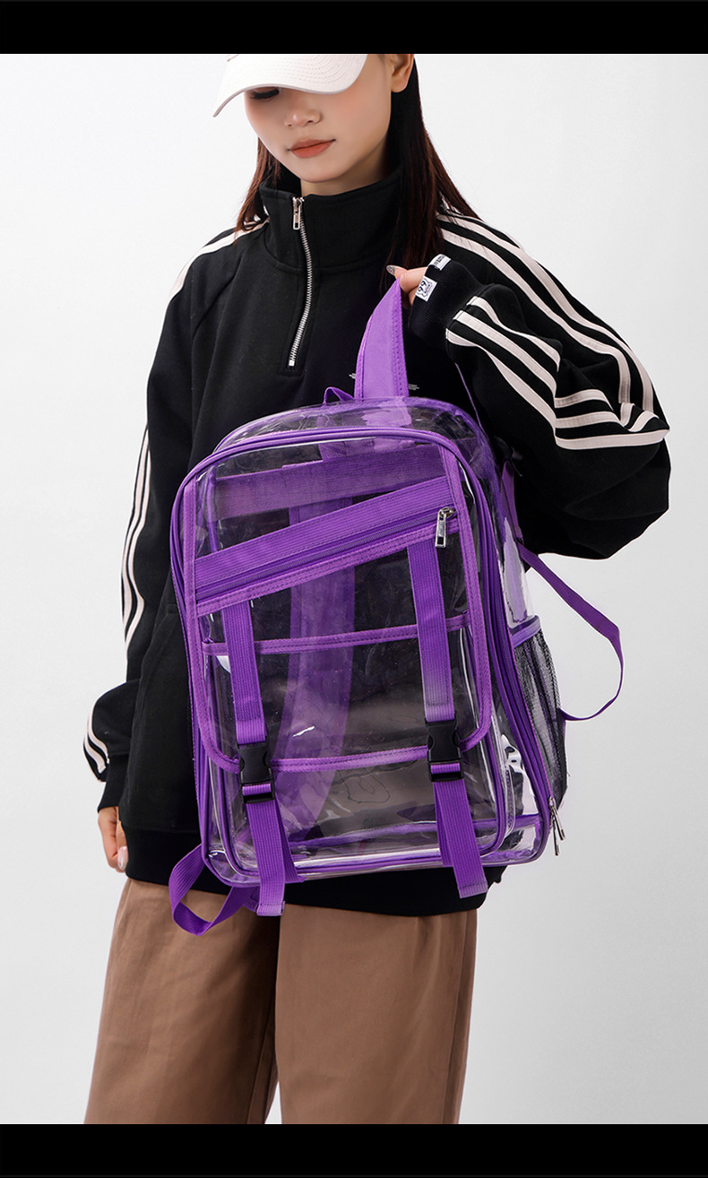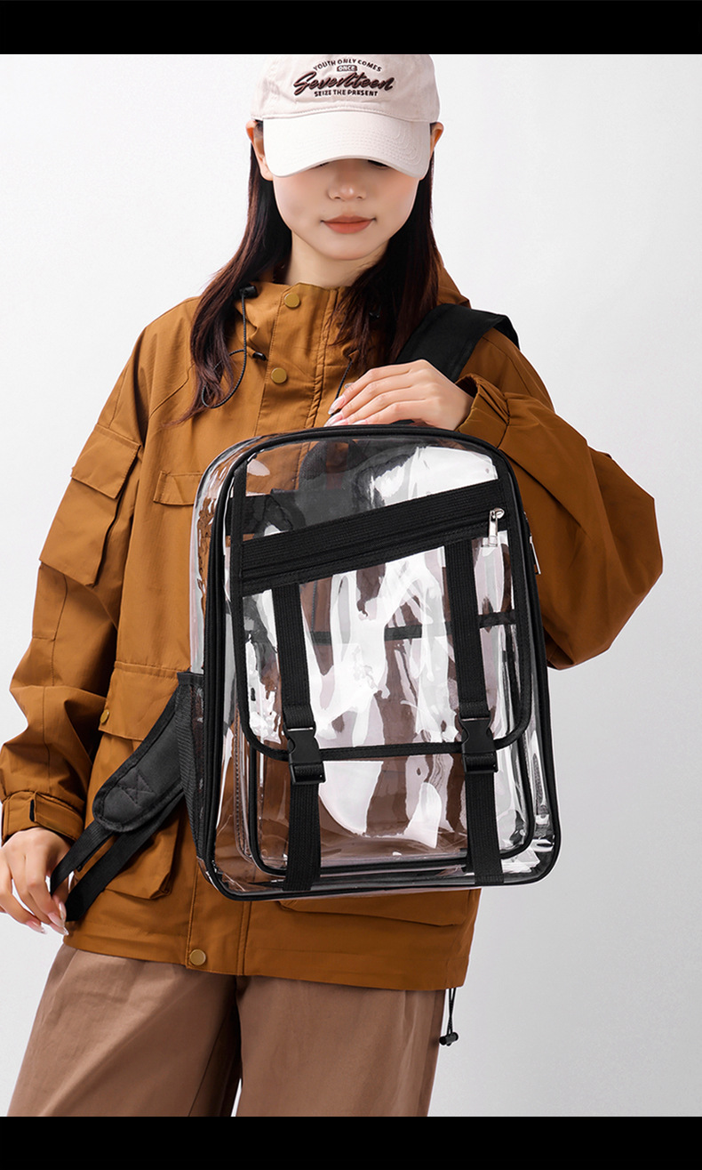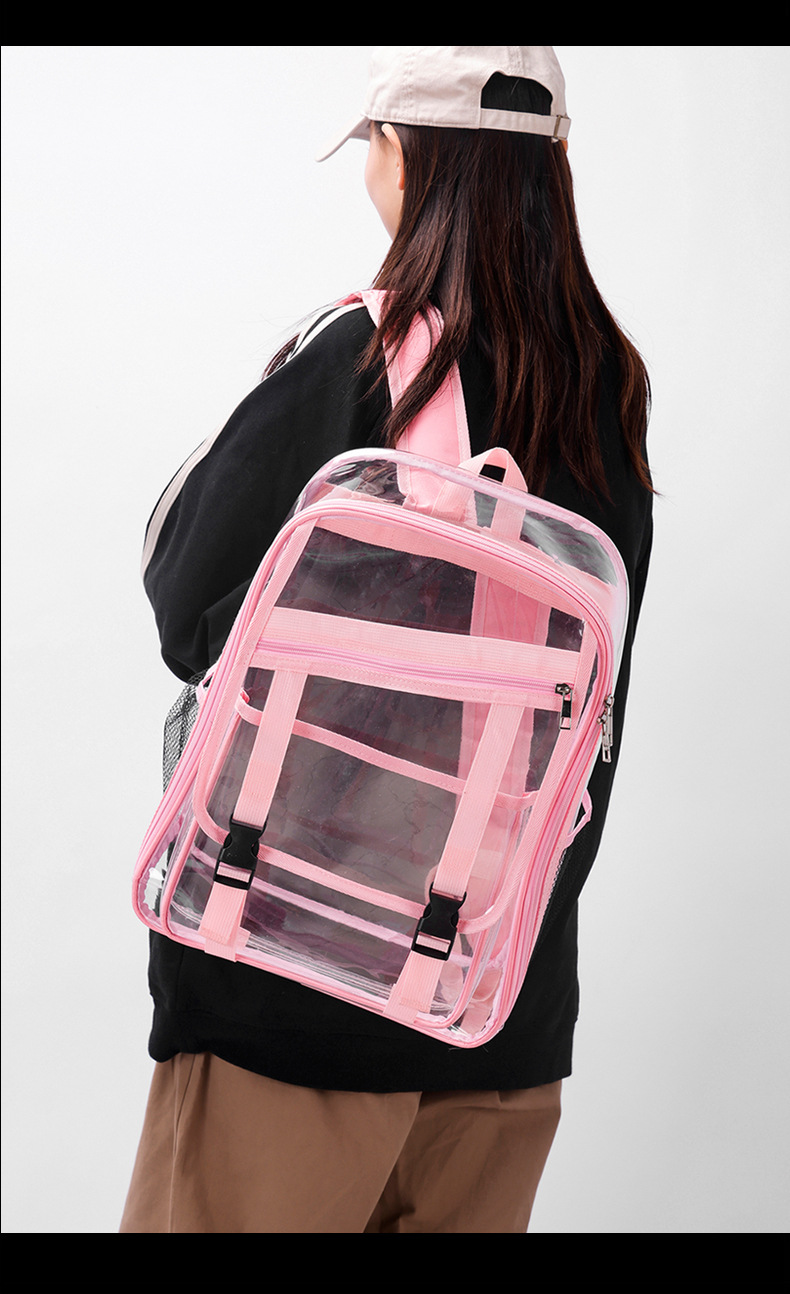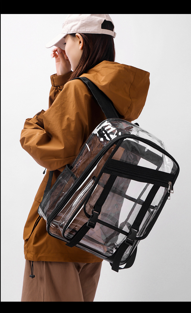 국경 간 재고 PVC 투명 배낭 유행 개인화 된 Ins 캐주얼 배낭 초등 및 중등 학교 학생을위한 완전 투명 방수 스쿨 백스토어 가기