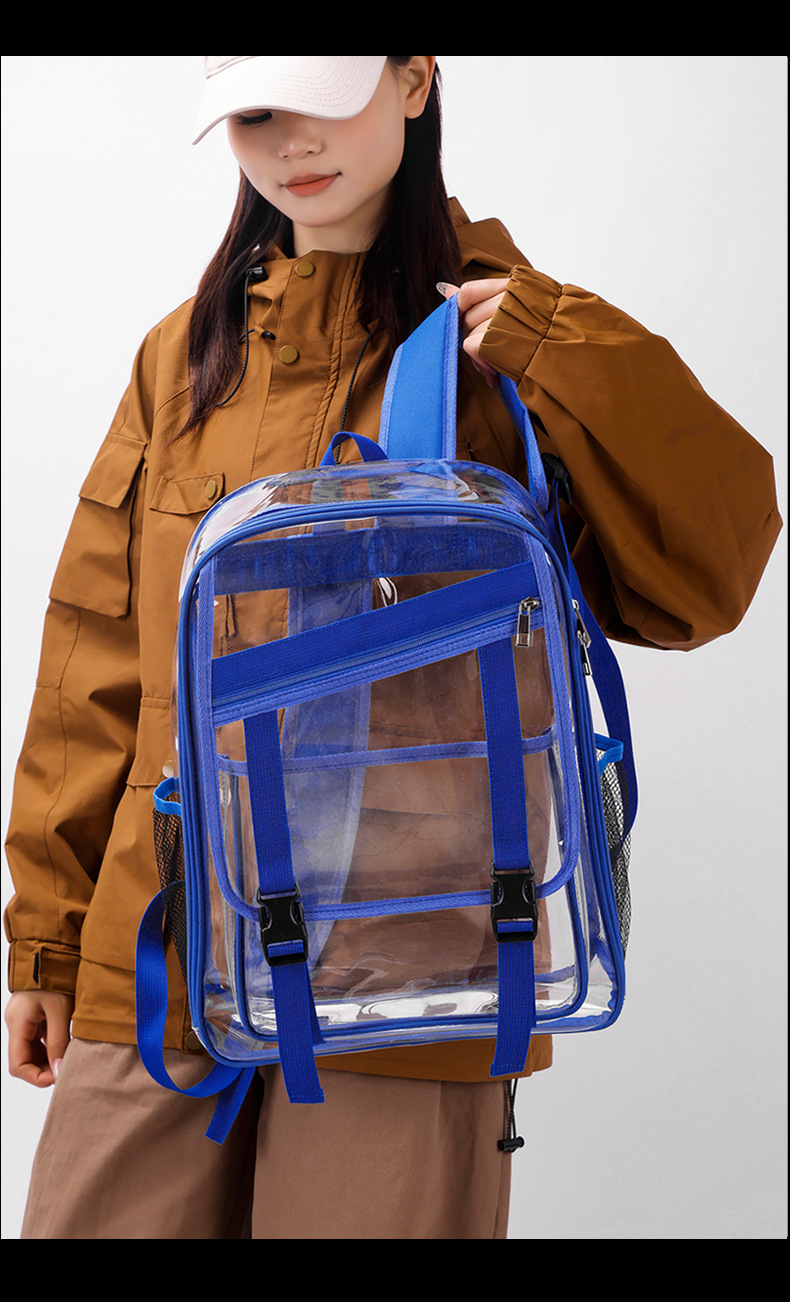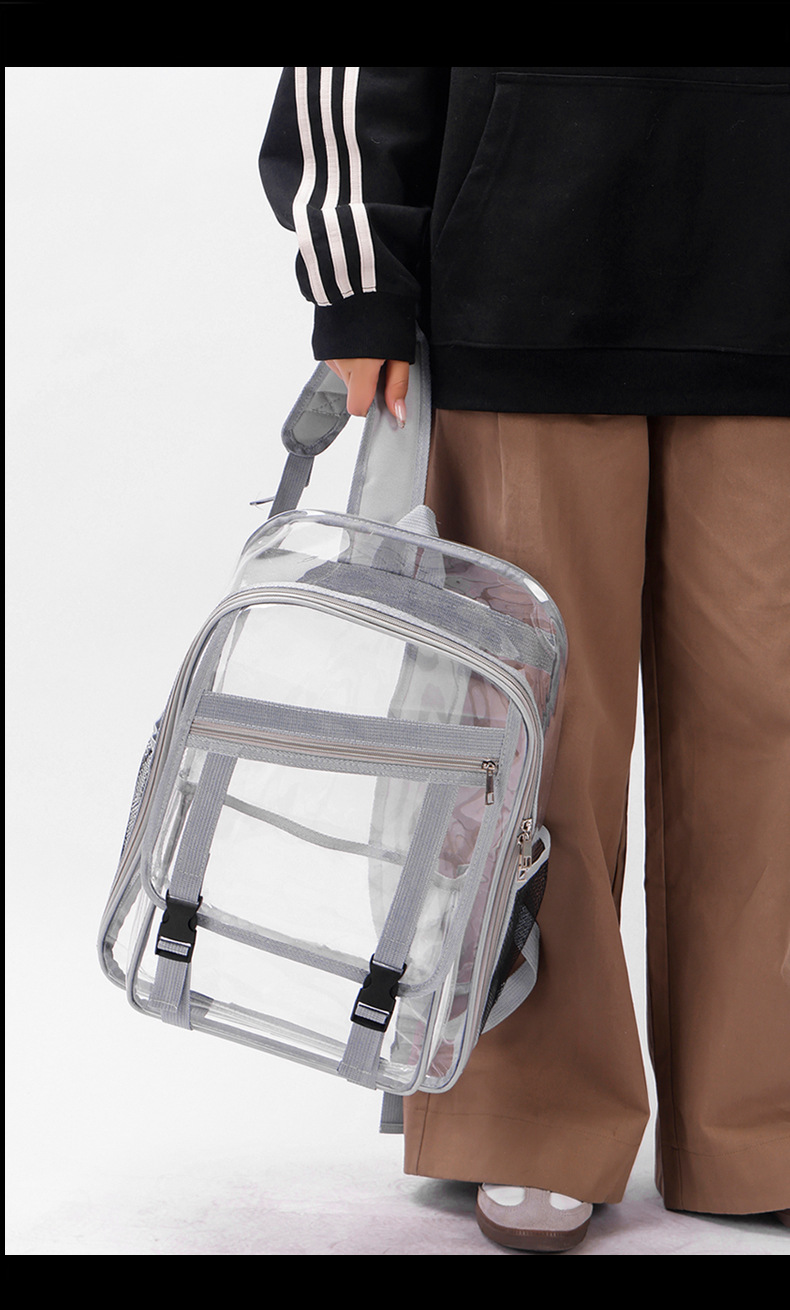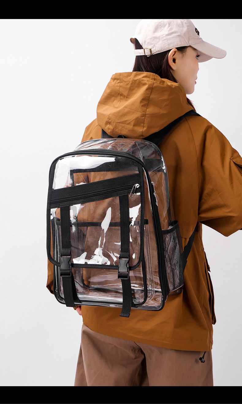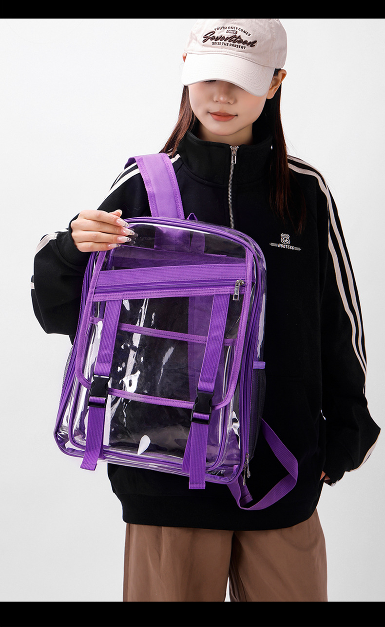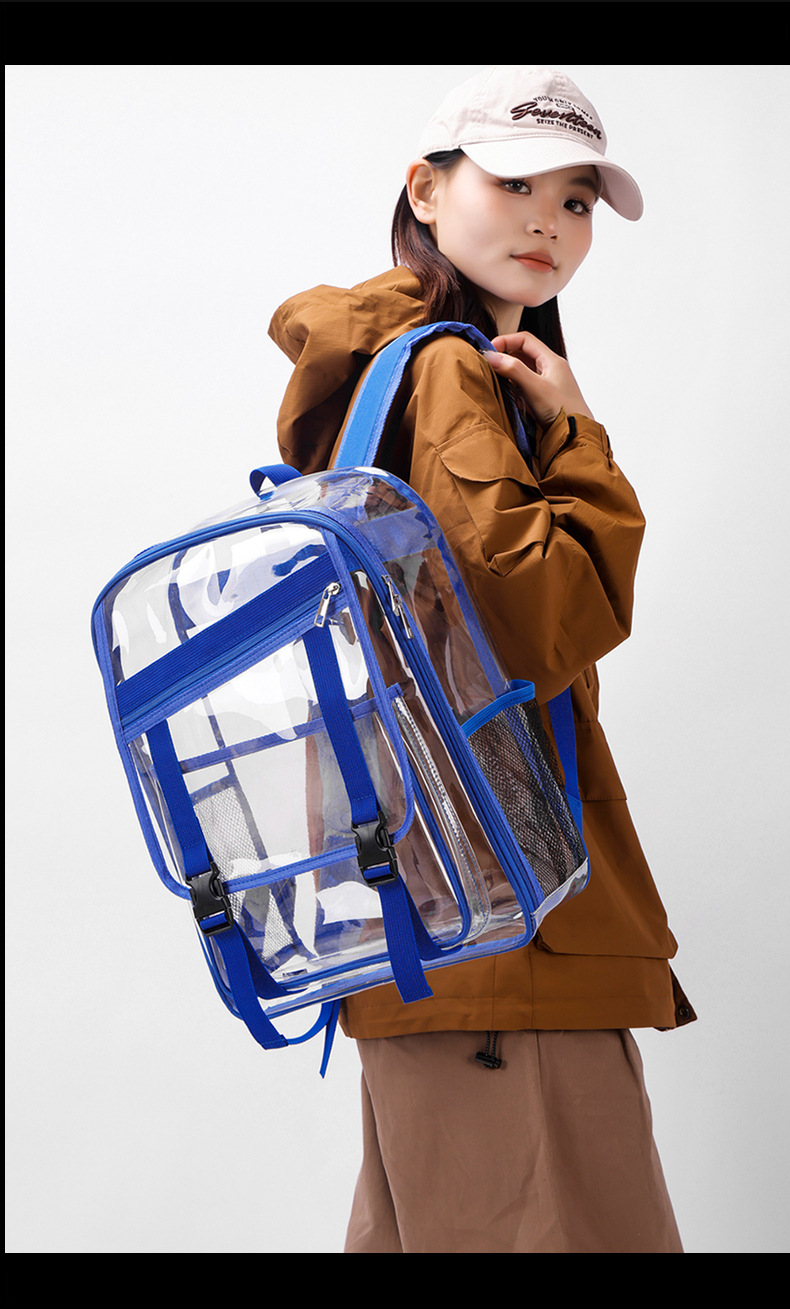 국경 간 재고 PVC 투명 배낭 유행 개인화 된 Ins 캐주얼 배낭 초등 및 중등 학교 학생을위한 완전 투명 방수 스쿨 백스토어 가기