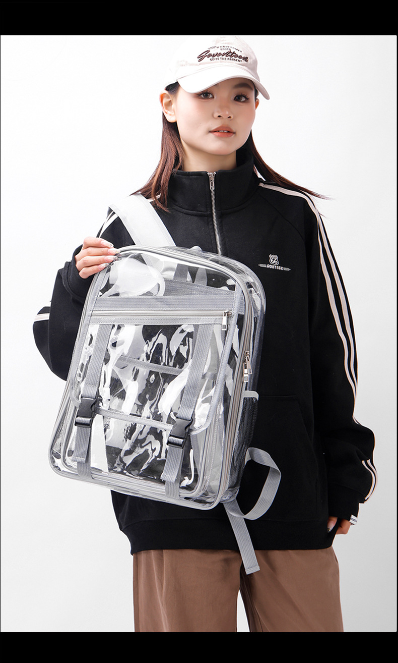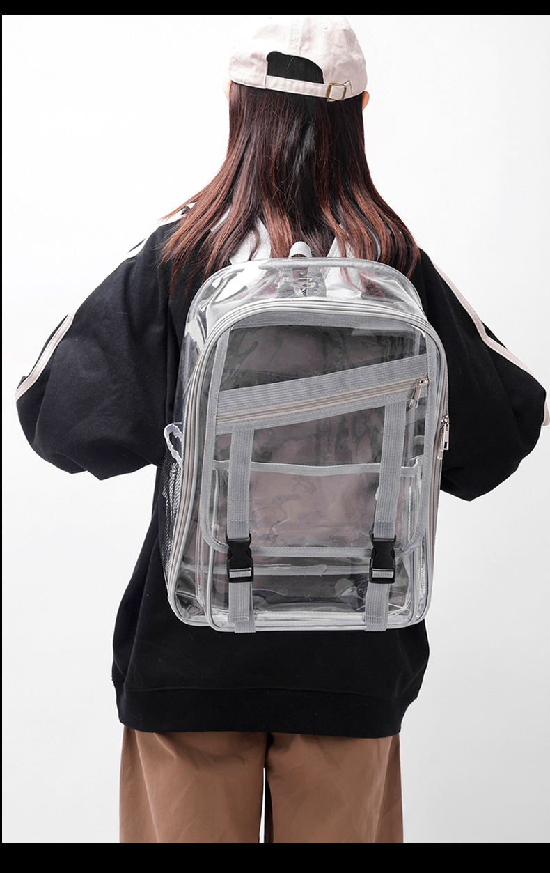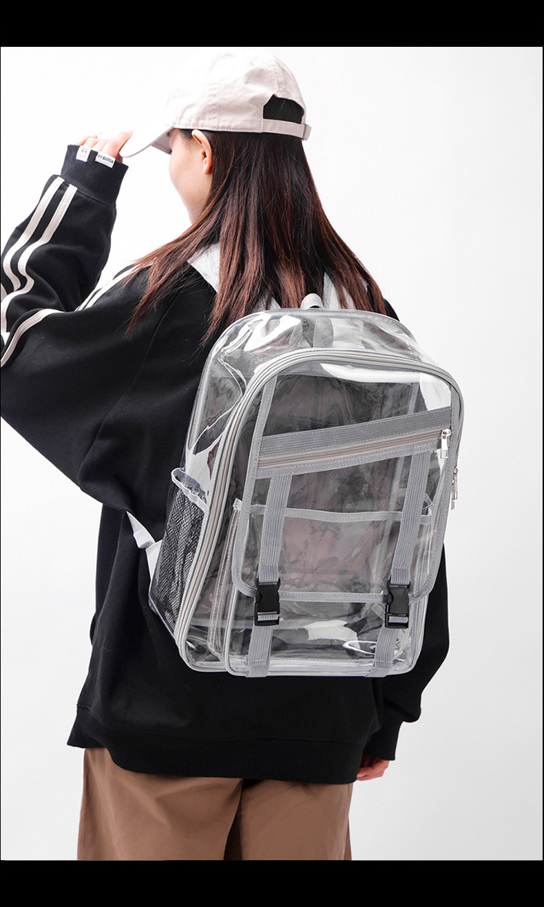 국경 간 재고 PVC 투명 배낭 유행 개인화 된 Ins 캐주얼 배낭 초등 및 중등 학교 학생을위한 완전 투명 방수 스쿨 백