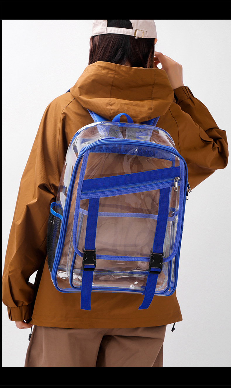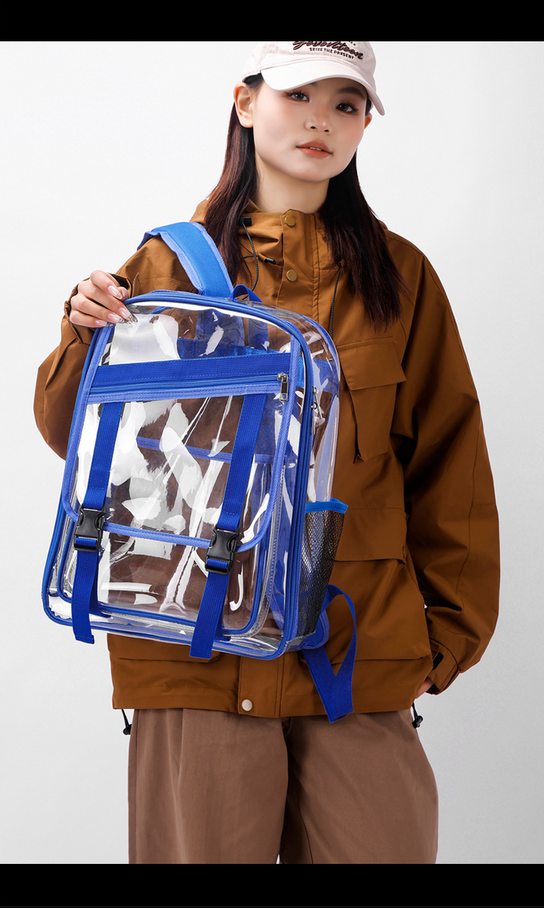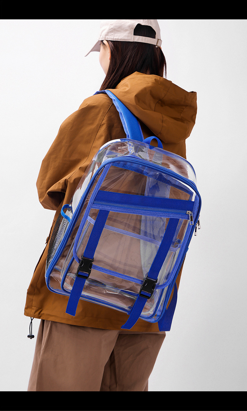 국경 간 재고 PVC 투명 배낭 유행 개인화 된 Ins 캐주얼 배낭 초등 및 중등 학교 학생을위한 완전 투명 방수 스쿨 백