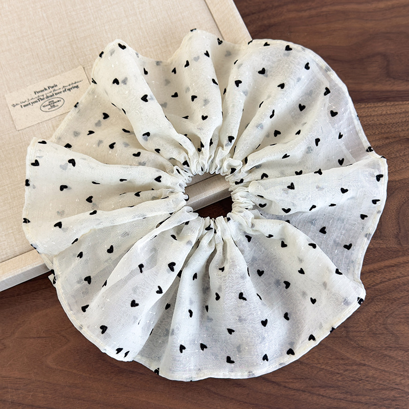 부드럽고 달콤한 메시 러브 웨이브 도트 주름 레이스 큰 장내 헤어 루프 여성 틈새 낮은 포니 테일 헤어 로프 헤어 액세서리