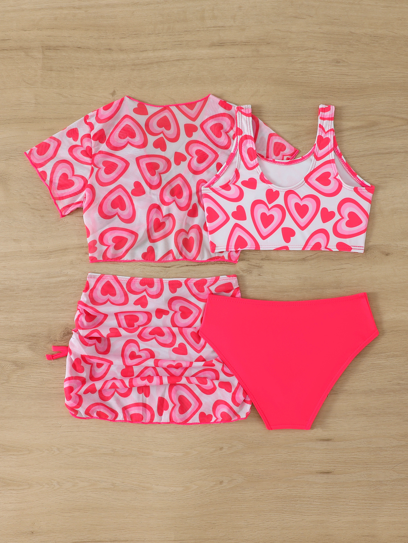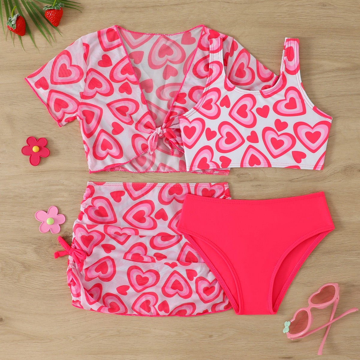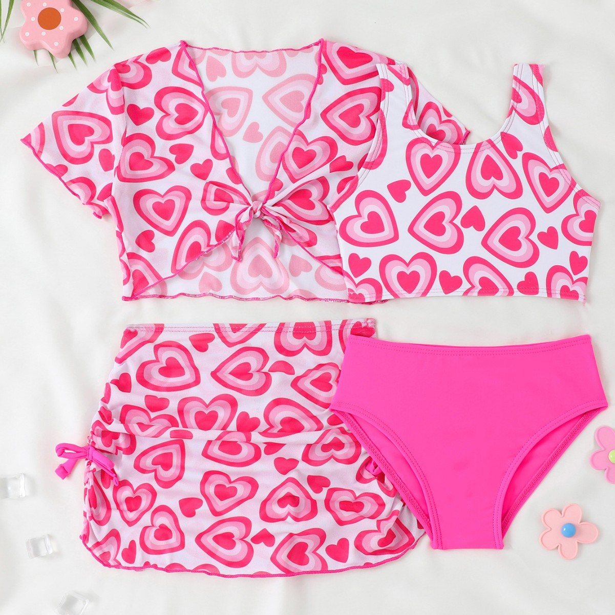 2025 새로운 국경 소녀 분할 수영복 귀여운 편안한 어린이 수영복 편안한 고탄성 4 종 세트