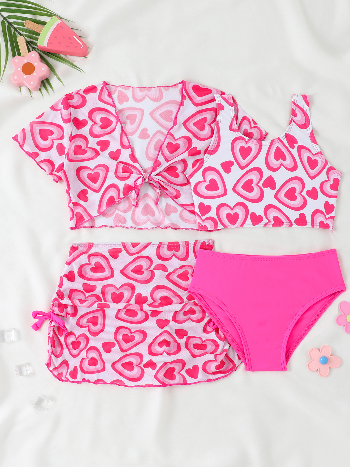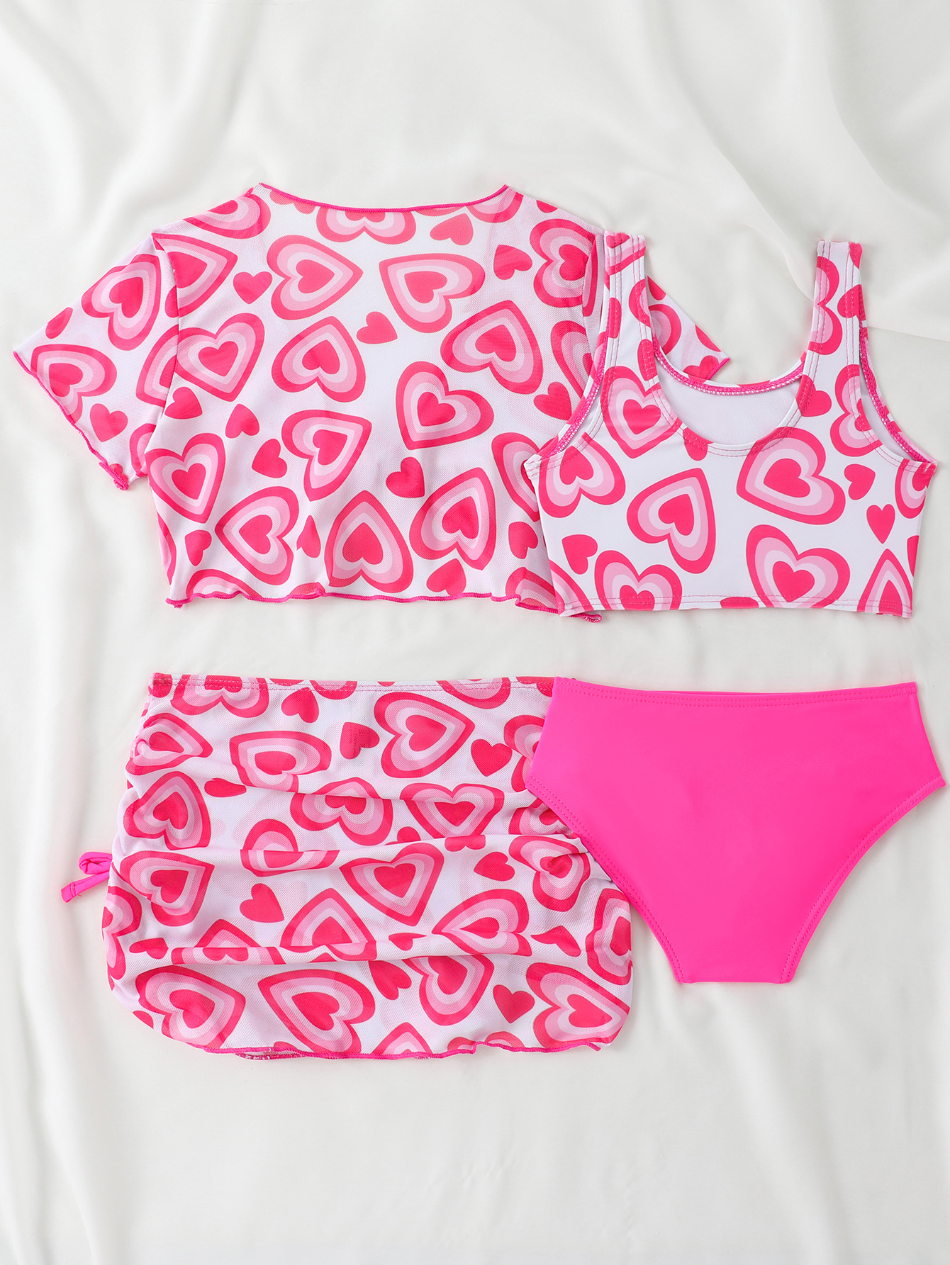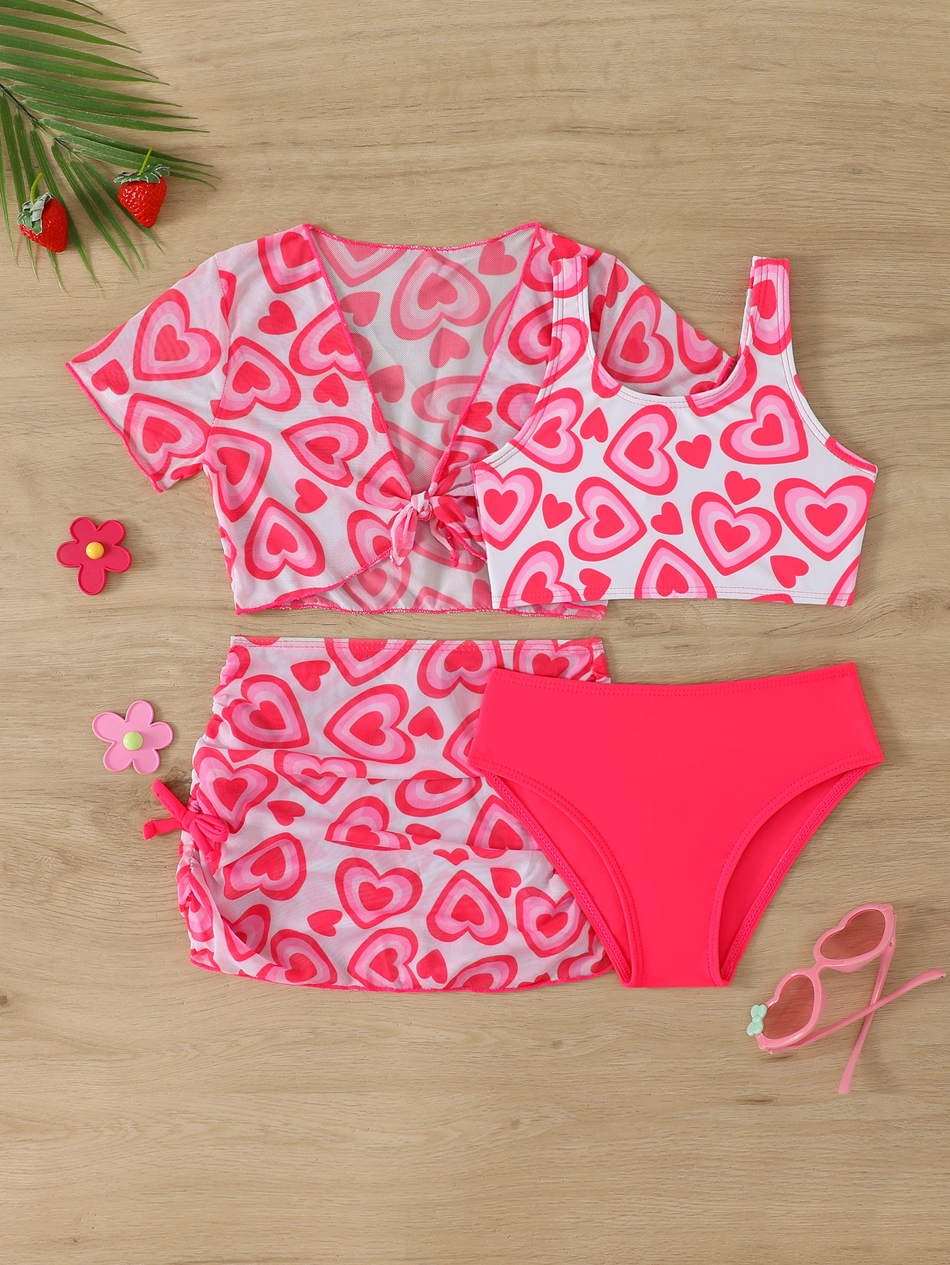 2025 새로운 국경 소녀 분할 수영복 귀여운 편안한 어린이 수영복 편안한 고탄성 4 종 세트