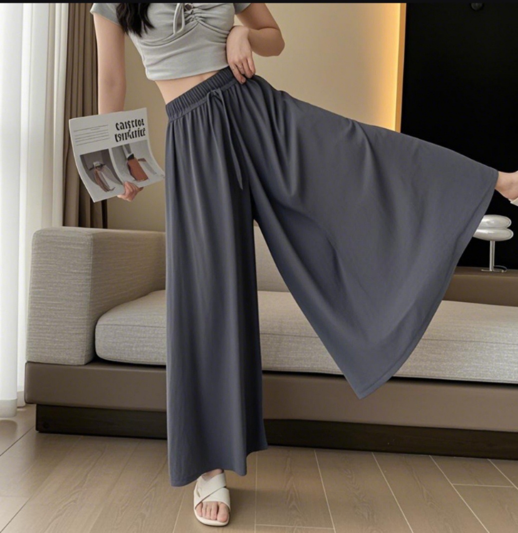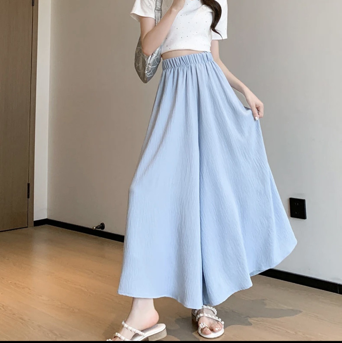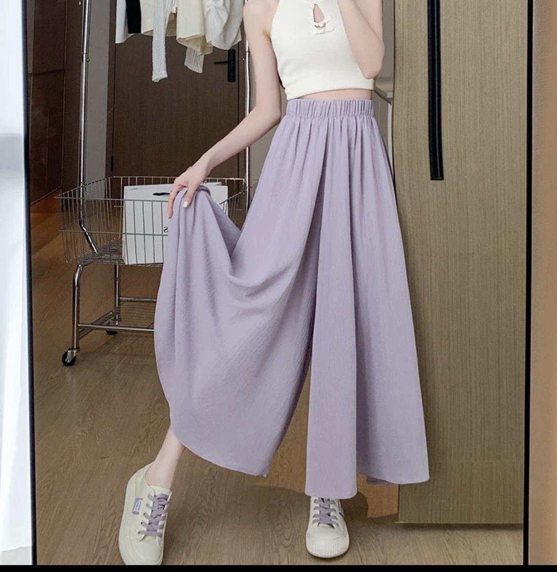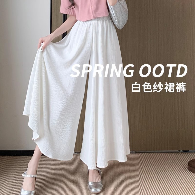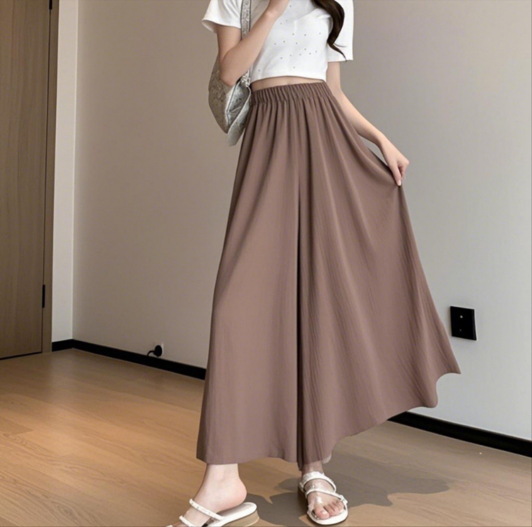 여성용 아이스 실크 퀼로트 여름 2025 새로운 스타일의 작은 하이 웨이스트 8부 바지 드레이프 A라인 와이드 레그 스커트스토어 가기