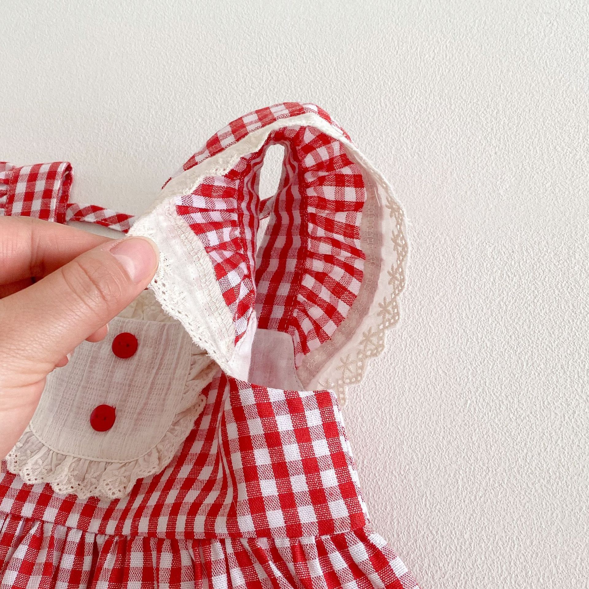 2025 여름 새로운 소녀 한국 스타일 세트 새로운 격자 무늬 어린이 작은 플라이 슬리브 반바지 패션 투피스 세트