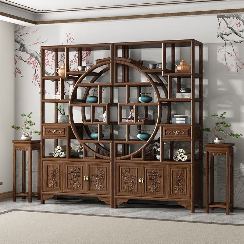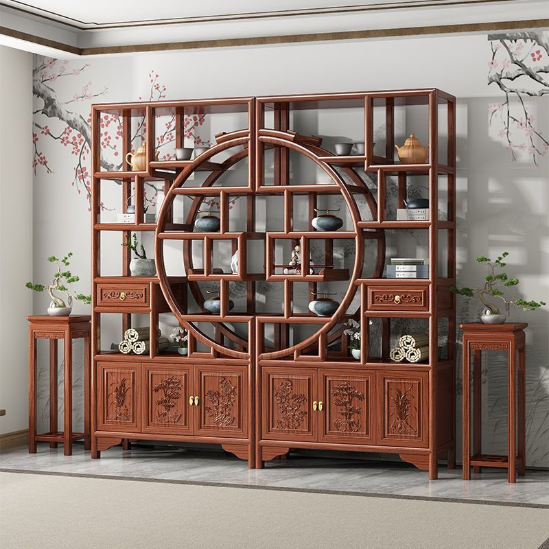 Bogu 랙 티 세트 랙 복도 디스플레이 캐비닛 솔리드 우드 듀오 바오 파빌리온 새로운 중국 스타일 스크린 파티션 거실 다방 보관 랙