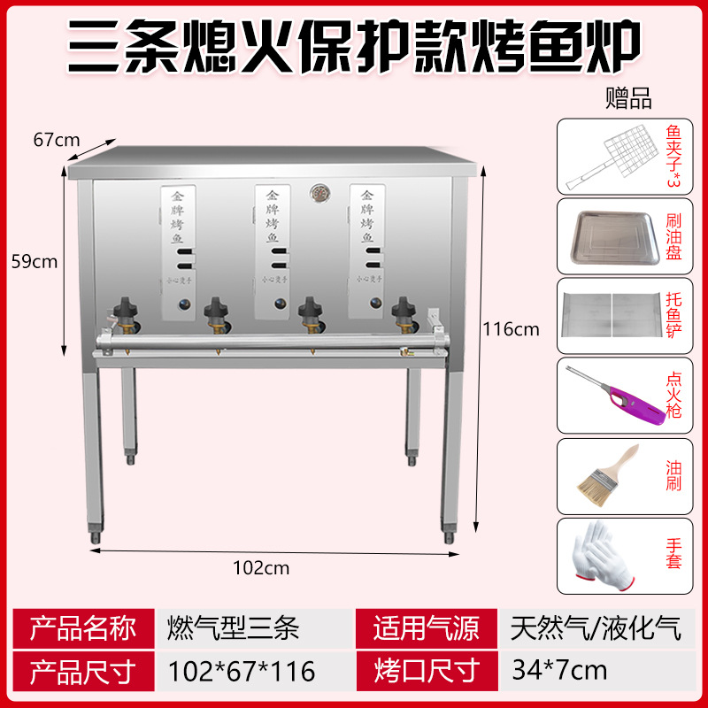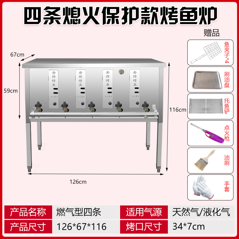 생선구이로, 액화가스, 천연가스, 전기생선구이로, 목탄무연생선구이로, 평면구이로, 화염방지장치 포함