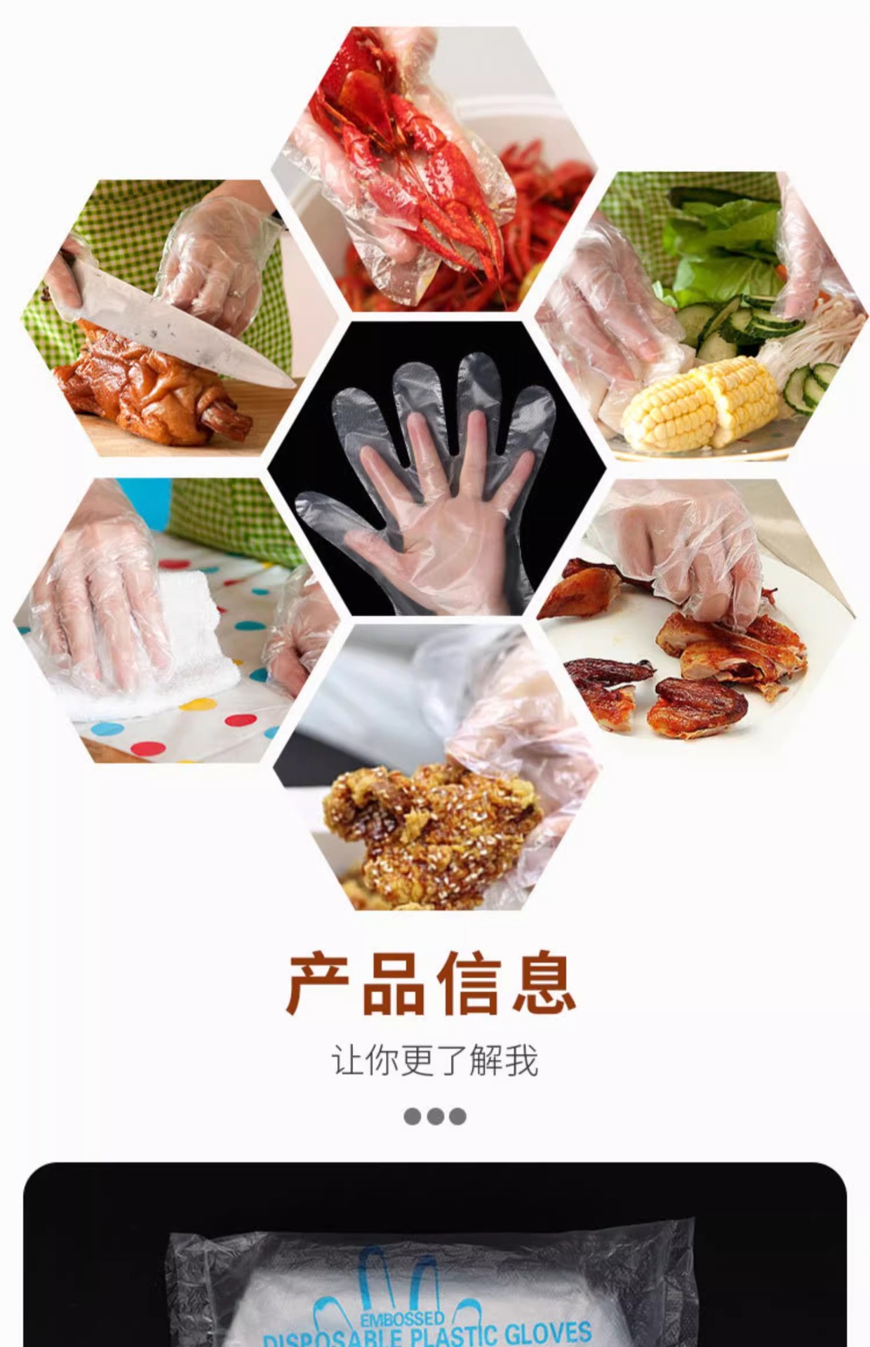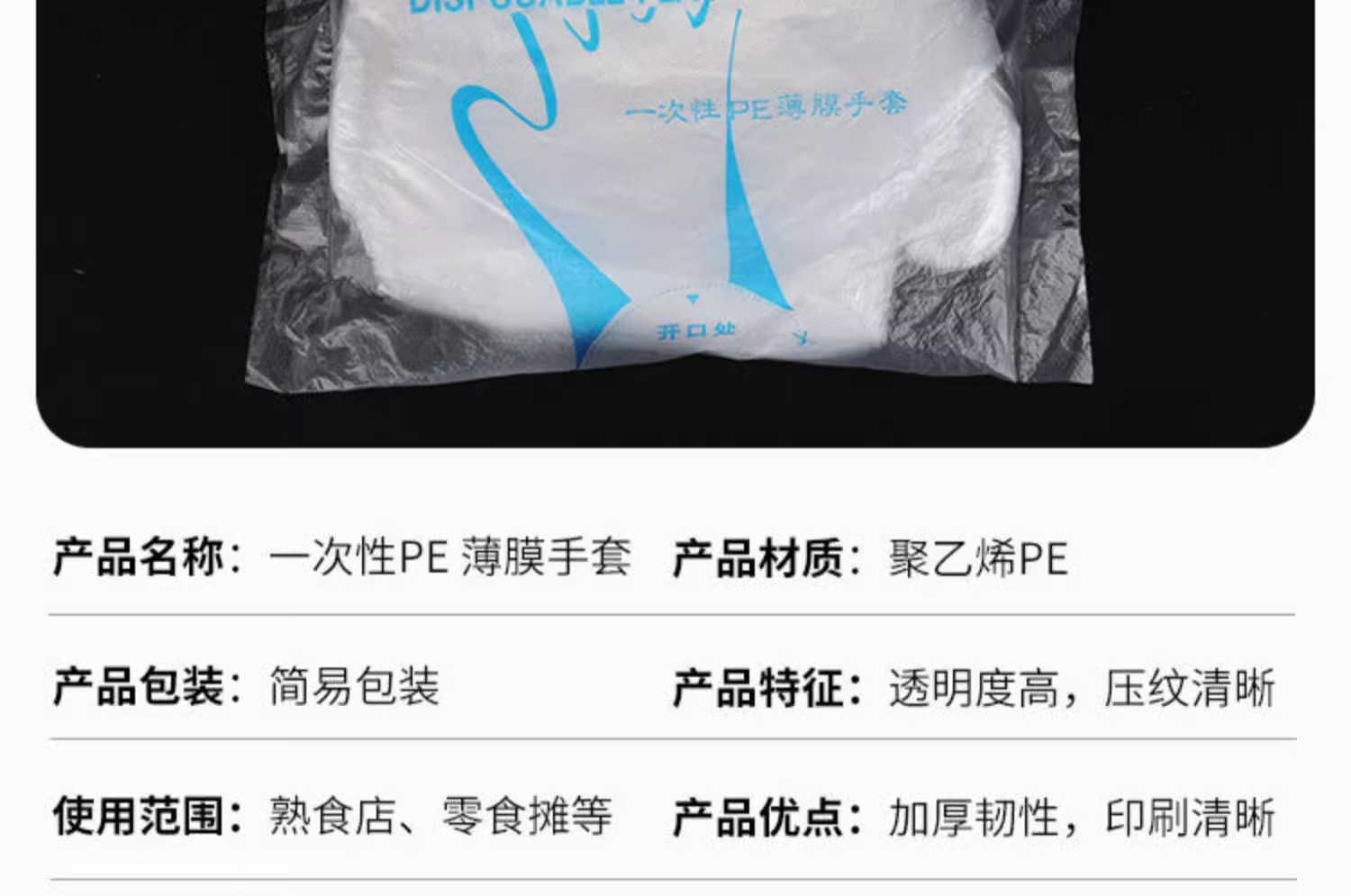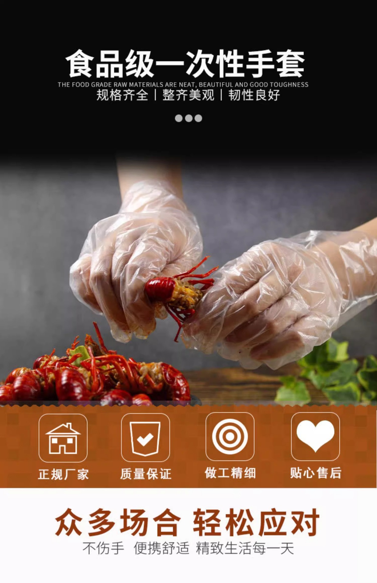 식품 등급 일회용 장갑 두꺼운 가정용 케이터링 독립적으로 포장된 PE 필름 플라스틱 장갑 상업용 주방 미용스토어 가기