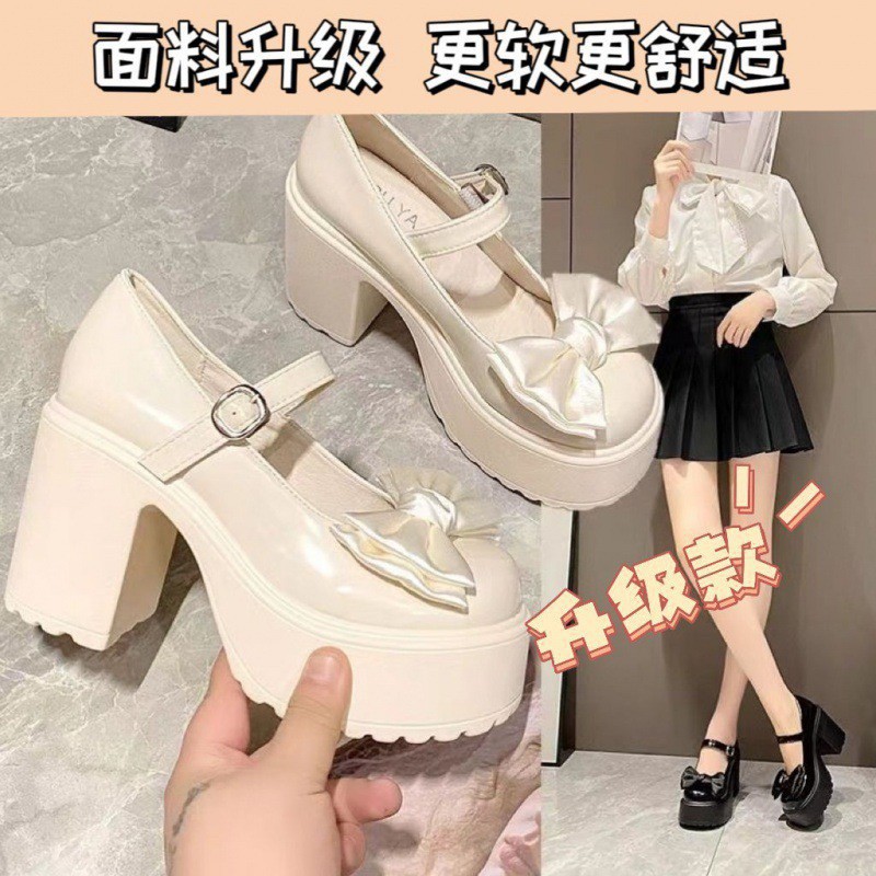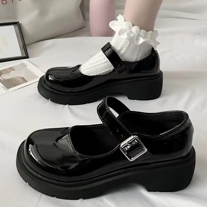 여성을위한 Mary Jane 여성 신발 2023 봄과 가을 새로운 패션 두꺼운 밑창 두꺼운 굽 스커트 다목적 작은 가죽 신발스토어 가기