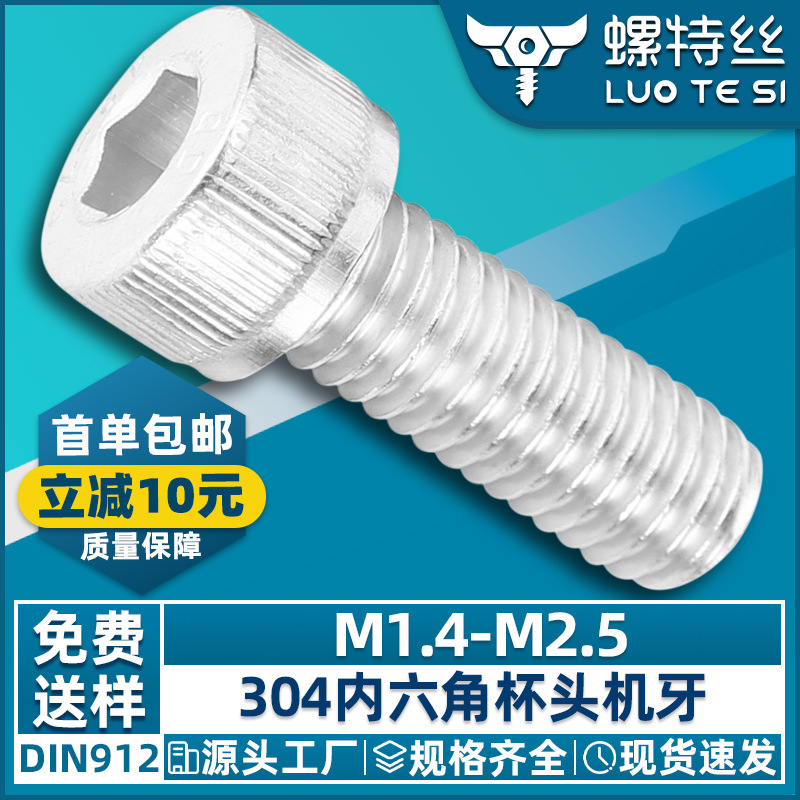 304 스테인레스 스틸 컵 헤드 육각 소형 나사 실린더 헤드 육각 나사 M1.4/M1.6/M2/M2.5