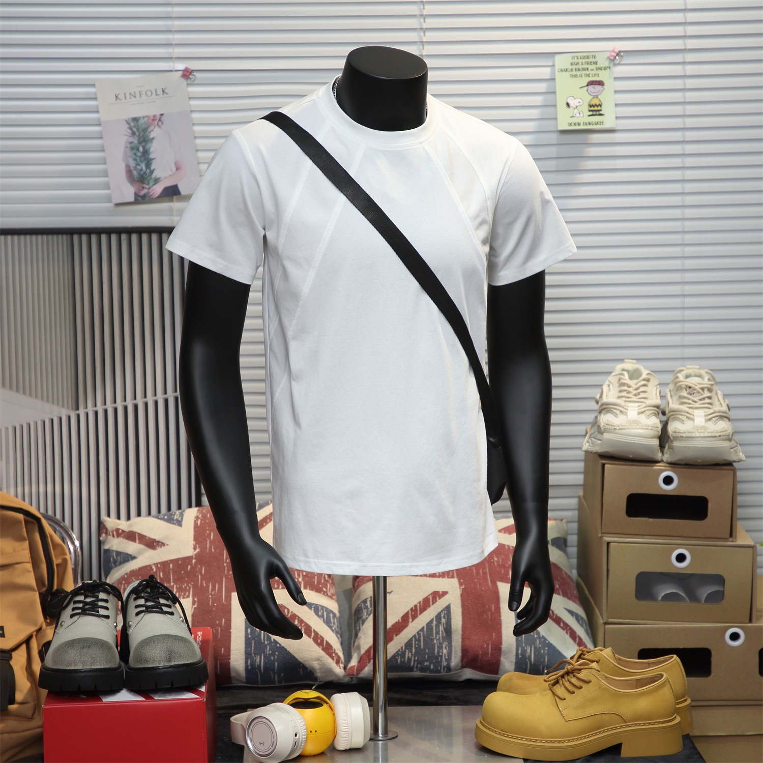 디자인 센스 스페이스 코튼 에어 레이어 바느질 어깨 반팔 티셔츠 남성 여름 아메리칸 스타일 박스 스타일 듀플렉스 핸들 반소매 티셔츠스토어 가기