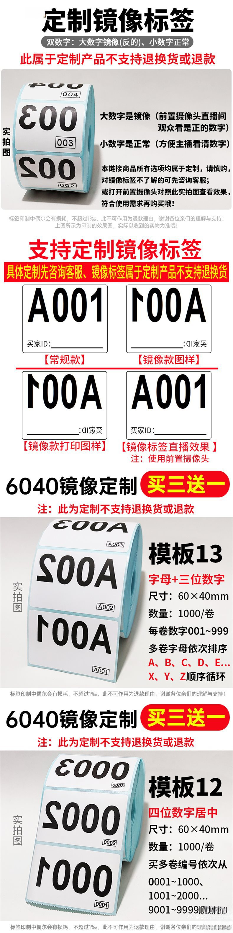 • 거울 60*40mm [템플릿 10] 스티커 1000개, 메인사진