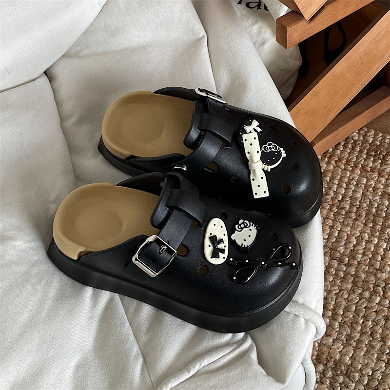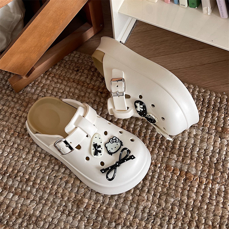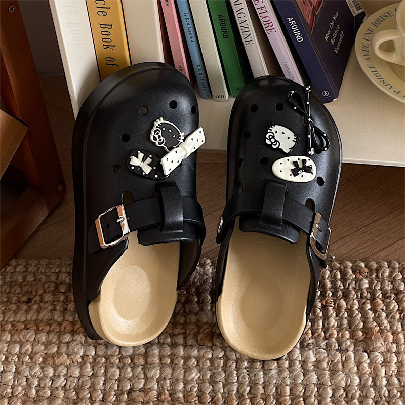 귀여운 만화 캐주얼 미끄럼 방지 높이 증가 두꺼운 밑창 동굴 신발 여성의 2025 외부 착용 새로운 여름 폭발 샌들 및 슬리퍼